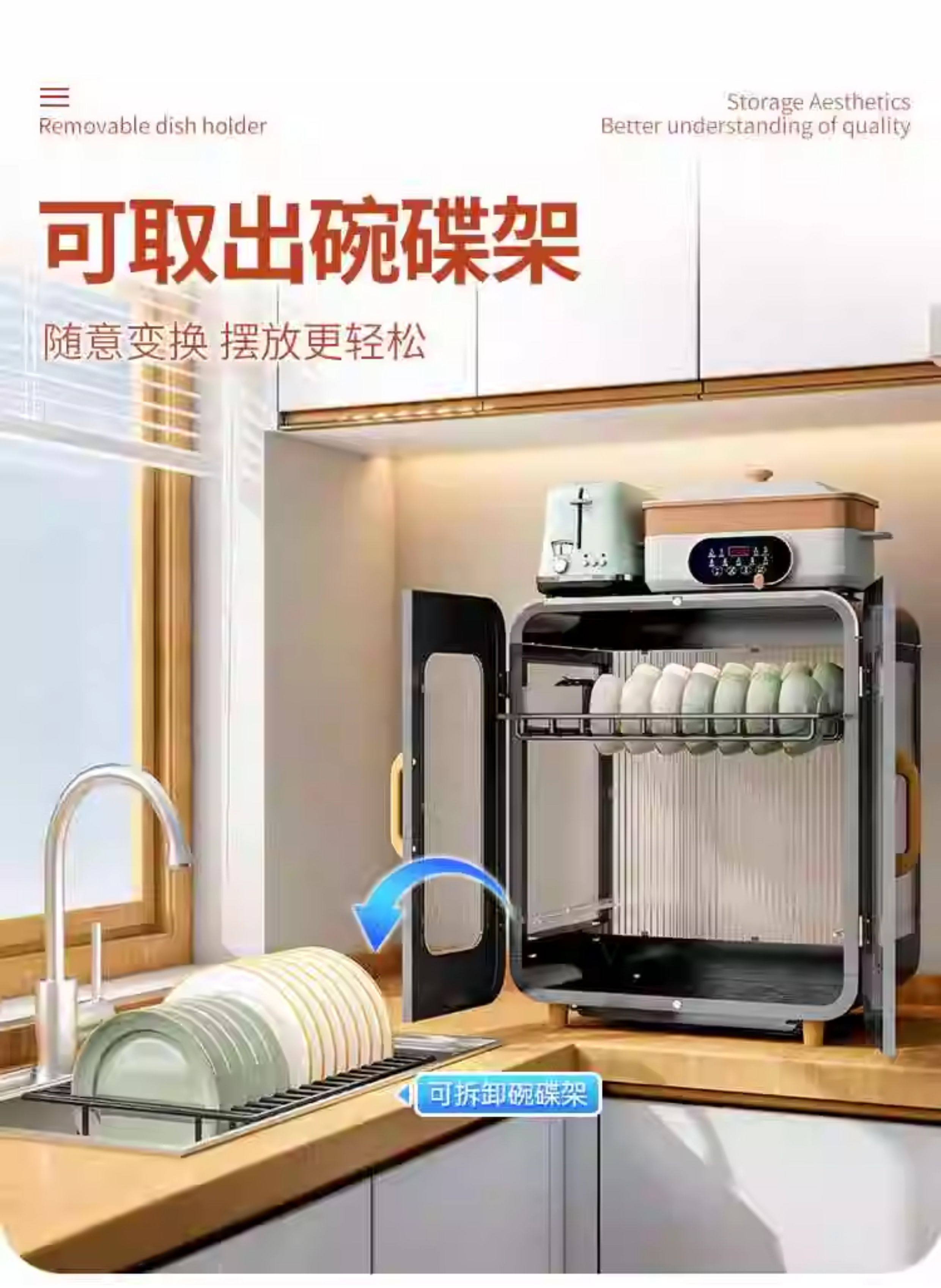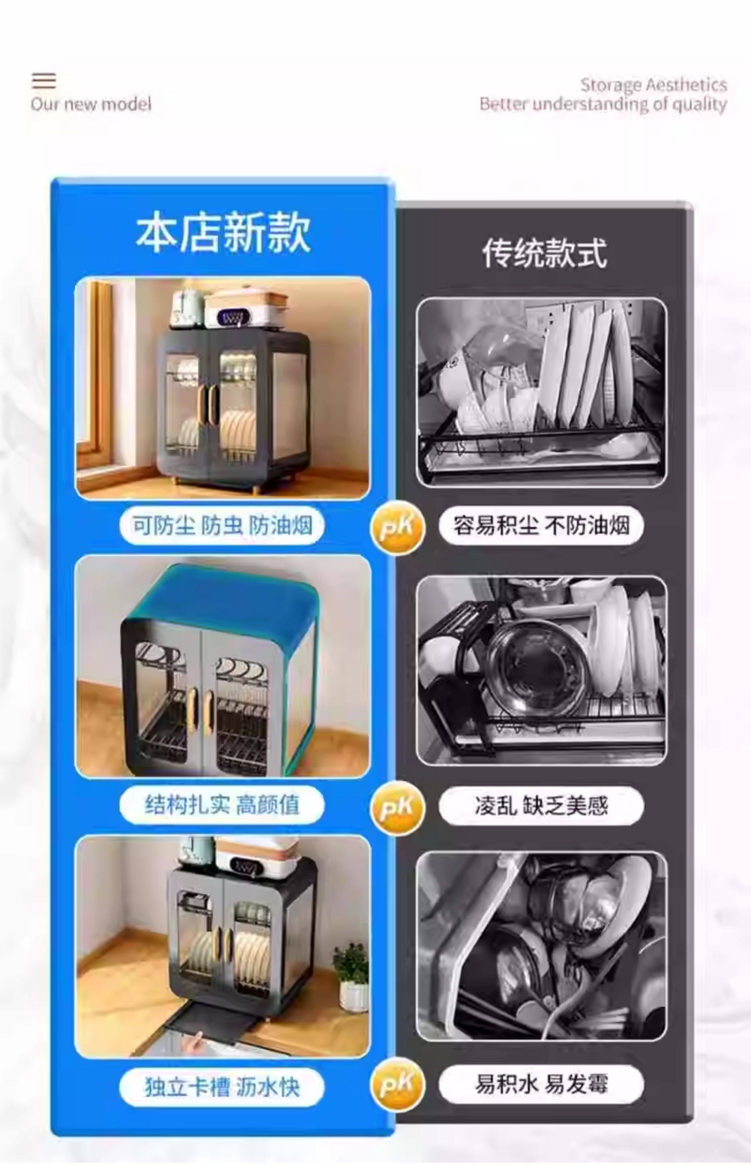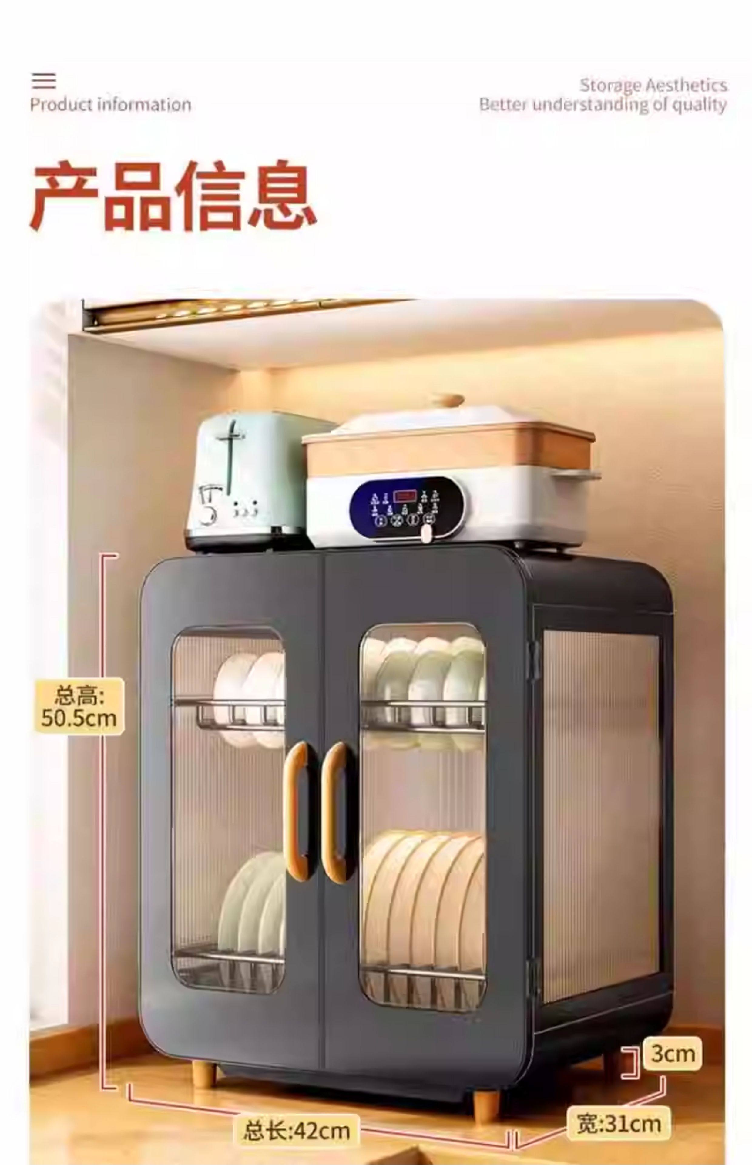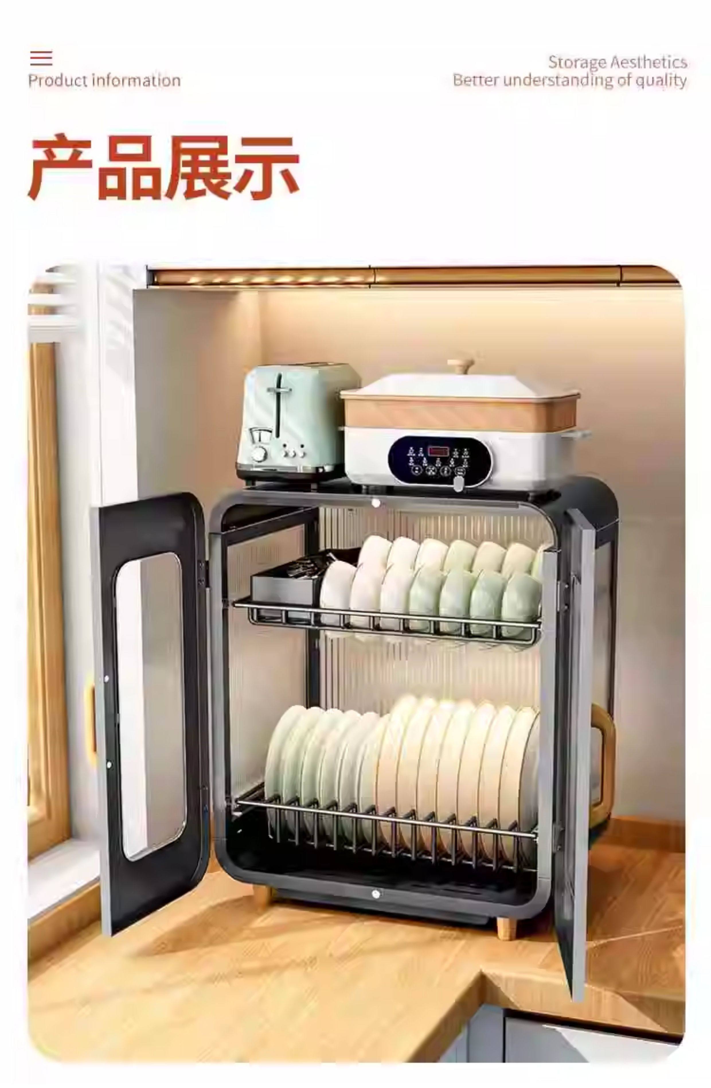 Fully Sealed Kitchen Dish Storage Rack, Dust-Proof Cupboard, Multi-Functional Dishware Storage Rack, Dishware and Cutlery Storage and Draining Rack