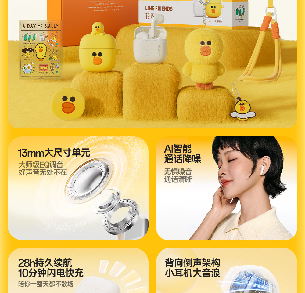 Edifier Line Friends Co-Branded True Wireless Bluetooth Earphones, Semi-In-Ear Style, Cute Gift for Boys and Girls