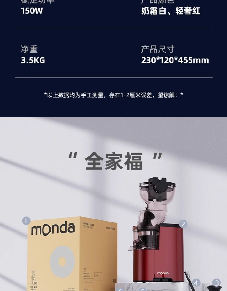 Monda Juicer, Multifunctional Household Juicer with Pulp Separation, Commercial Fully Automatic Juice Extractor