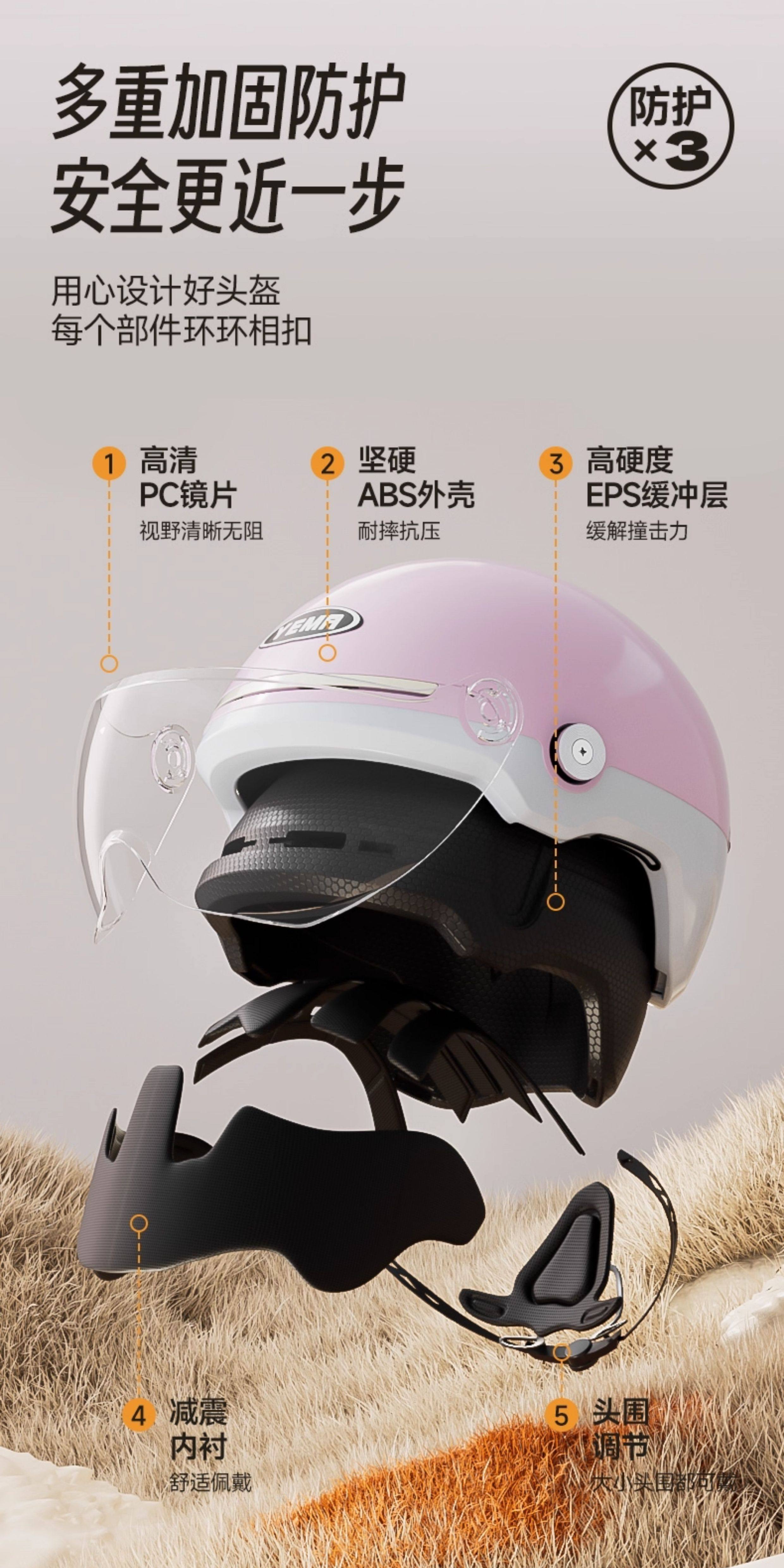 Mustang Helmet Official Flagship Store 3C Certified Summer Electric Motorcycle Half Helmet for Men and Women, All-Season Sun Protection Safety Helmet
