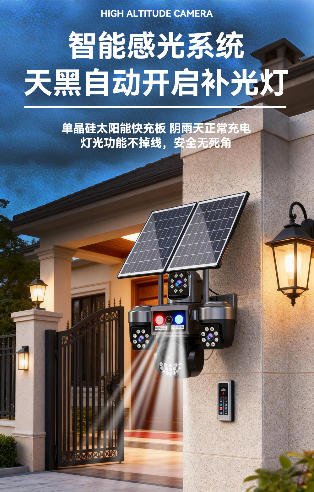Solar-Powered Surveillance Camera, Outdoor Monitoring Camera, No Network Required, No Electricity, No Internet, High-Definition 20 Million Pixels