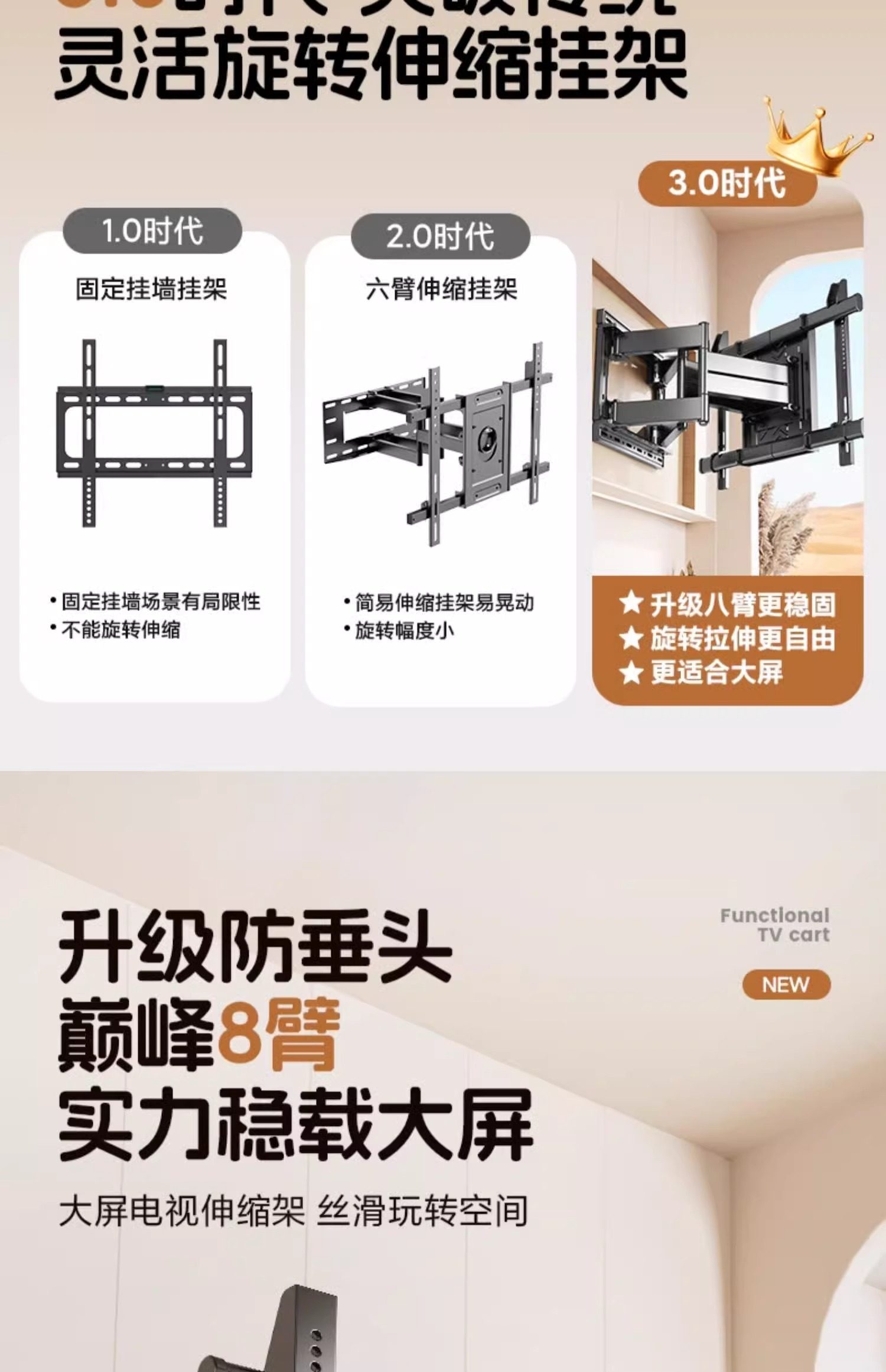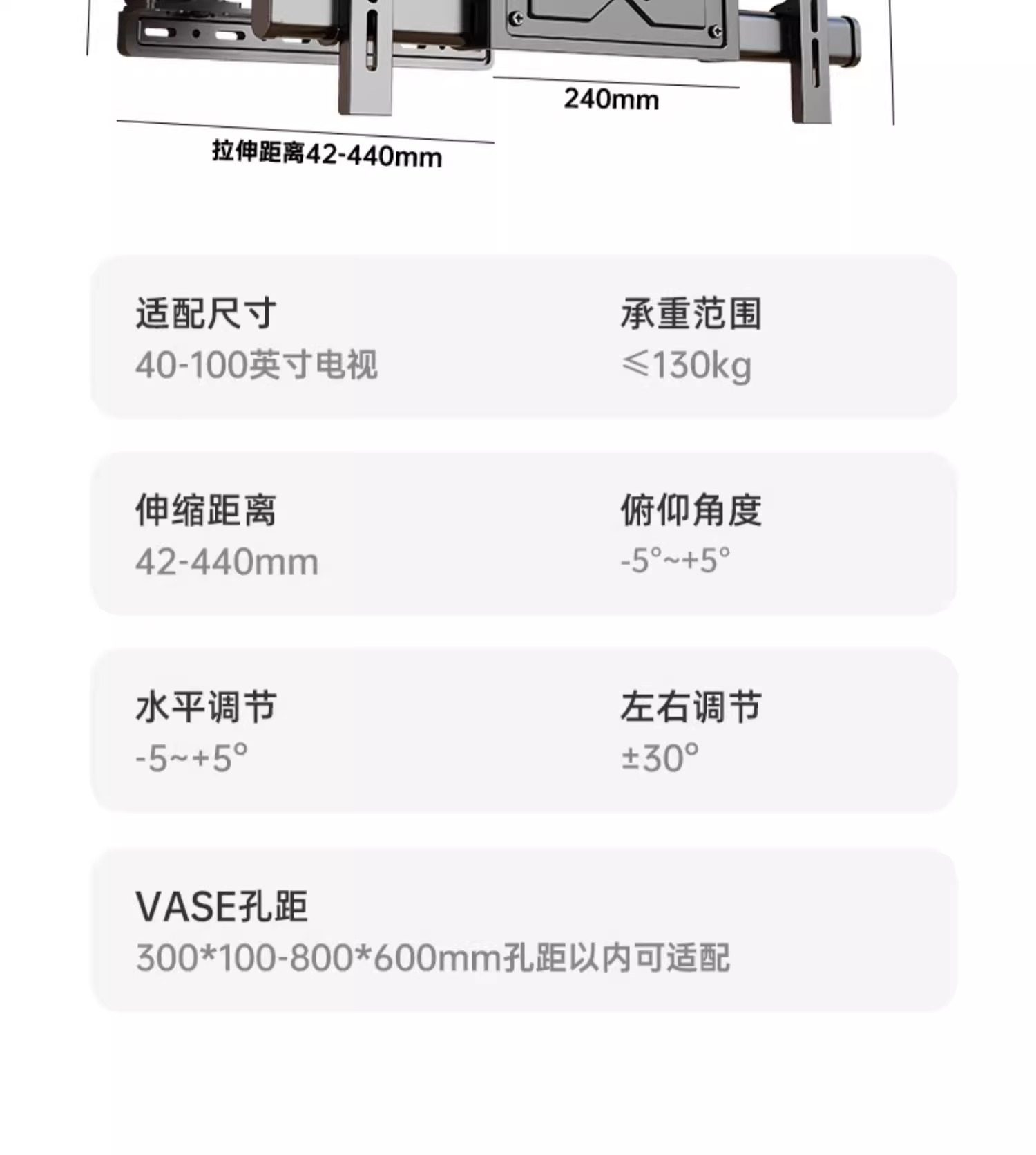 | Color Classification | Eight-Arm Solid Shaft for Silky Smooth Stretching[32-70inch Universal]70kg Load Bearing,Eight-Arm Solid Shaft for Silky Smooth Stretching[32-75inch Universal]75kg Load Bearing,Eight-Arm Solid Shaft for Silky Smooth Stretching[32-80inch Universal]95kg Load Bearing,Eight-Arm Solid Shaft for Silky Smooth Stretching[32-86inch Universal]105kg Load Bearing,Eight-Arm Solid Shaft for Silky Smooth Stretching[40-90inch Universal]115kg Load Bearing,Eight-Arm Solid Shaft for Silky Smooth Stretching[50-100inch Universal]130kg Load Bearing,Eight-Arm Solid Shaft for Silky Smooth Stretching[65-120inch Universal]200kg Load Bearing,Eight-Arm Solid Shaft for Silky Smooth Stretching[75-150inch Universal]210kg Load Bearing,door-to-door delivery |