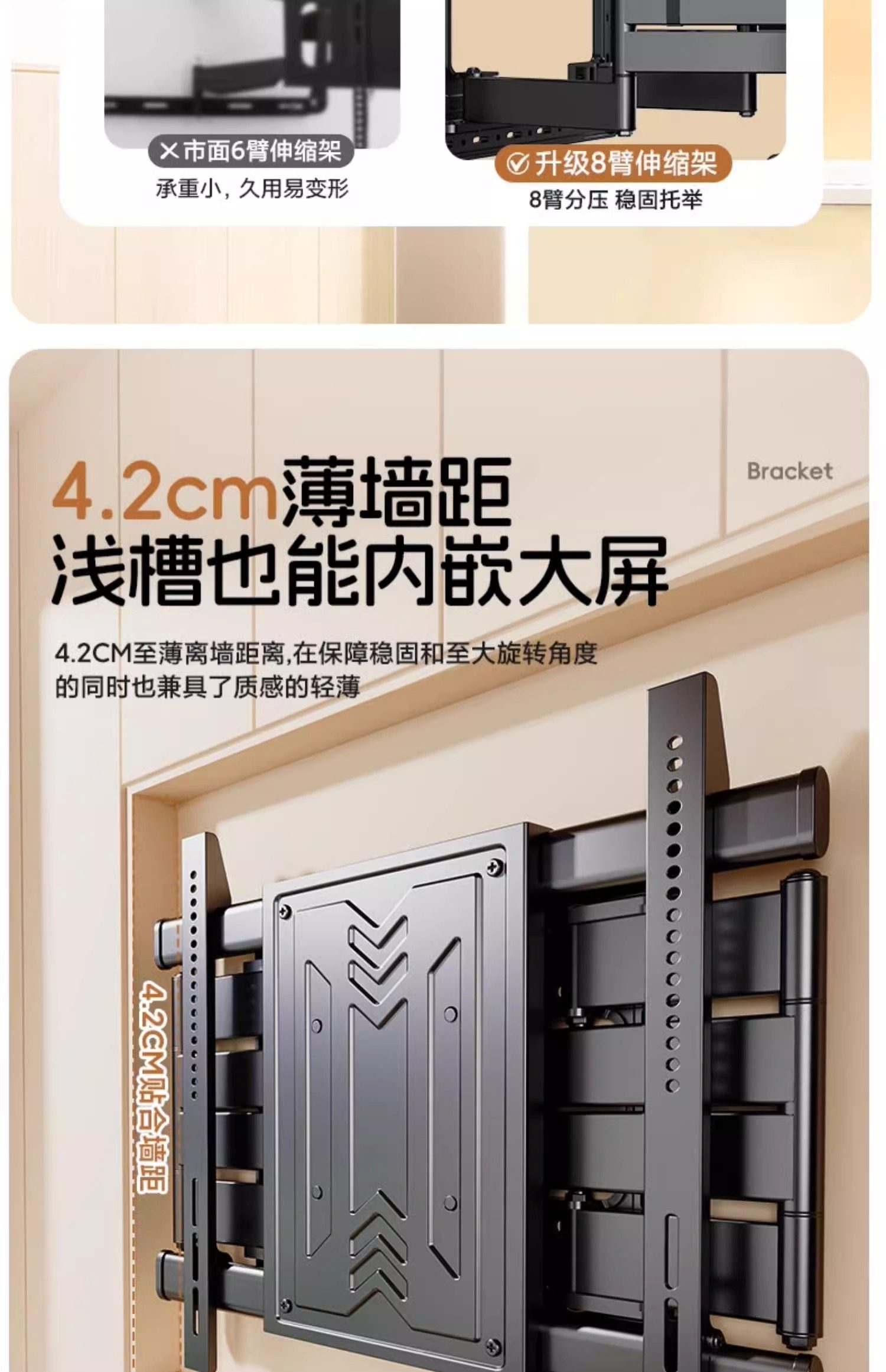 Ultra-Thin Eight-Arm Tv Telescopic Mount Folding Rotating Wall Mount 85inch Suitable for Skyworth, Hisense, Tcl, Etc