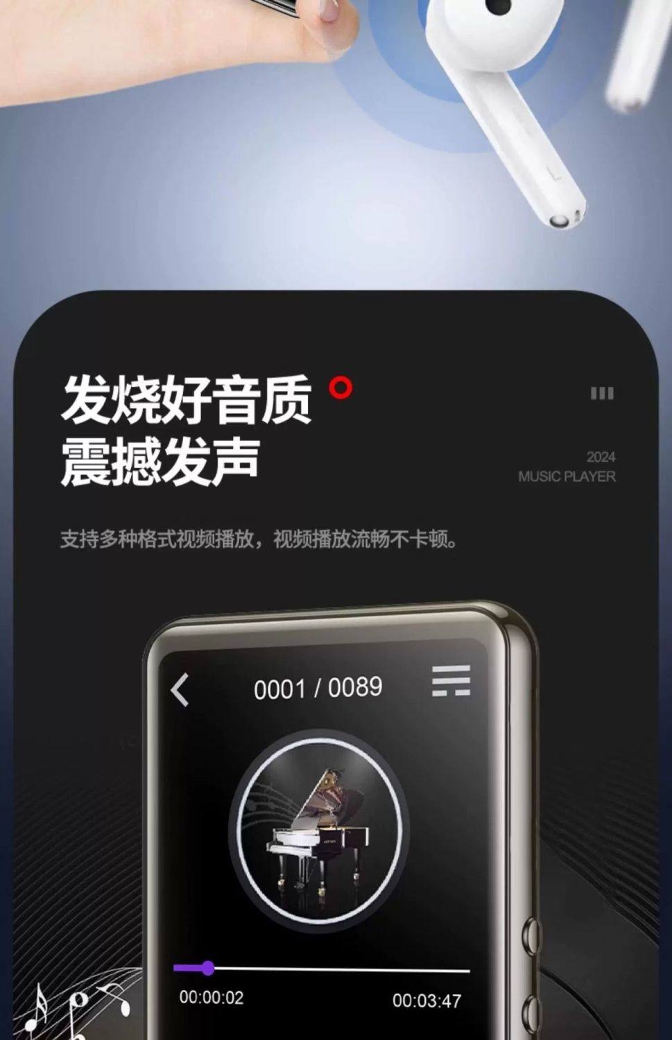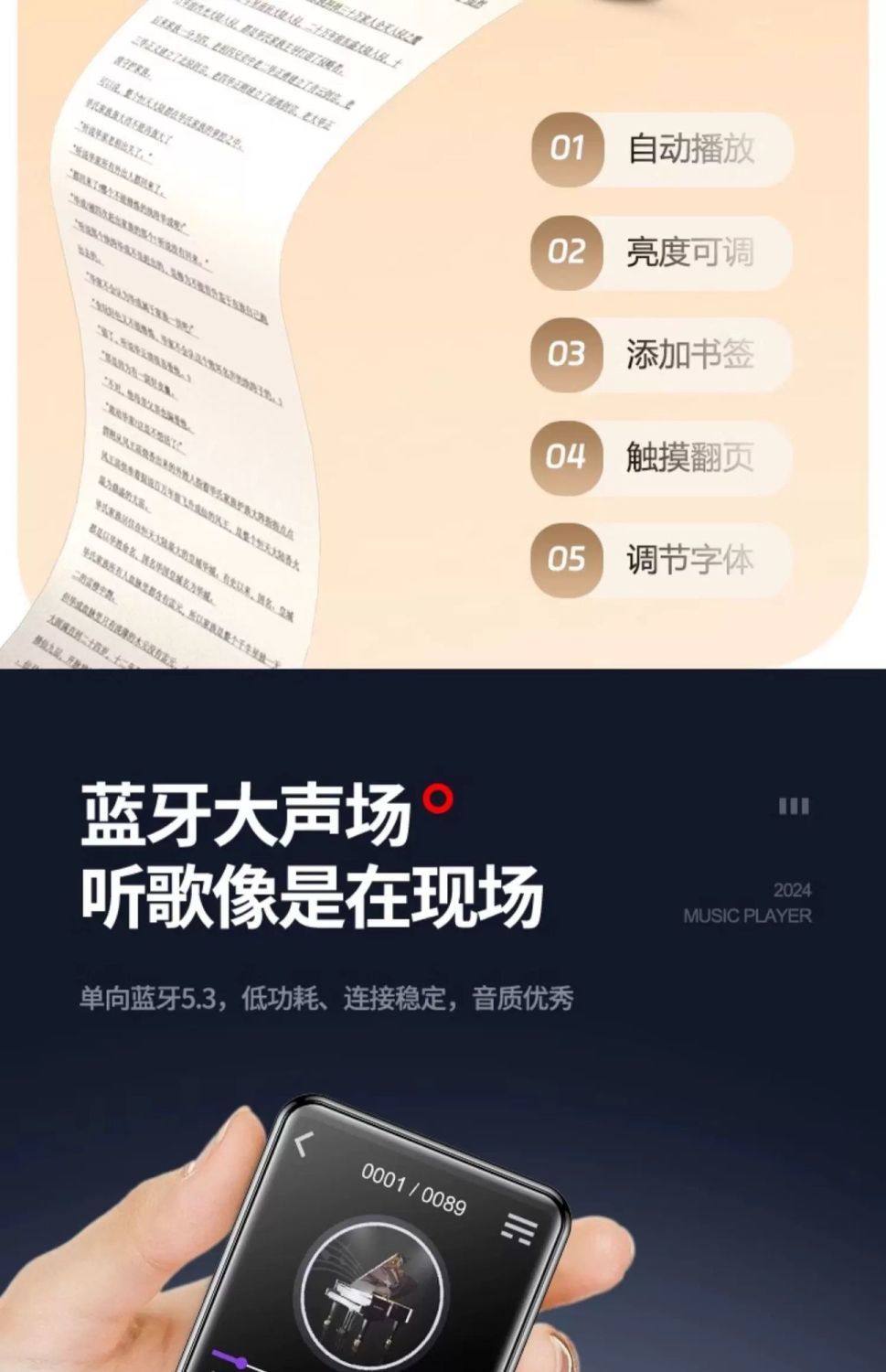 Lenovo Mp3 Player Student Version for Listening to Music, Bluetooth Mp4 Player for Reading Novels and Studying