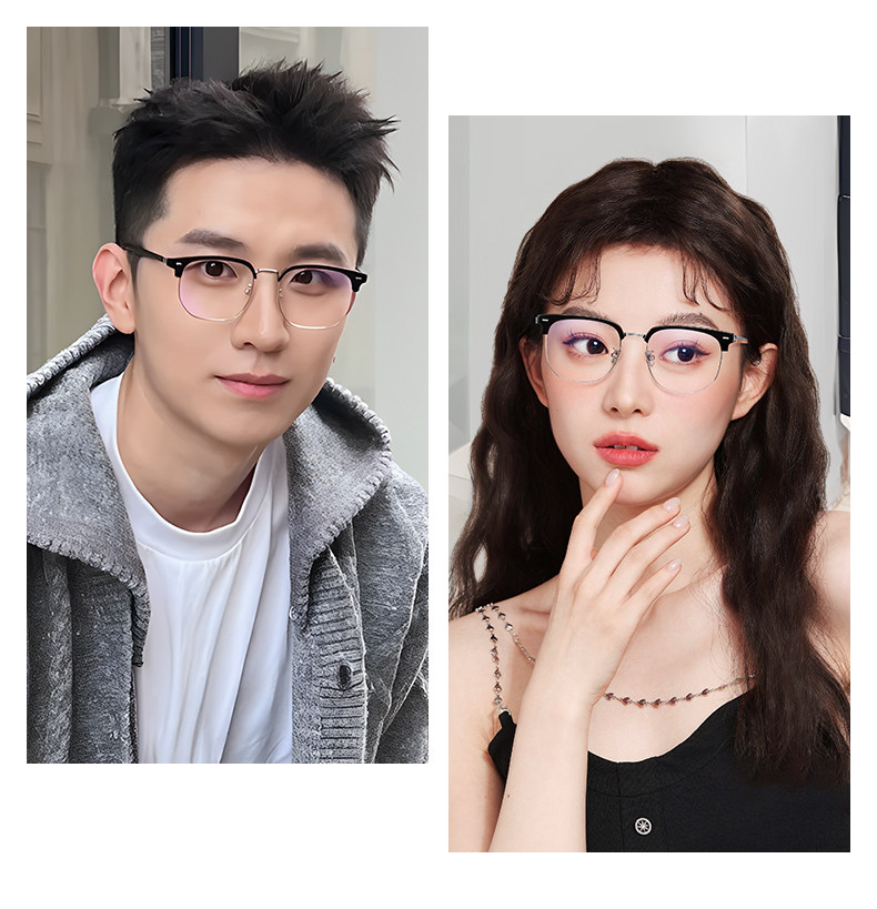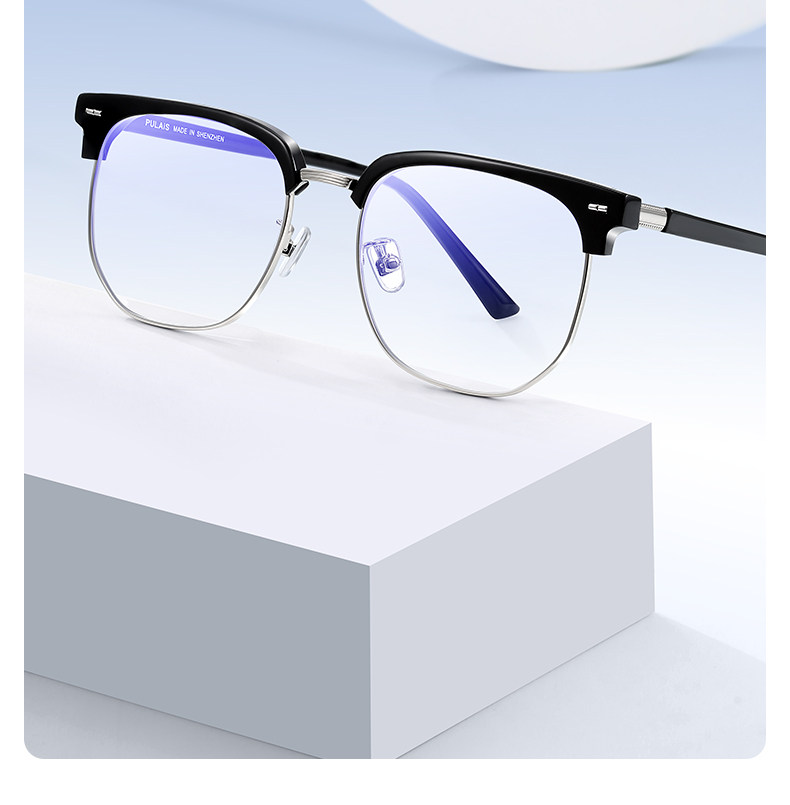 Anti-Blue Light Glasses for Men with Myopia, Customizable Prescription, Women's Half-Frame, Anti-Radiation Fatigue, Professional Eye Protection for Computers and Mobile Phones, Non-Prescription