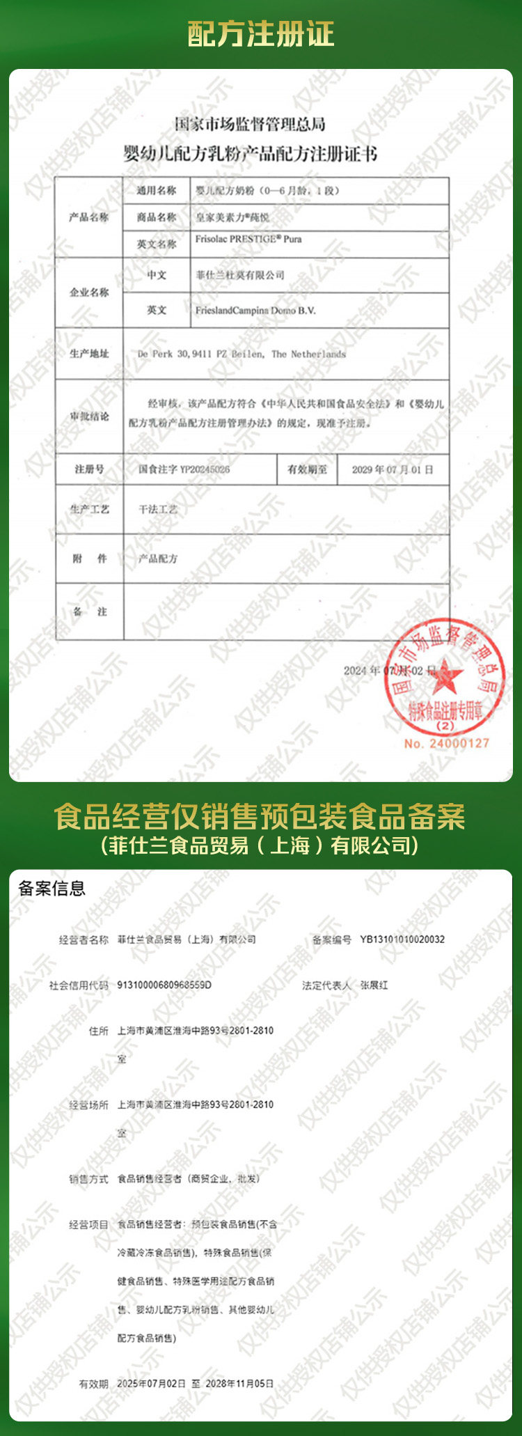 | Brand | Friso Prestige/Royal Meisujiaer |