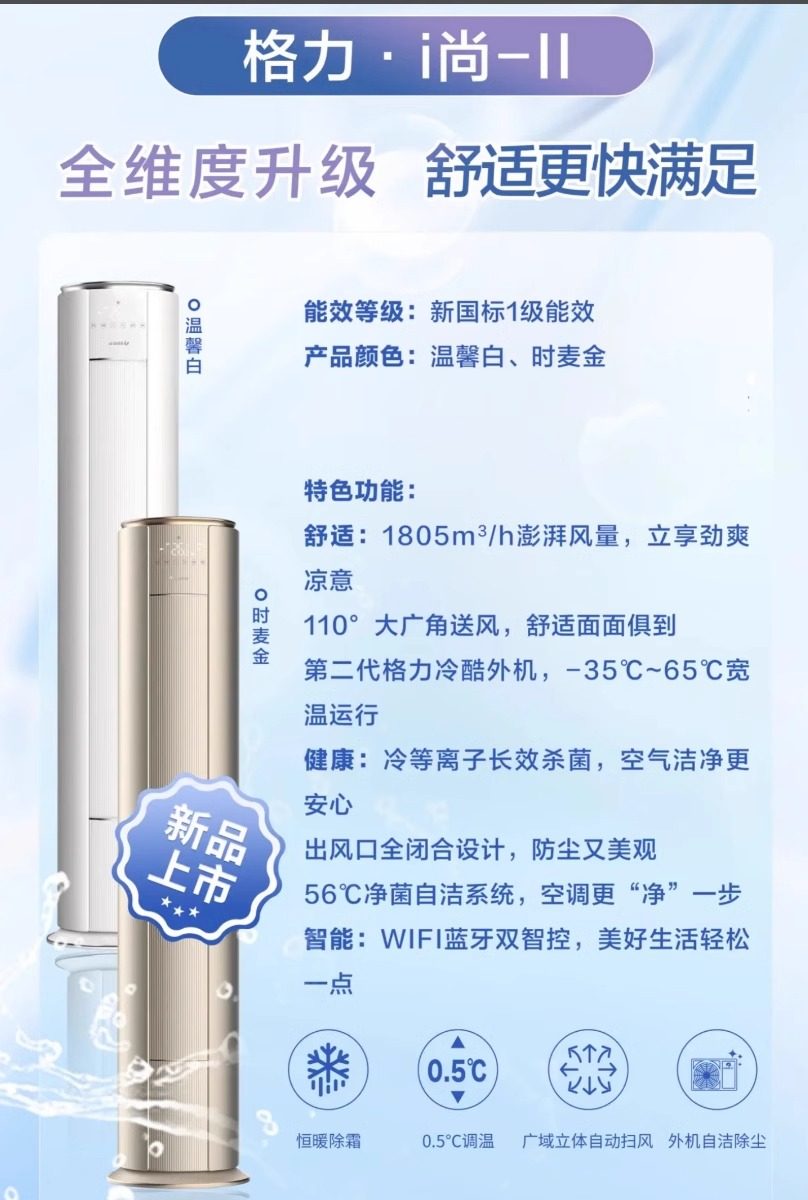 Gree Air Conditioner Cabinet Unit I Shang Second Generation Ii Vertical 3 Hp First-Class Cooling and Heating Inverter Self-Cleaning Living Room Energy-Saving Vertical Cabinet Type