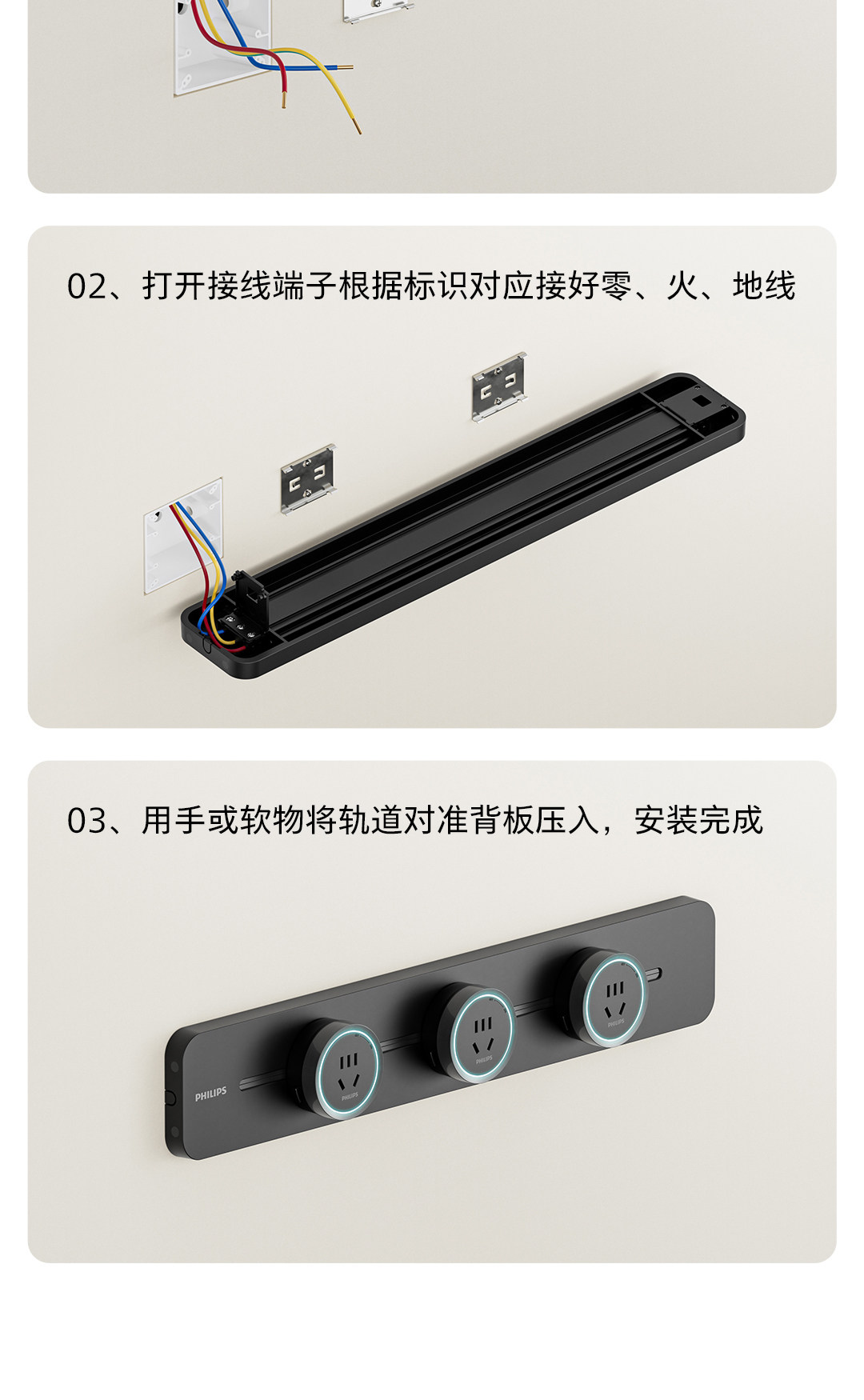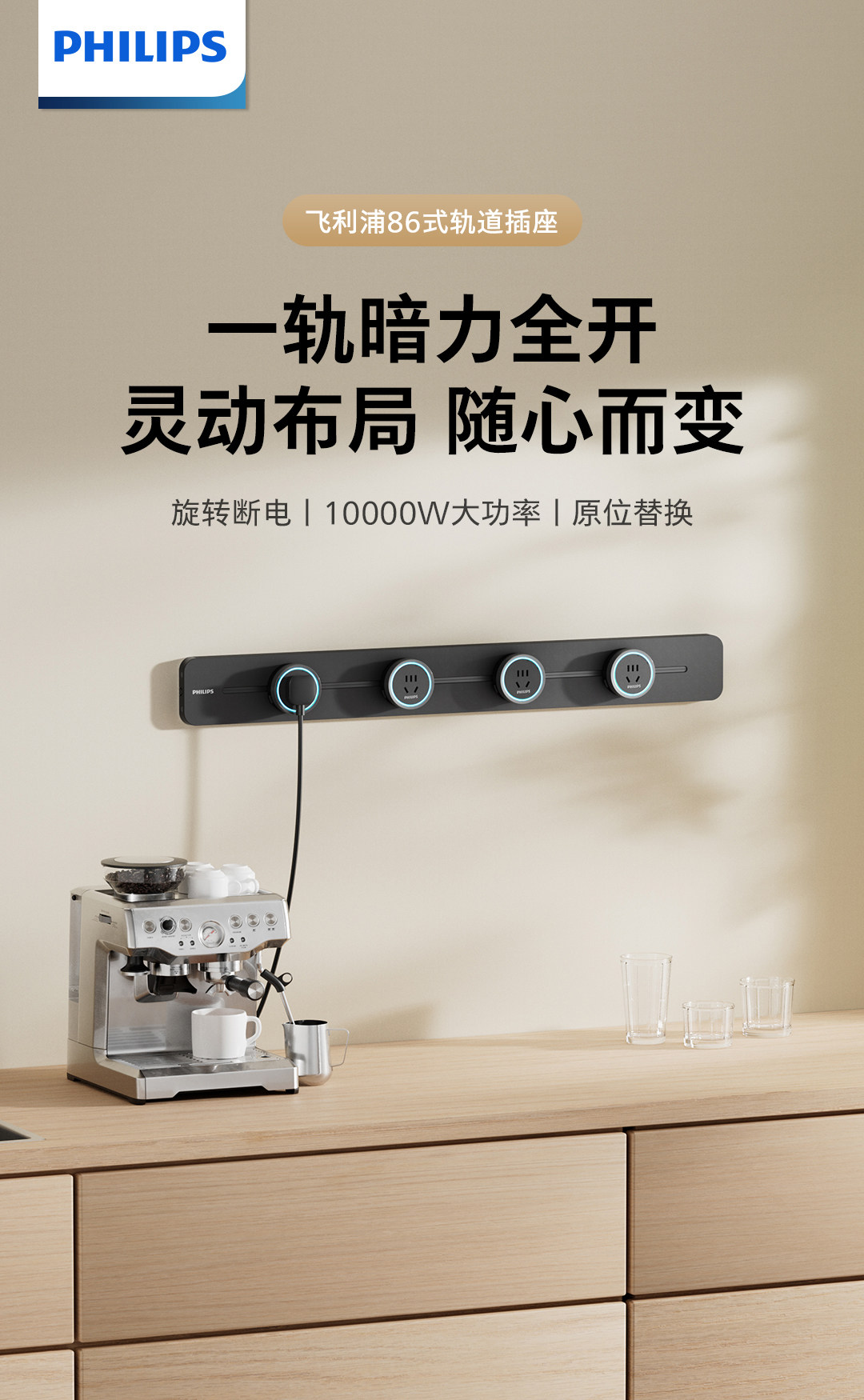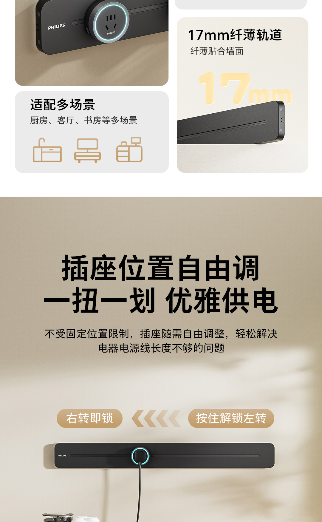 [15%]Philips Movable Track Socket Surface-Mounted Power Sliding Rail Power Strip Socket Wiring Board