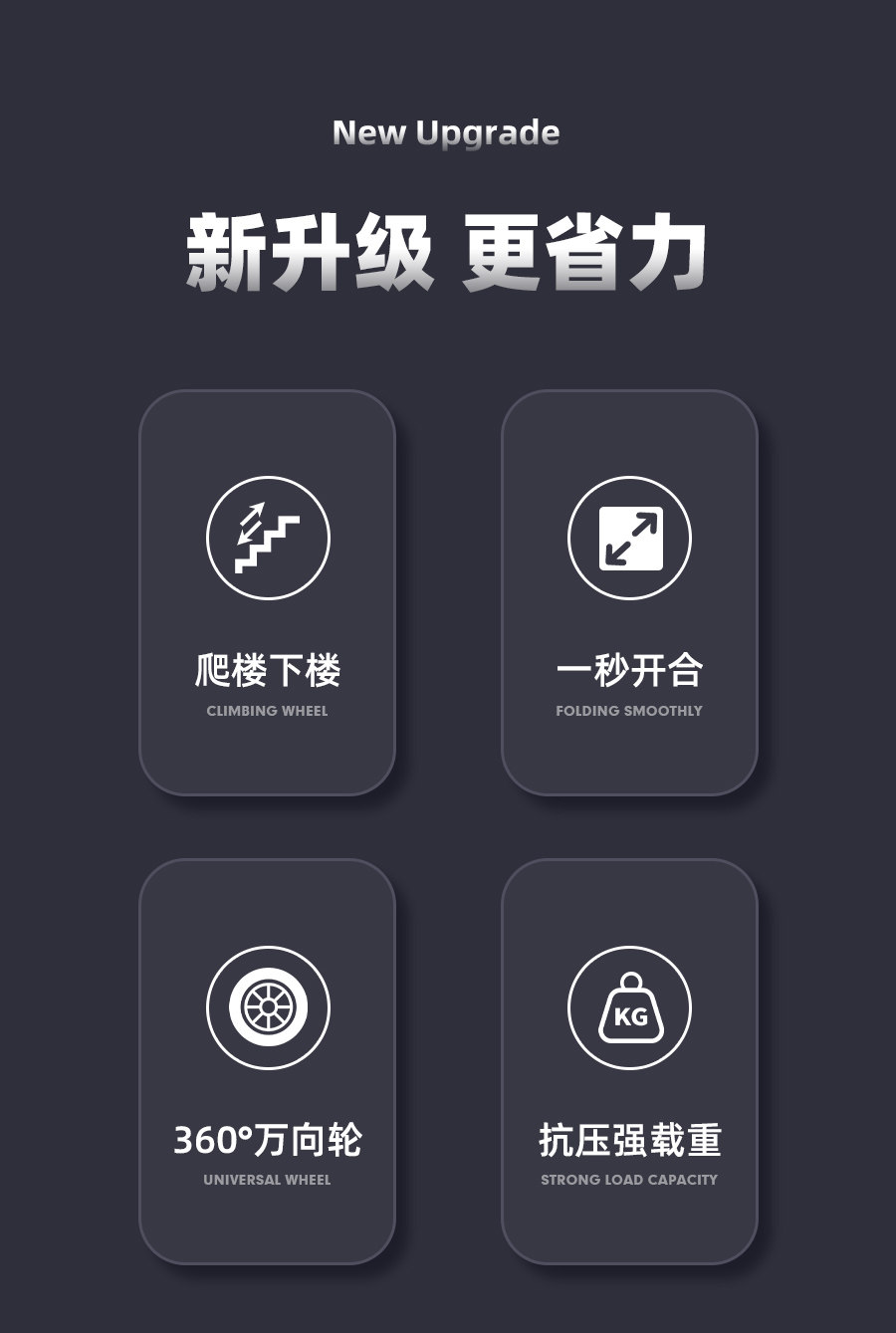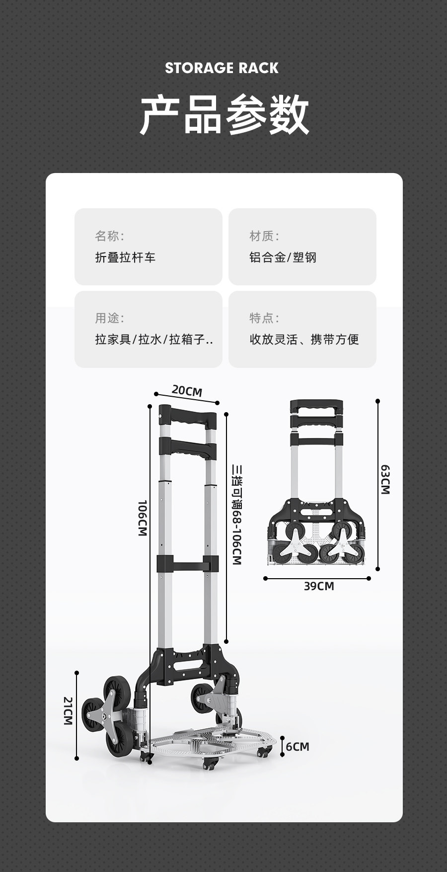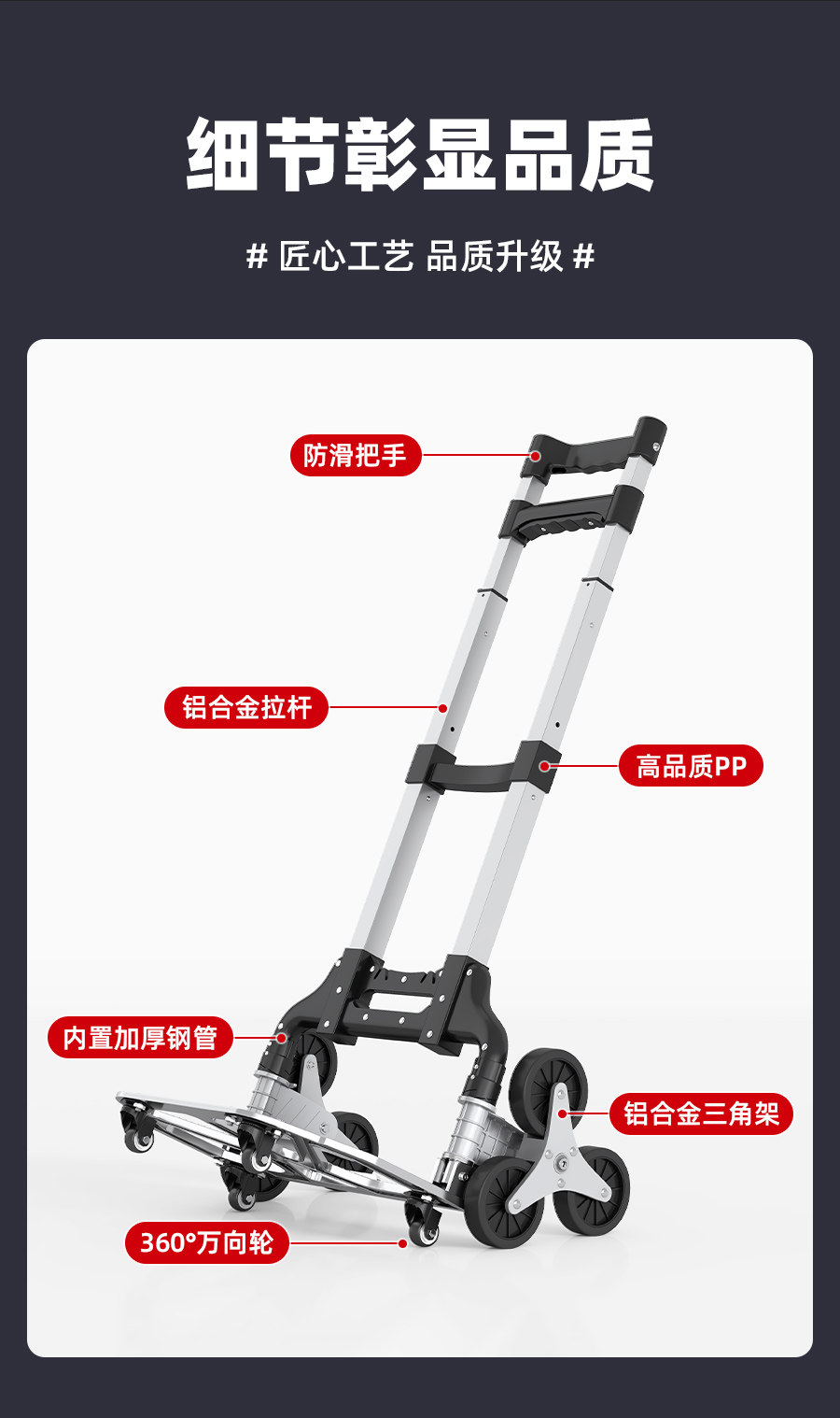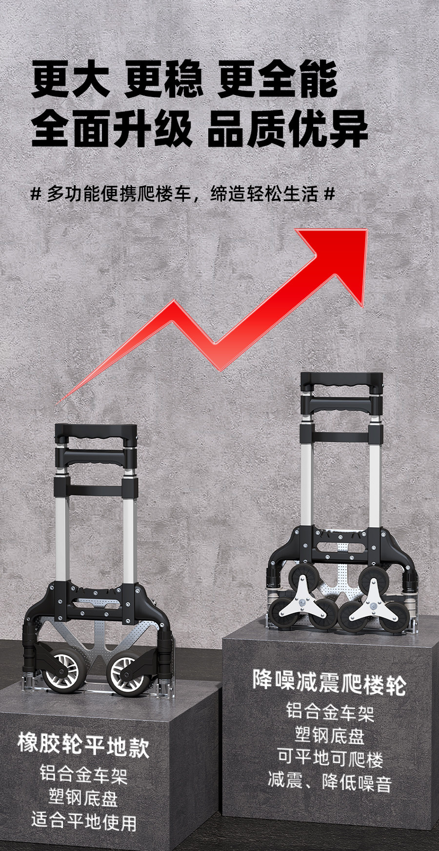 | Color Classification | [Flagship Stair Climbing Model]Reinforced Aluminum Alloy Wheel Frame + Tpr Silent Stair Climbing Wheel + Rope,[Flagship Stair Climbing Model]Reinforced Aluminum Alloy Wheel Frame + Tpr Silent Stair Climbing Wheel + Bag + Rope,[Flagship Stair Climbing Model]Reinforced Aluminum Alloy Wheel Frame + Tpr Silent Stair Climbing Wheel + Four Wheels + Rope,[Flagship Stair Climbing Model]Reinforced Aluminum Alloy Wheel Frame + Tpr Silent Stair Climbing Wheel + Four Wheels + Bag + Rope,[Luxury Stair Climbing Model]Reinforced Aluminum Alloy Wheel Frame + Tpr Silent Stair Climbing Wheel + Rope,[Luxury Stair Climbing Model]Reinforced Aluminum Alloy Wheel Frame + Tpr Silent Stair Climbing Wheel + Bag + Rope,[Luxury Stair Climbing Model]Reinforced Aluminum Alloy Wheel Frame + Tpr Silent Stair Climbing Wheel + Four Wheels + Rope,[Luxury Stair Climbing Model]Reinforced Aluminum Alloy Wheel Frame + Tpr Silent Stair Climbing Wheel + Four Wheels + Bag + Rope,[Upgraded Model]Reinforced Plastic Bearing Wheel Frame + Enlarged Rubber Wheel,[Upgraded Model]Reinforced Plastic Bearing Wheel Frame + Enlarged Rubber Wheel + Elastic Rope + Bag,[Upgraded Model]Reinforced Plastic Bearing Wheel Frame + Enlarged Rubber Wheel + Elastic Rope + Four Wheels,[Upgraded Model]Reinforced Plastic Bearing Wheel Frame + Enlarged Rubber Wheel + Elastic Rope + Four Wheels + Bag,[Classic Style]Plastic Bearing Wheel Frame + Rubber Wheel,[Classic Style]Plastic Bearing Wheel Frame + Rubber Wheel + Elastic Rope + Bag,[Classic Style]Plastic Bearing Wheel Frame + Rubber Wheel + Elastic Rope + Four Wheels,[Classic Style]Plastic Bearing Wheel Frame + Rubber Wheel + Elastic Rope + Four Wheels + Bag,[Classic Style]Rubber Wheel |