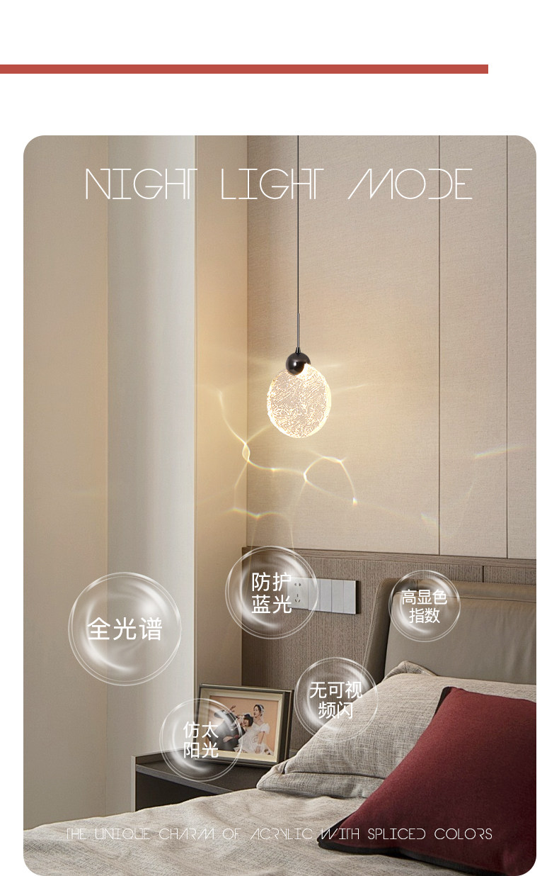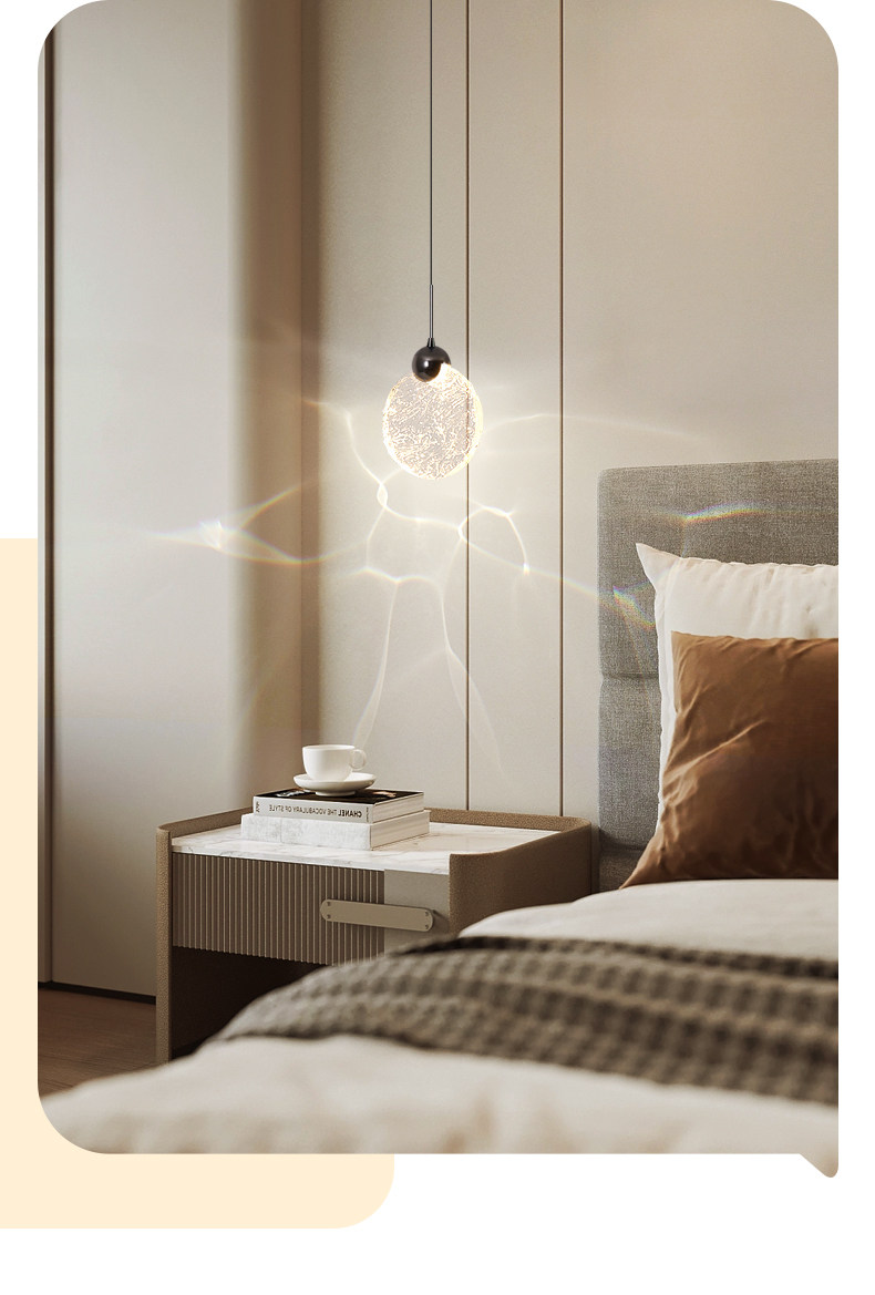 Crystal Bedside Pendant Light, Atmospheric Decoration for the Bedroom, High-End Floating Ice Light, Light Luxury Entryway Hallway Pendant Light