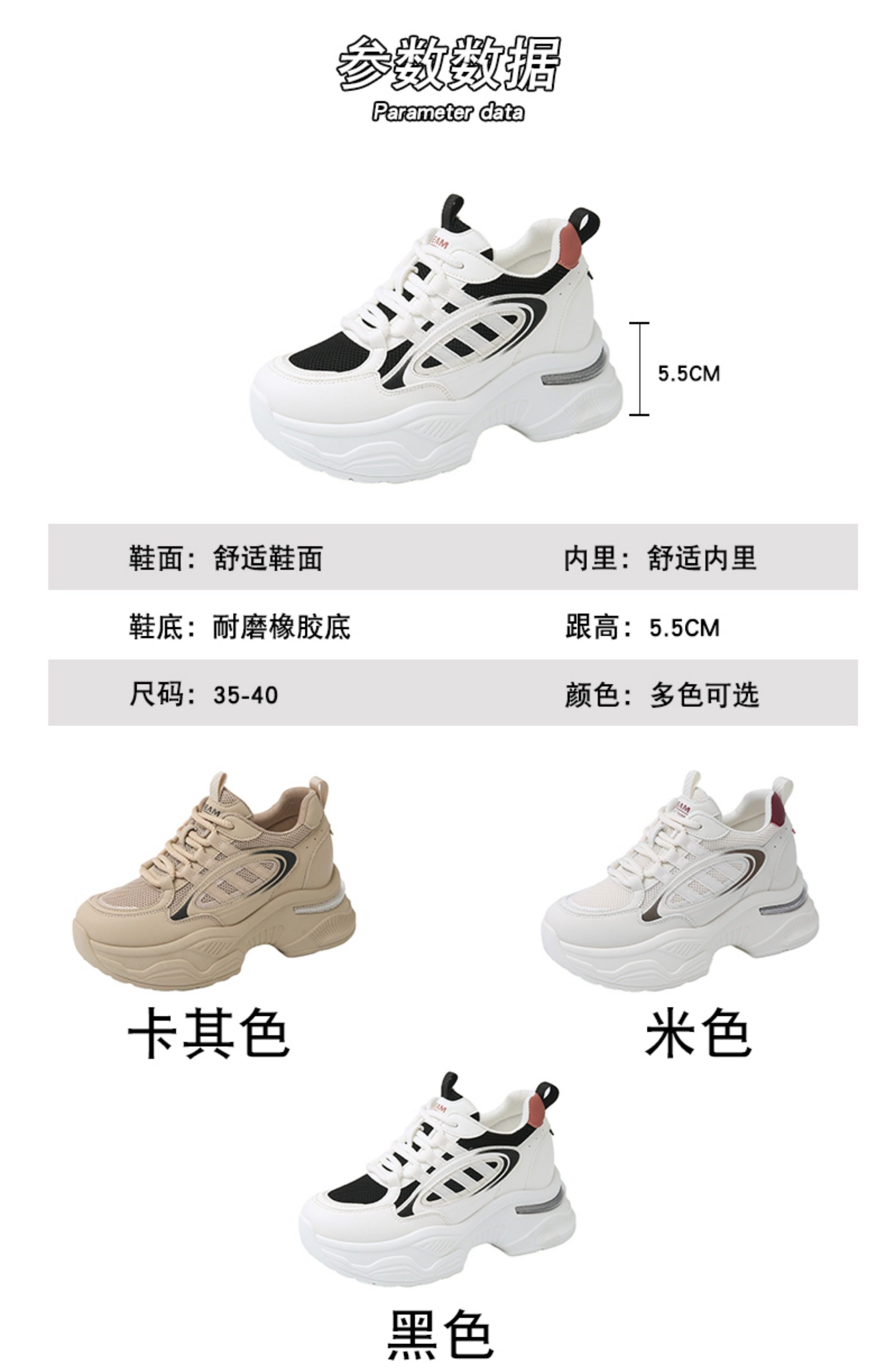 Mesh Thick-Soled Dad Shoes for Women 2025 Spring and Summer New Women's Breathable Women's Shoes 34 Small Size Heightening Casual Sports Shoes