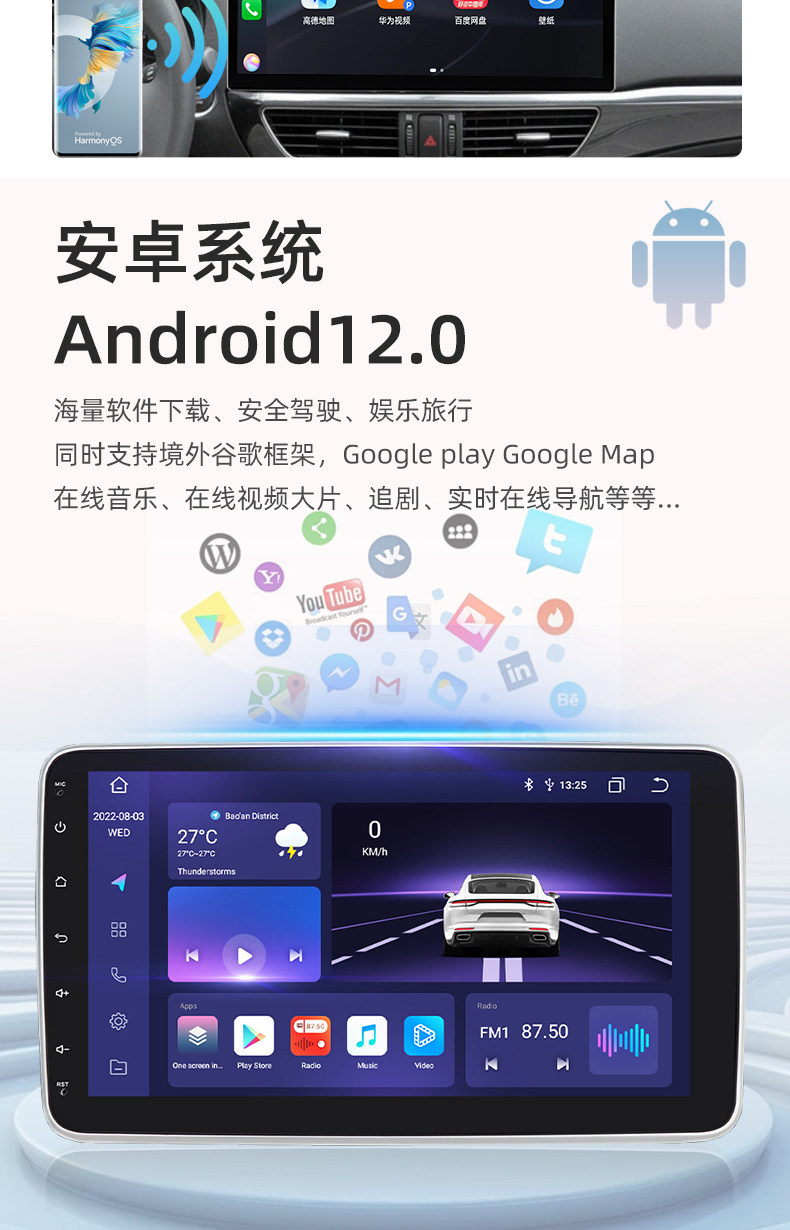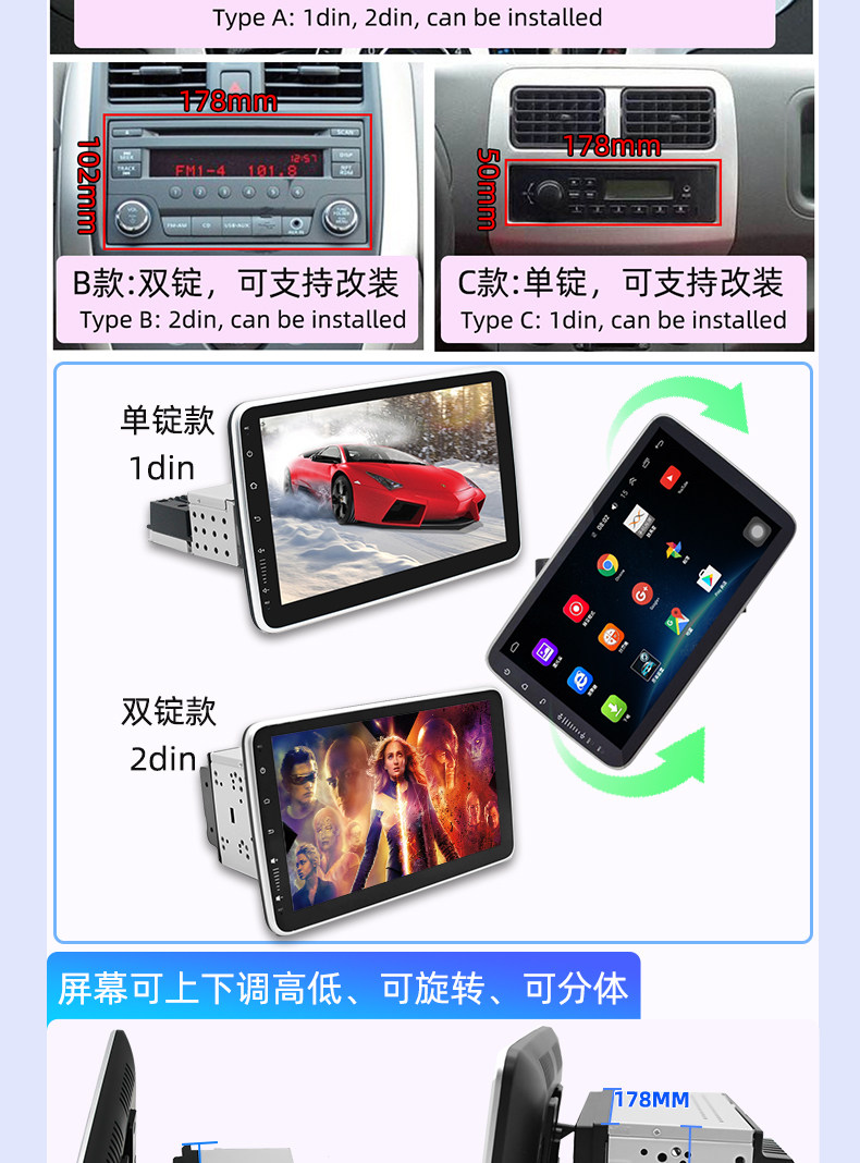 New Model Universal Android Car Stereo for Single or Dual Head Units, Large Screen Modification for Car Central Control, Taiwan Overseas Carplay All-In-One Device