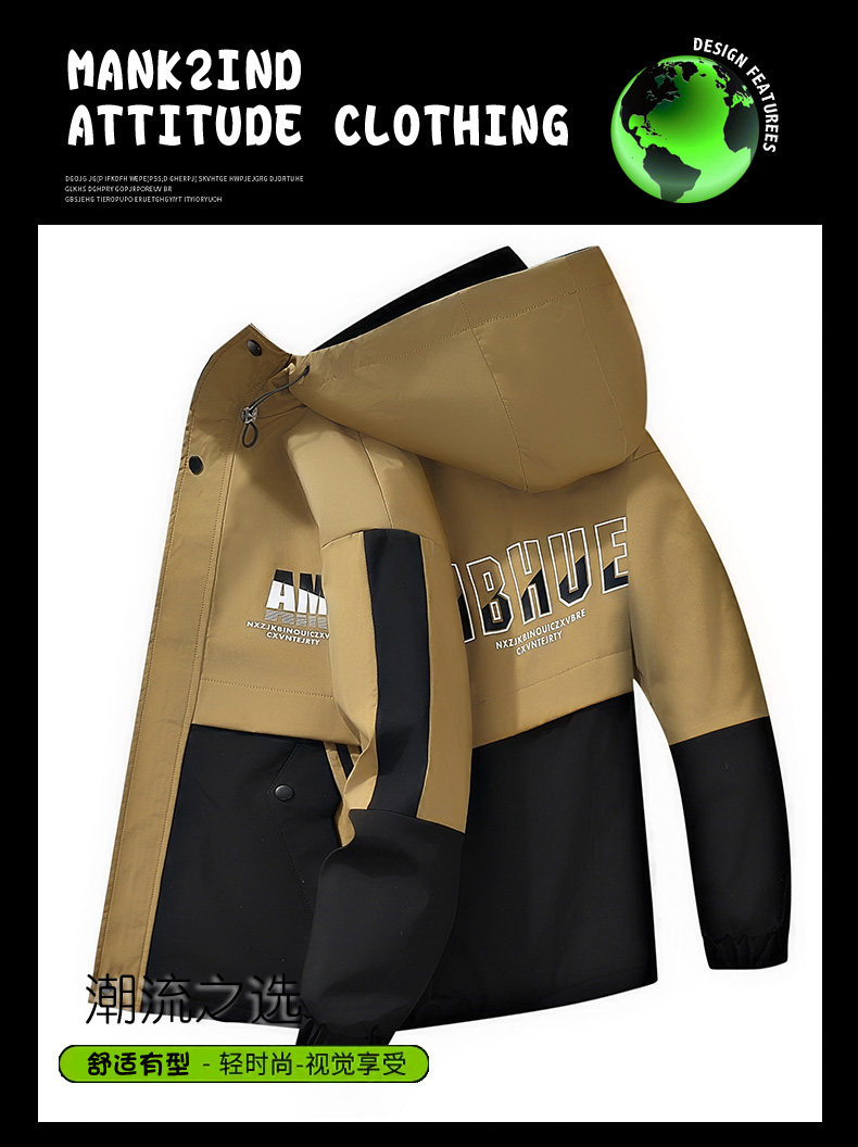 Spring and Autumn Men's Jacket Trendy Korean Style Workwear Hooded Jacket Men's Casual Thin Loose Windbreaker Men's Coat