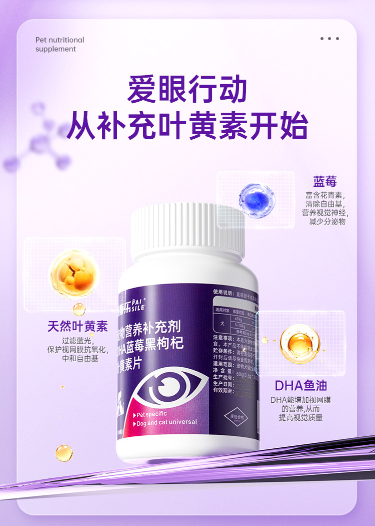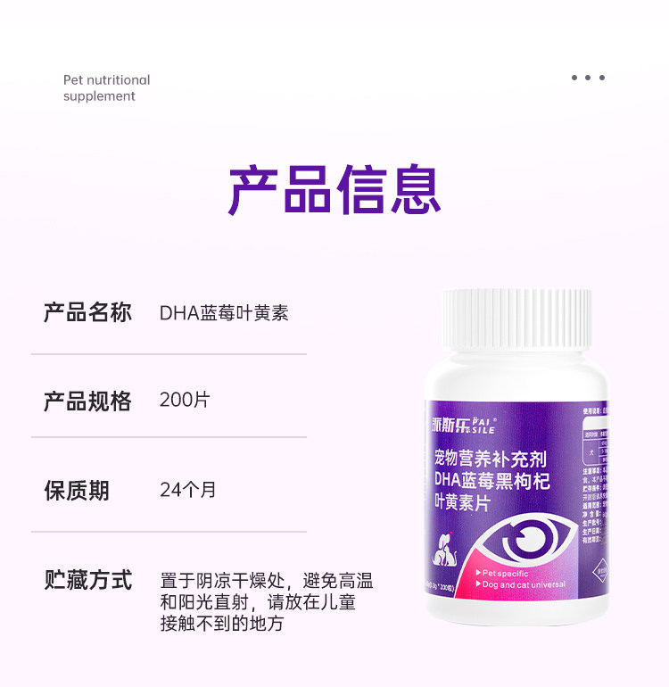 Paisle Dha Blueberry Lutein for Cats to Relieve Tear Stains, Protect Dogs' Eyesight, and Reduce Eye Discharge Pet Nutritional Supplement