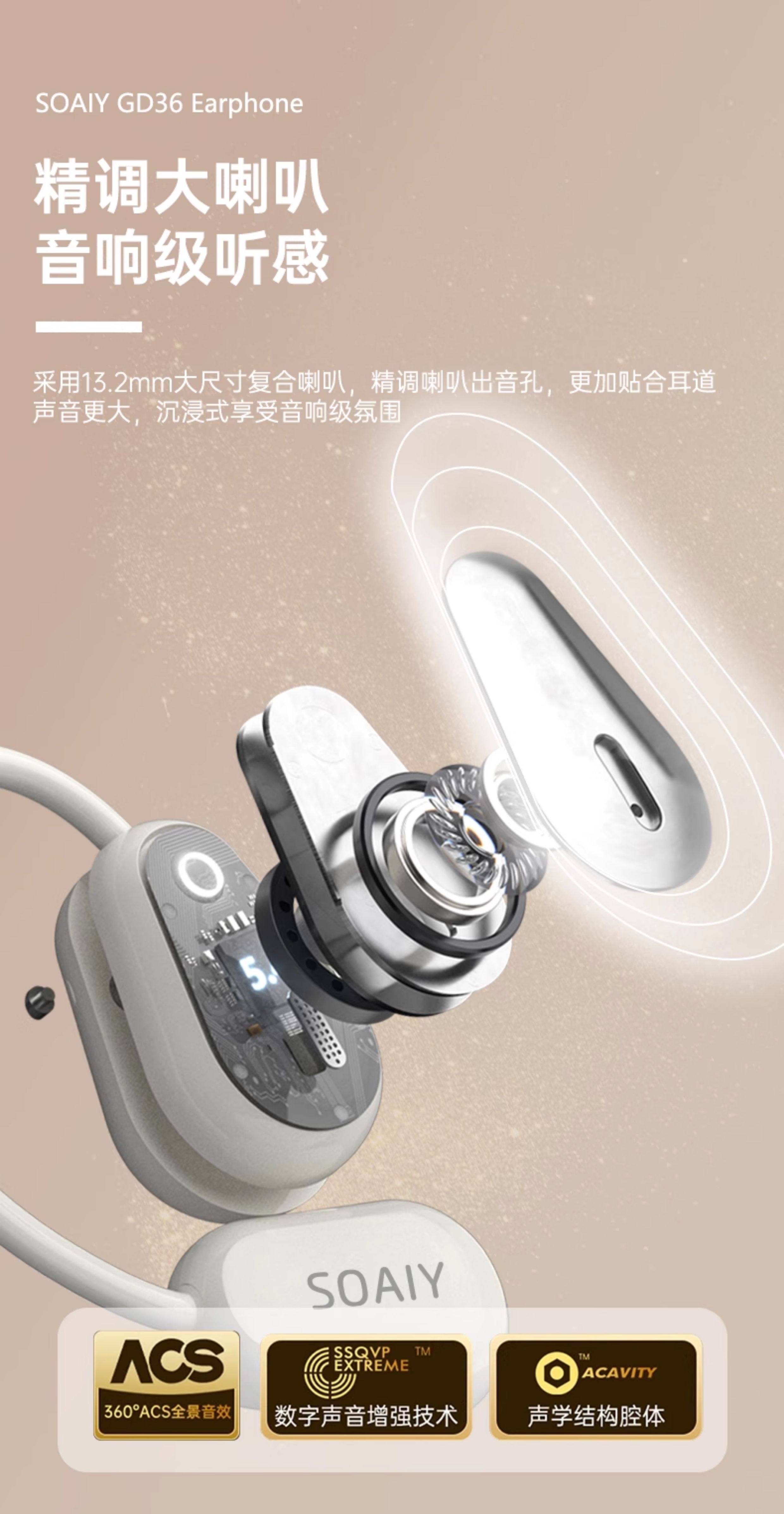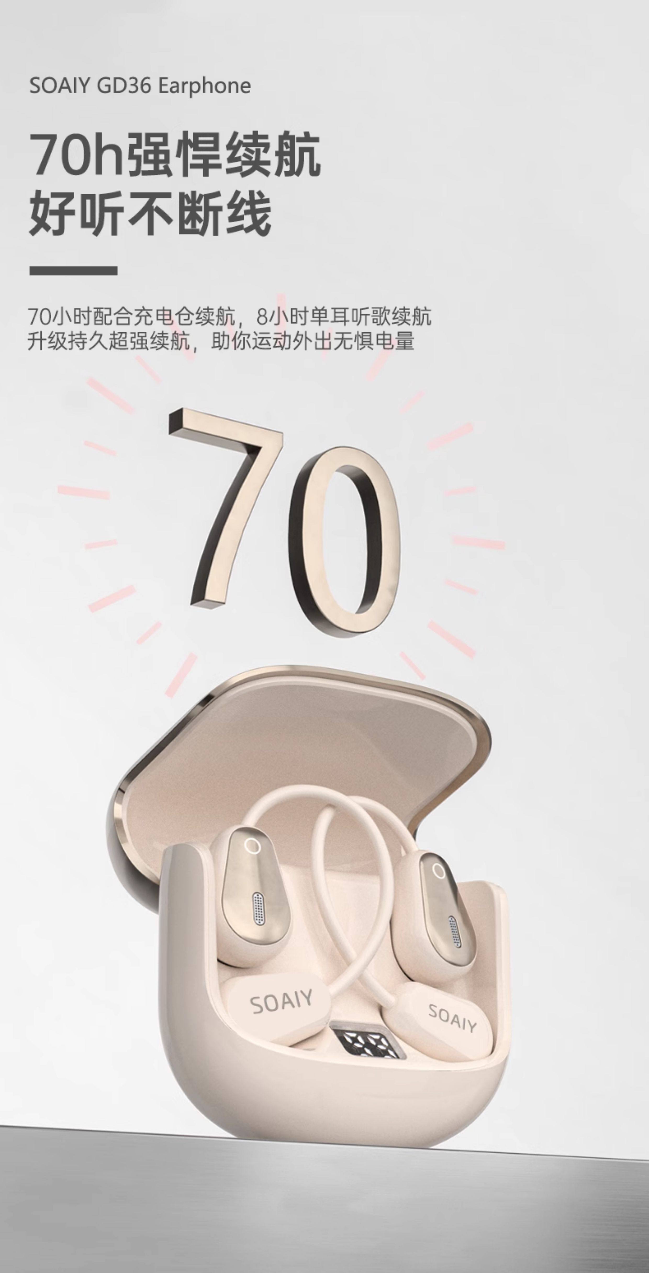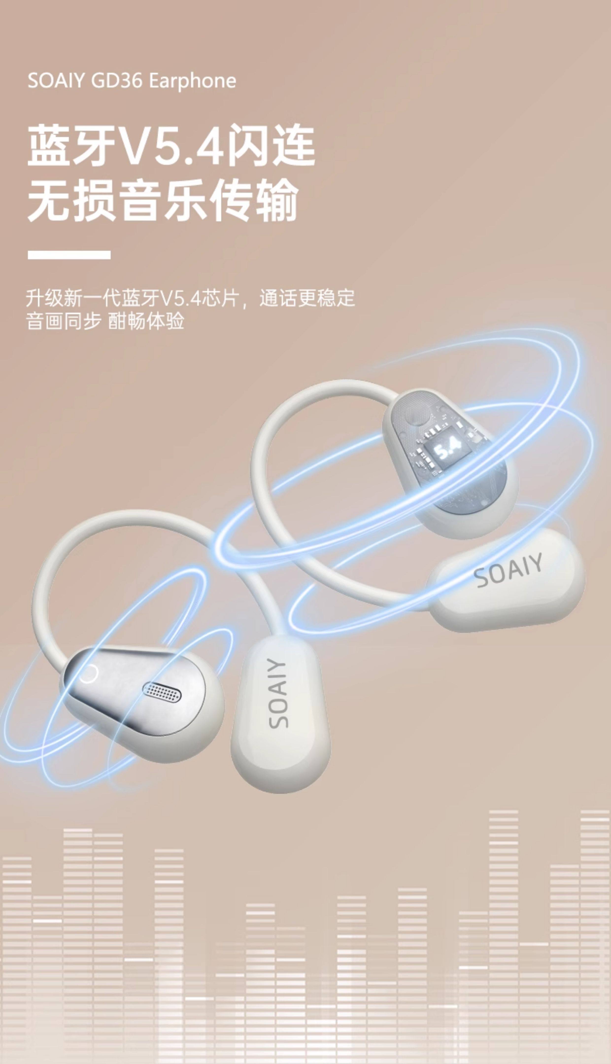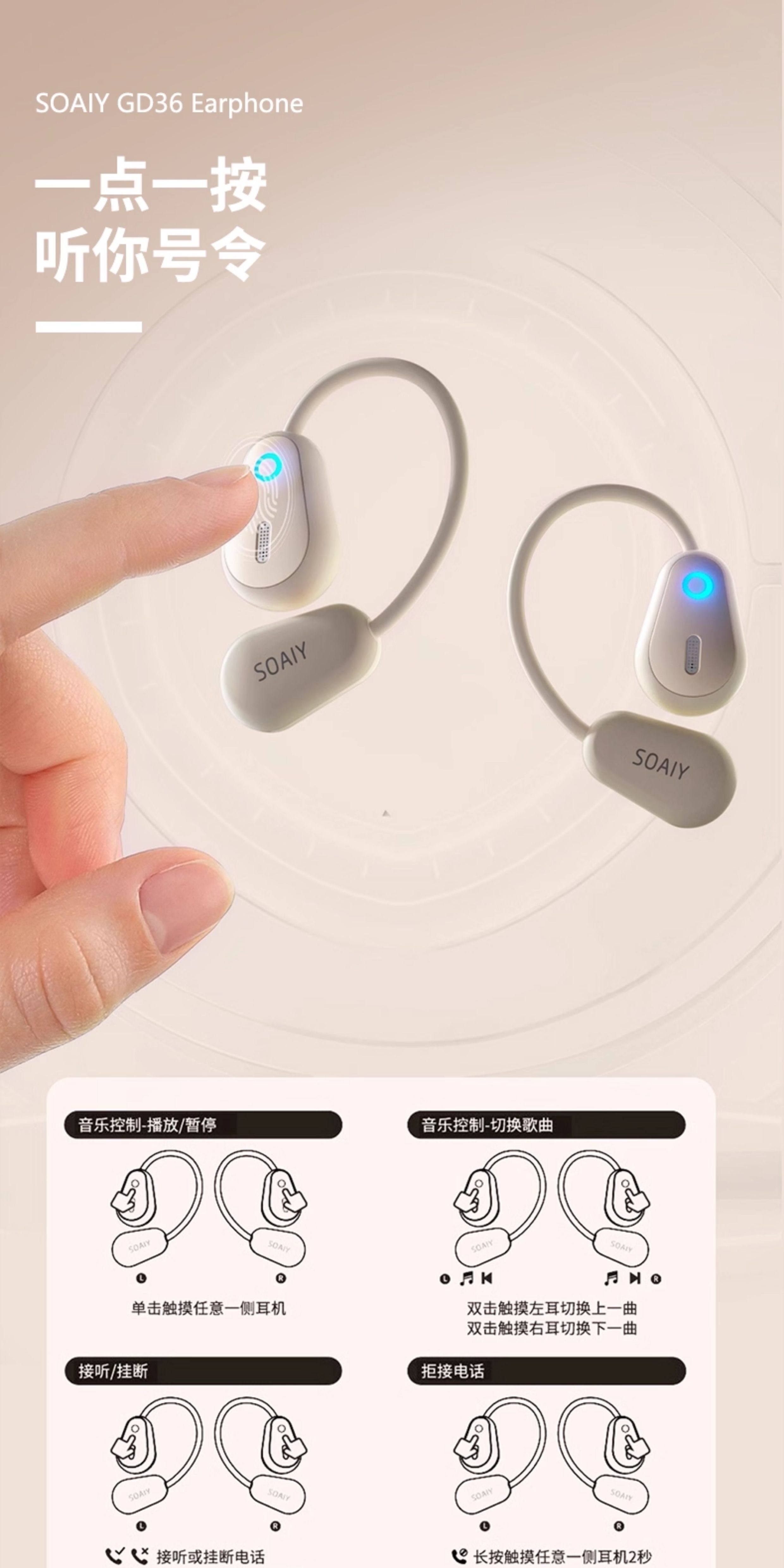 Soaiy Gd36 Bluetooth Earphones, Over-Ear Wireless, Non-In-Ear, Suitable for Running, Fitness, and Sports, Can'T Be Shaken Off