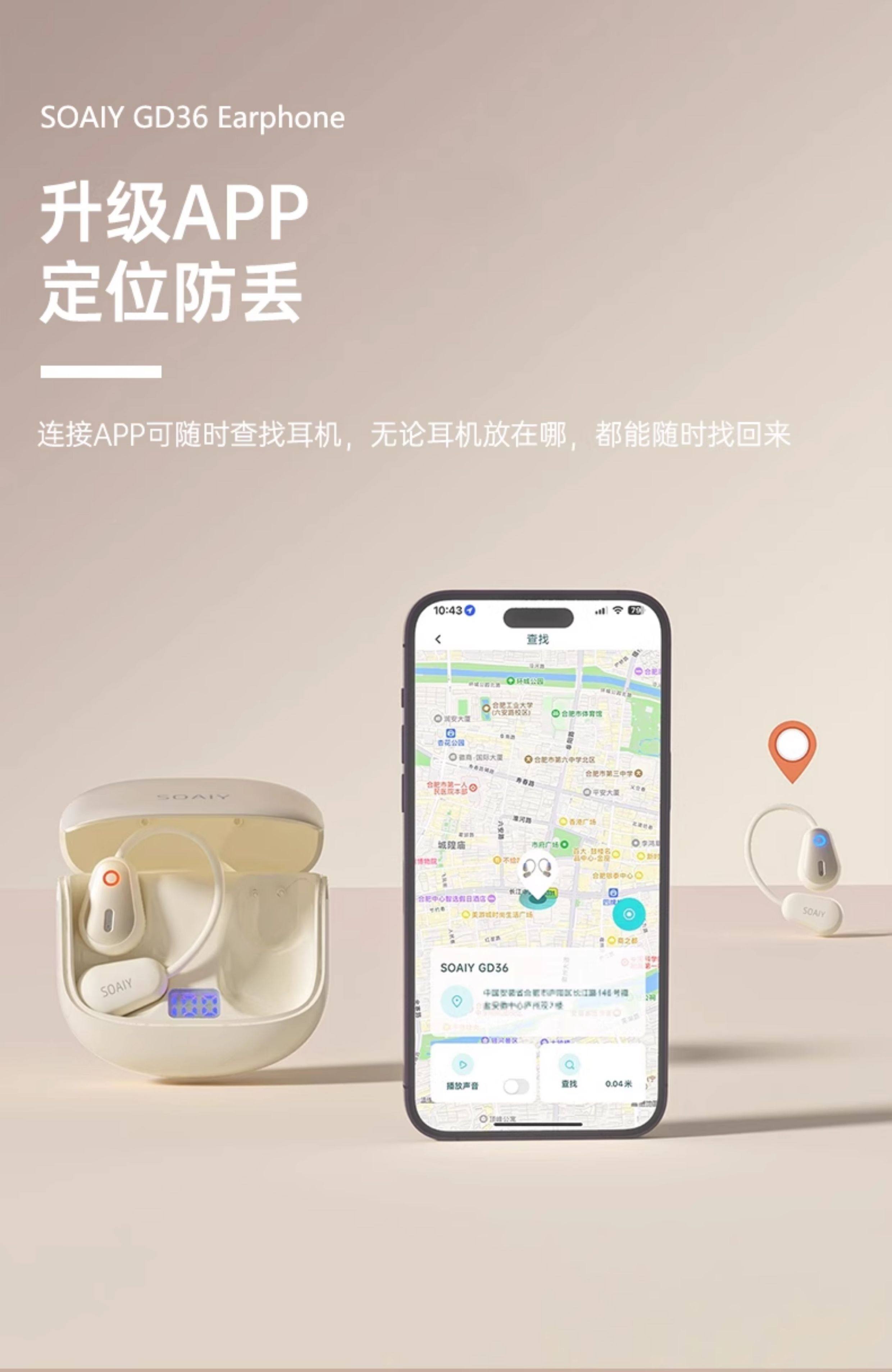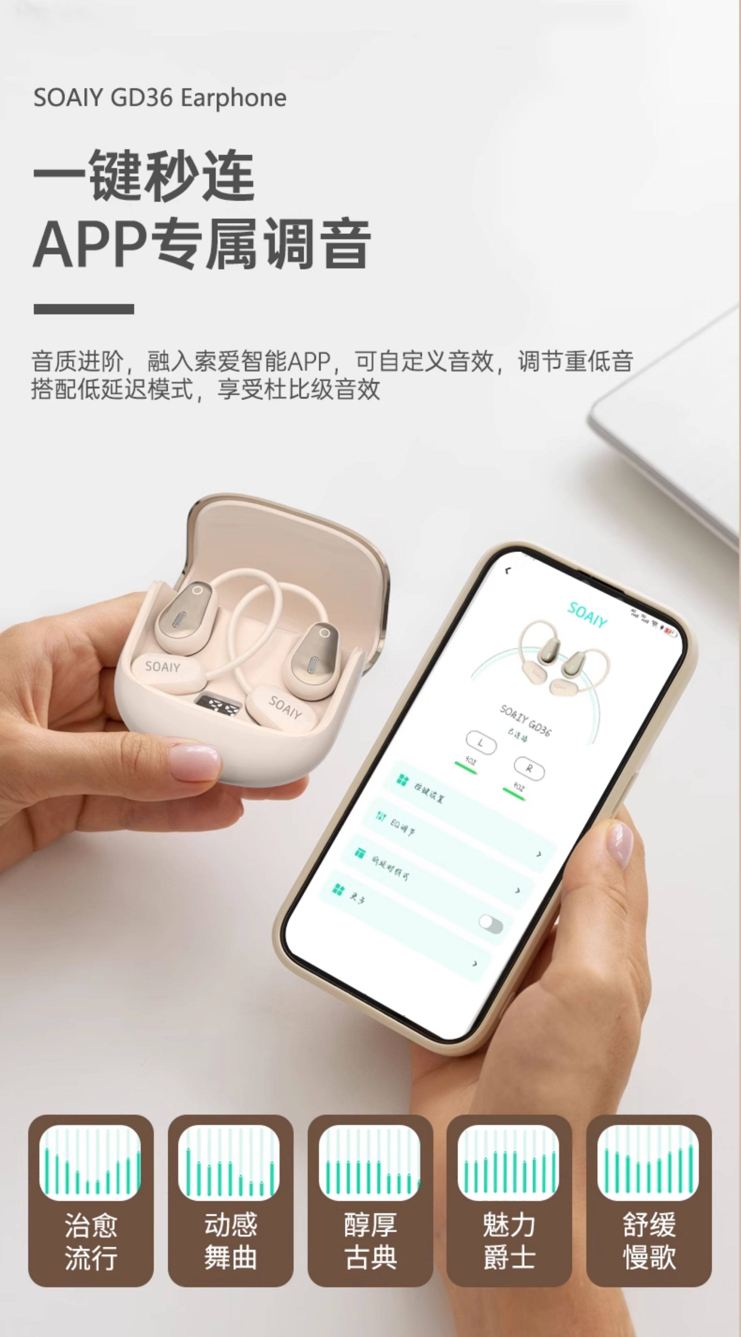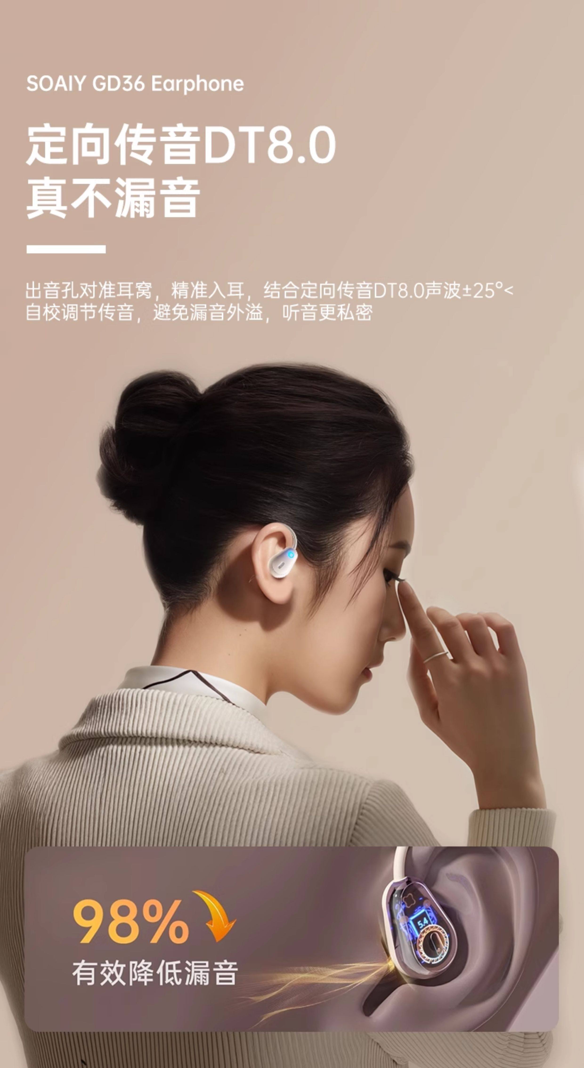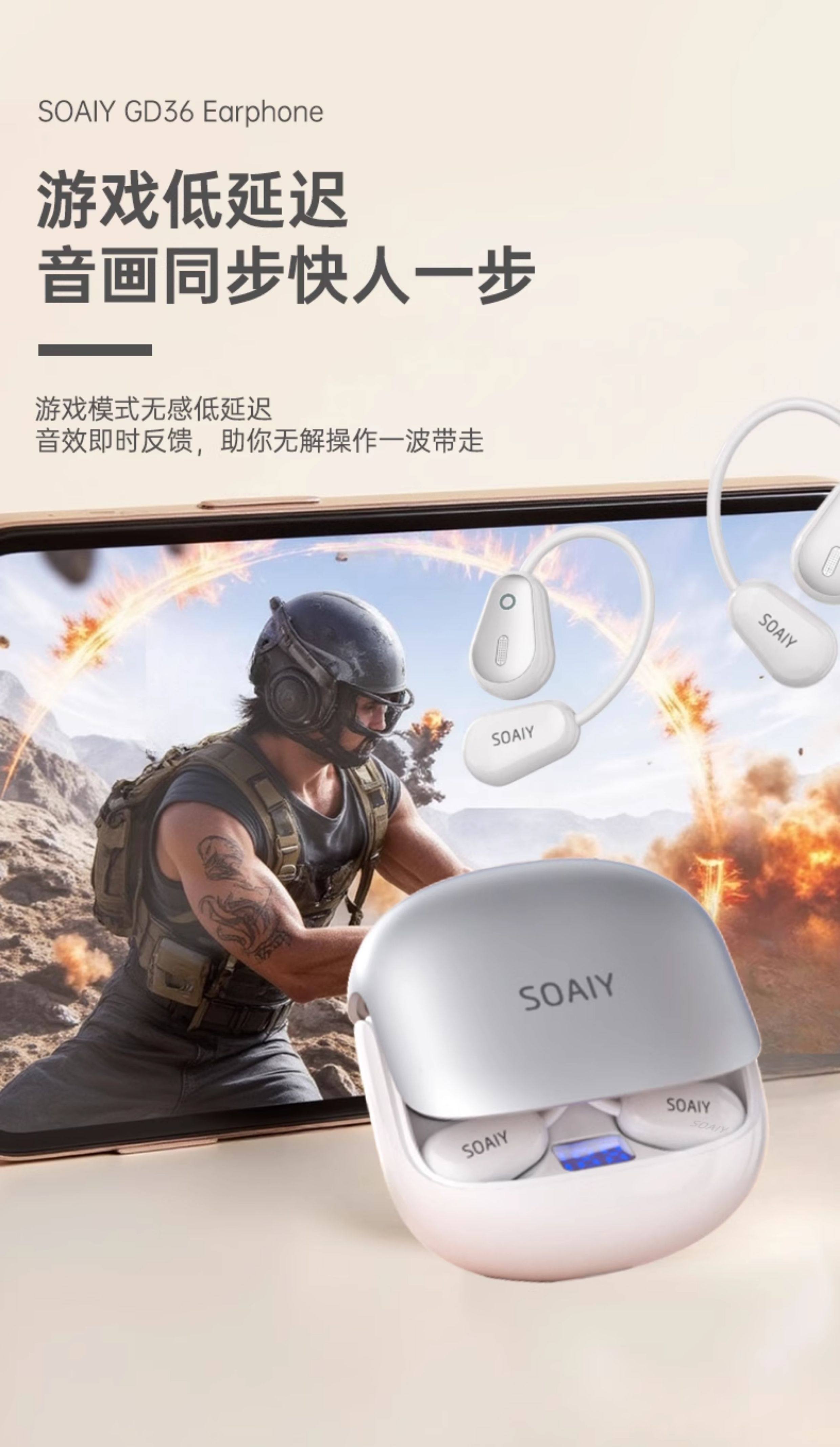 Soaiy Gd36 Bluetooth Earphones, Over-Ear Wireless, Non-In-Ear, Suitable for Running, Fitness, and Sports, Can'T Be Shaken Off