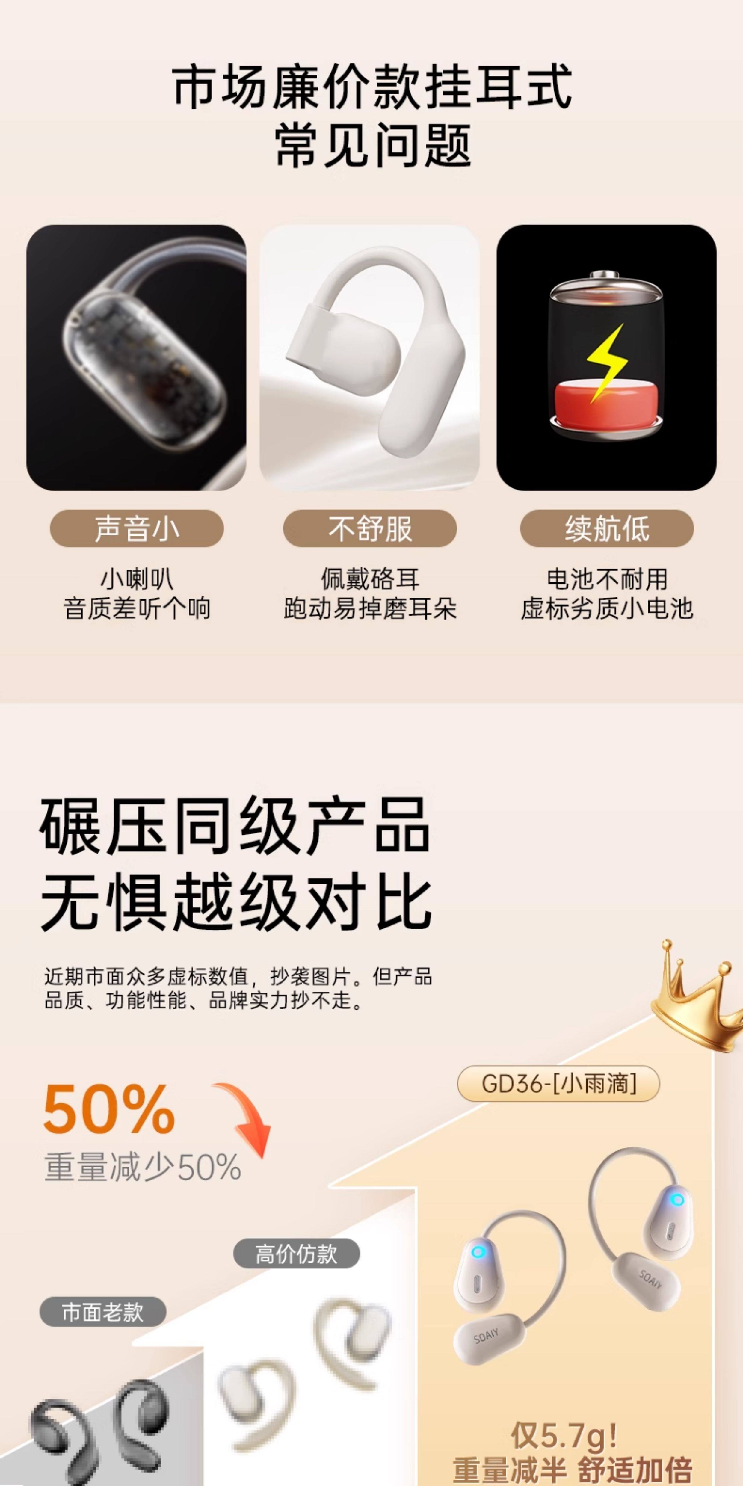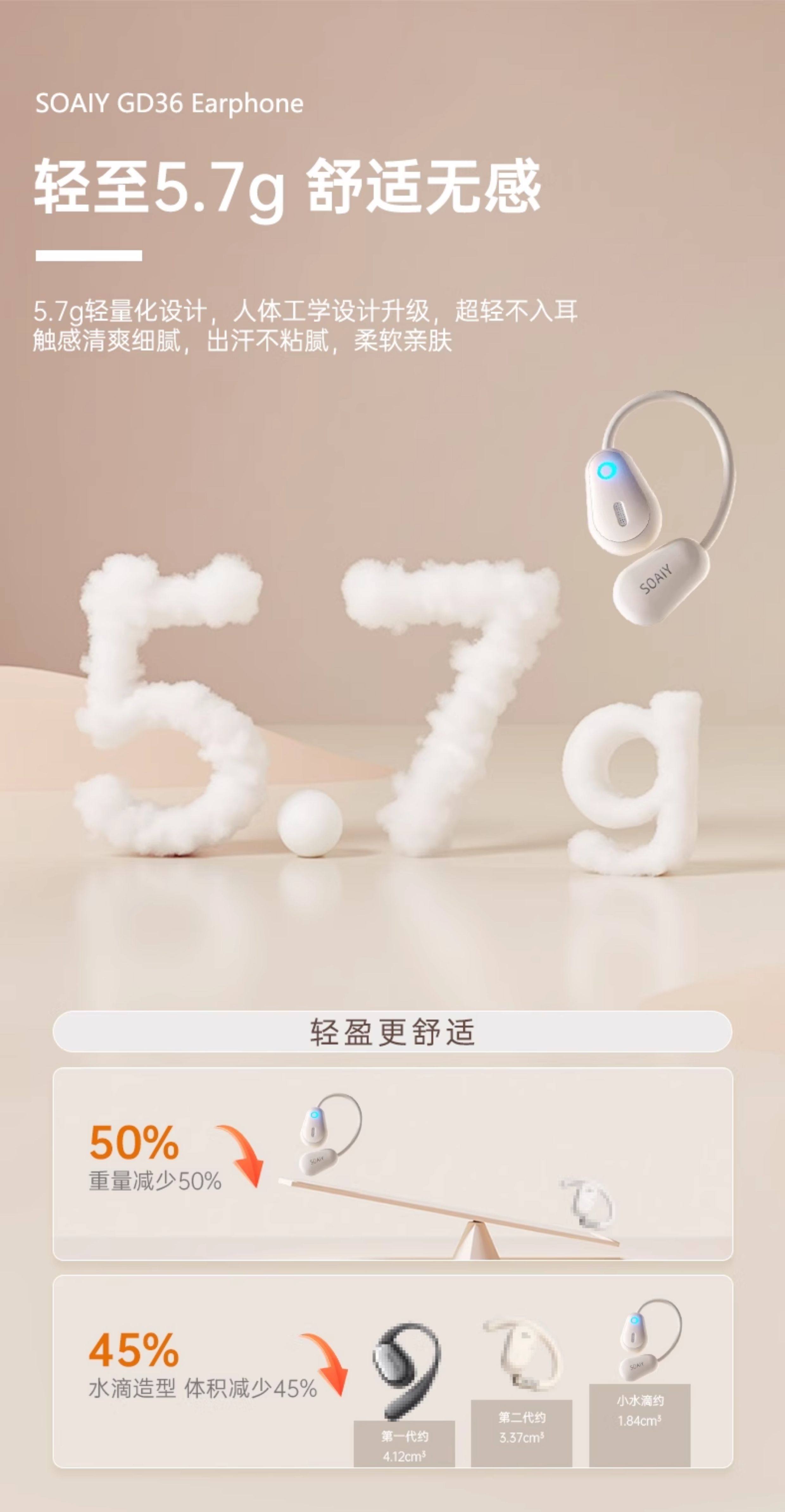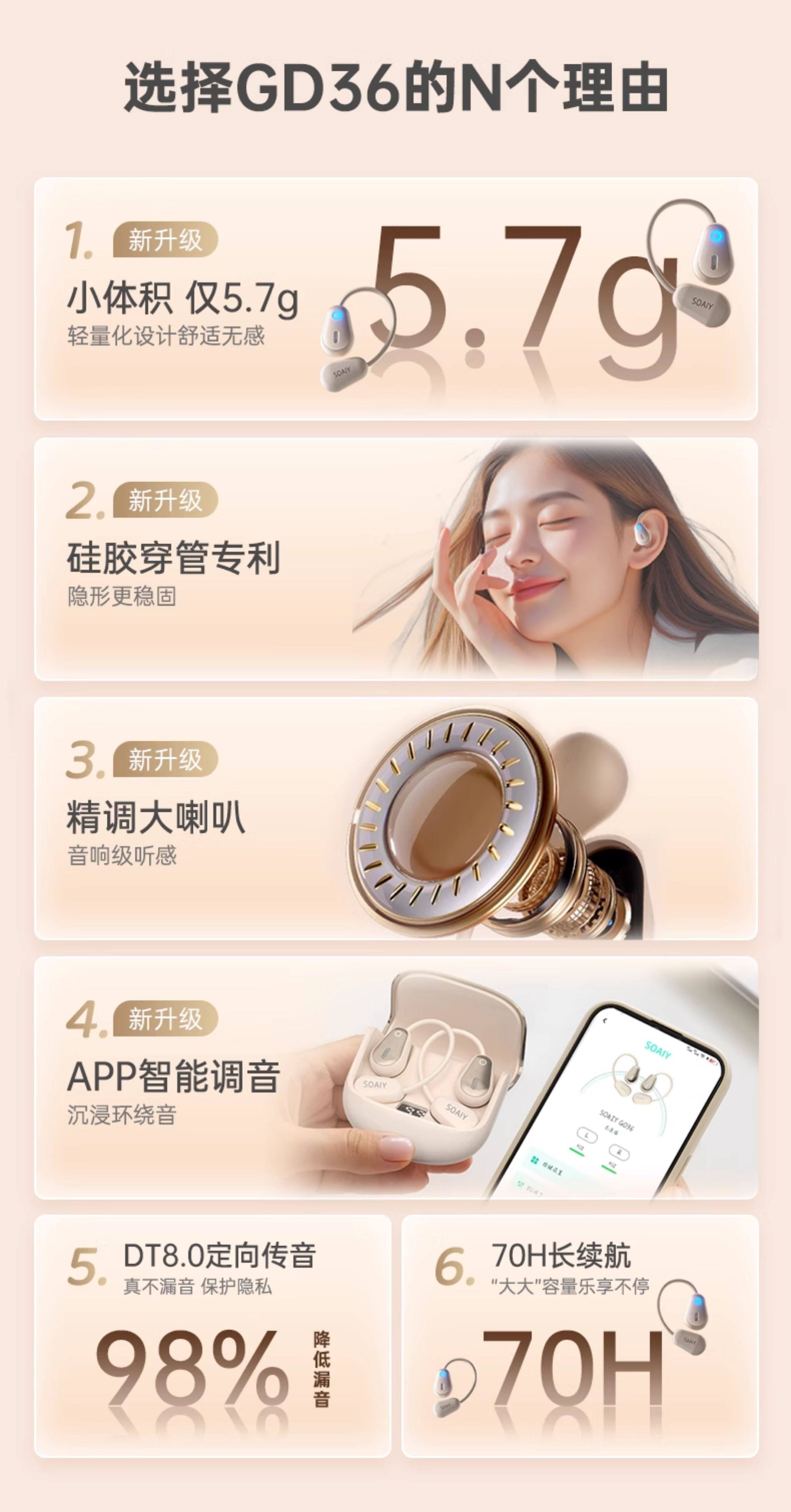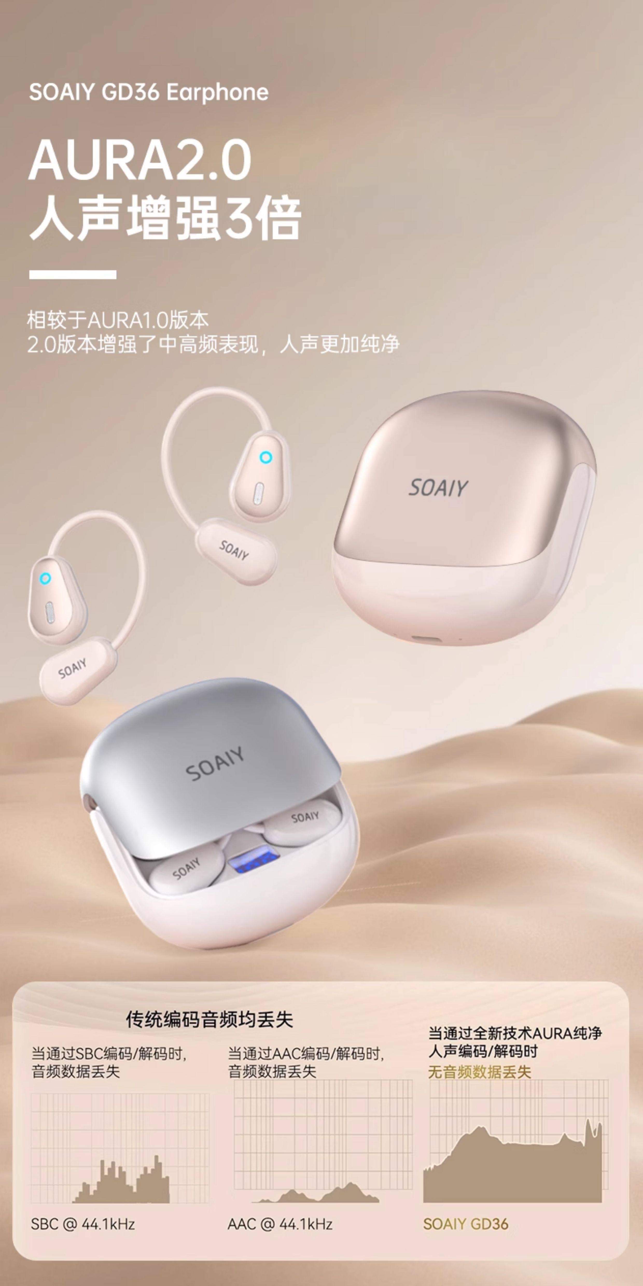 Soaiy Gd36 Bluetooth Earphones, Over-Ear Wireless, Non-In-Ear, Suitable for Running, Fitness, and Sports, Can'T Be Shaken Off
