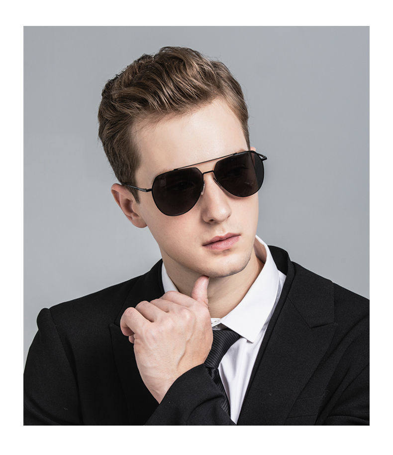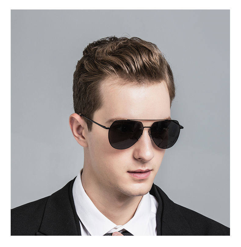Nylon Polarized Lens Sunglasses for Men, Fashionable Prescription Double-Bridge Sunglasses, Trendy Large-Frame Sunglasses, Aviator Glasses