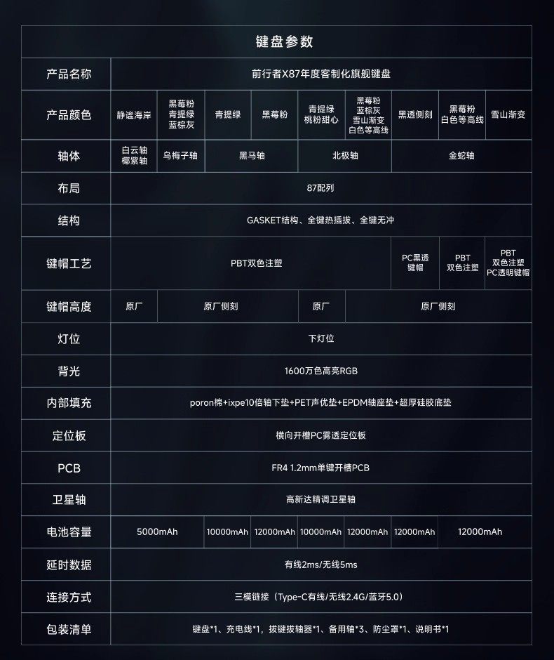 | Color Classification | X87 Arctic Latte Switch[Microparticles-Three Modes]Ultimate Version.,X87 Somersault Cloud Axis[Microparticles-Three Modes]Ultimate Version.,X87 Arctic Latte Switch[Blackberry - Tri-Mode]Ultimate Version.,X87 Somersault Cloud Axis[Blackberry - Tri-Mode]Ultimate Version.,X87 Arctic Latte Switch[Qingti-Three-Mode]Ultimate Version.,X87 Somersault Cloud Axis[Qingti-Three-Mode]Ultimate Version.,X87 Somersault Cloud Axis[Dust-Wired]Ultimate Version.,X87 Somersault Cloud Axis[Blackberry - Wired]Ultimate Version.,X87 Somersault Cloud Axis[Bean Paste Powder-Wired]Ultimate Version.,X87 Somersault Cloud Axis[Lucky Charm - Wired]Ultimate Version.,X87 Somersault Cloud Axis[Qingti-Wired]Ultimate Version.,X87 Somersault Cloud Axis[Misty Peach - Wired]Ultimate Version.,X87 Arctic Latte Switch[Microparticles-Three Modes]Ultimate Version + Wireless Mouse.,X87 Somersault Cloud Axis[Microparticles-Three Modes]Ultimate Version + Wireless Mouse.,X87 Arctic Latte Switch[Blackberry - Tri-Mode]Ultimate Version + Wireless Mouse.,X87 Somersault Cloud Axis[Blackberry - Tri-Mode]Ultimate Version + Wireless Mouse.,X87 Arctic Latte Switch[Qingti-Three-Mode]Ultimate Version + Wireless Mouse.,X87 Somersault Cloud Axis[Qingti-Three-Mode]Ultimate Version + Wireless Mouse.,X87 Somersault Cloud Axis[Dust-Wired]Ultimate Edition + Wired Mouse.,X87 Somersault Cloud Axis[Blackberry - Wired]Ultimate Edition + Wired Mouse.,X87 Somersault Cloud Axis[Bean Paste Powder-Wired]Ultimate Version + Mouse.,X87 Somersault Cloud Axis[Lucky Charm - Wired]Ultimate Version + Mouse.,X87 Somersault Cloud Axis[Qingti-Wired]Ultimate Edition + Wired Mouse.,X87 Somersault Cloud Axis[Misty Peach - Wired]Ultimate Edition + Wired Mouse. |