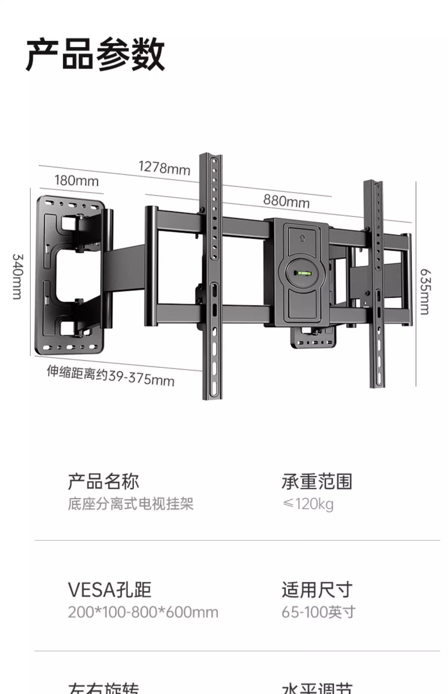 | Color Classification | [32-65inch]Millimeter Precision,Worry-Free Adaptation.,Upgrade Horizontal Board[32-75inch]Brand New Optimization,Special for Large Screen.,Upgrade Horizontal Board[65-100inch]Fine Control,Enjoy Watching Movies.,Upgrade Horizontal Board[75-120inch]Millimeter Fine Adjustment,Responsible for the Giant Screen. |