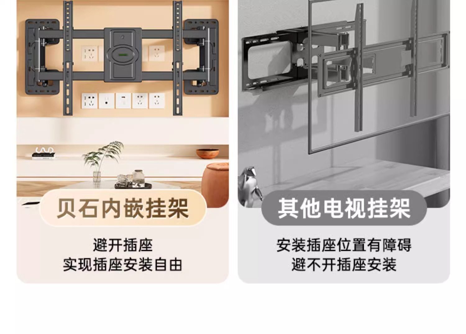 Ultra-Thin Embedded Tv Retractable Mount 85inch Universal Foldable Wall Mount Detachable Bracket Anti-Obstruction