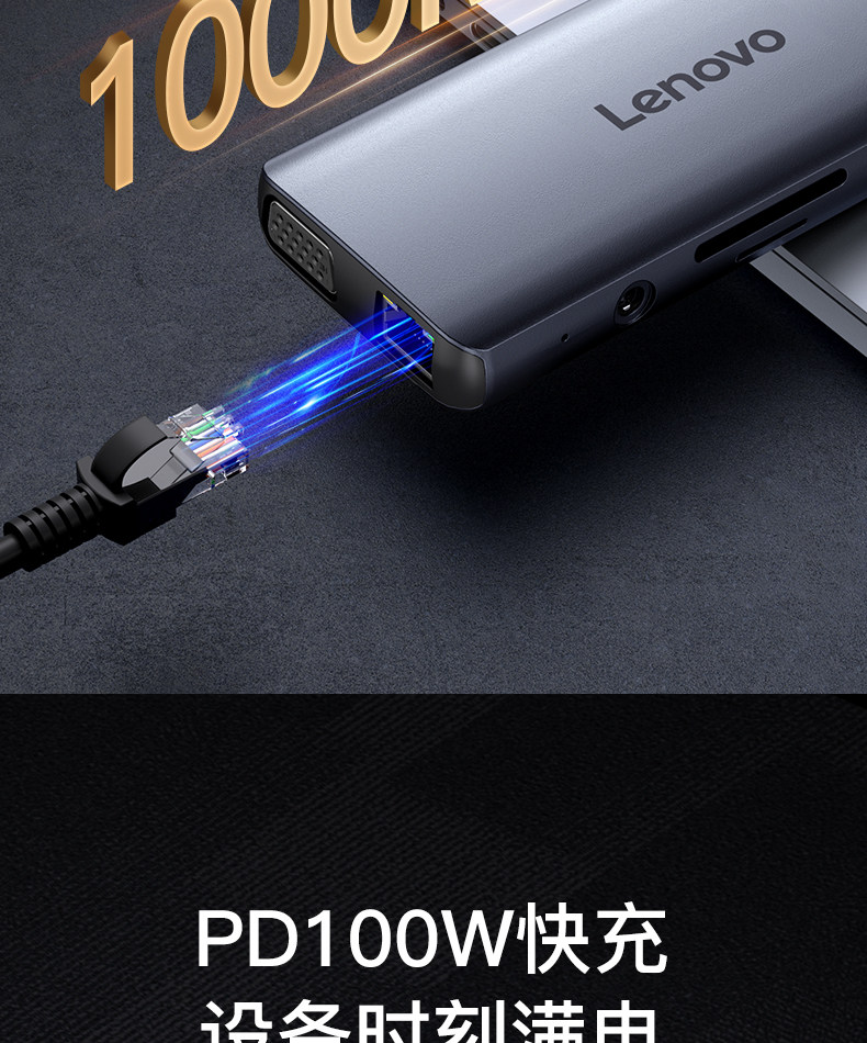 Lenovo Docking Station Type-C Expansion USB 3.0 Hub HDMI Screen Projection Adapter Multi-Function Network Cable Interface Converter Small Xiaomi Huawei Laptop iPad Tablet Phone Hub