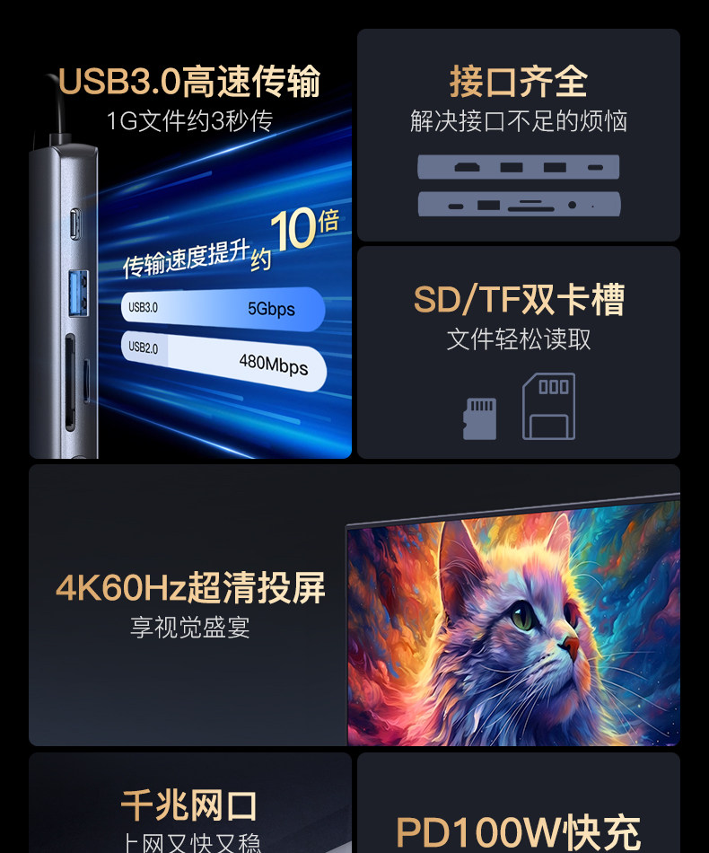 | Color Classification | [3 in 1]HDMI+USB3.0+PD,[4 in 1]USB3.0×4+Type-C Power Supply Port,[5 in 1]HDMI30Hz+USB2.0×2+USB3.0×1+PD,[5 in 1]HDMI30Hz+USB3.0×2+Type-C3.0×1+PD,[5 in 1]HDMI60Hz+USB3.0×2+Type-C3.0×1+PD,[6 in 1]HDMI60Hz+USB3.0X3+Gigabit Ethernet Port+Pd,[7 in 1]HDMI60Hz+USB3.0x2+Type-C3.0×1+Pd+Card Reading,[8 in 1]HDMI30Hz+USB3.0X3+Gigabit Ethernet Port+Pd+Card Reading,[9 in 1]HDMI30Hz+USB3.0X3+Gigabit Ethernet Port+Vga+Pd+Card Reading,[11 in 1]HDMI60Hz+USB2.0x2+USB3.0×1+Type-C3.0×1+Gigabit Ethernet Port+Vga+Pd+Card Reading+Audio Port,[5 in 1]HDMI60Hz+USB2.0×2+USB3.0×1+PD |