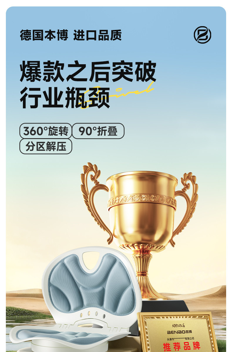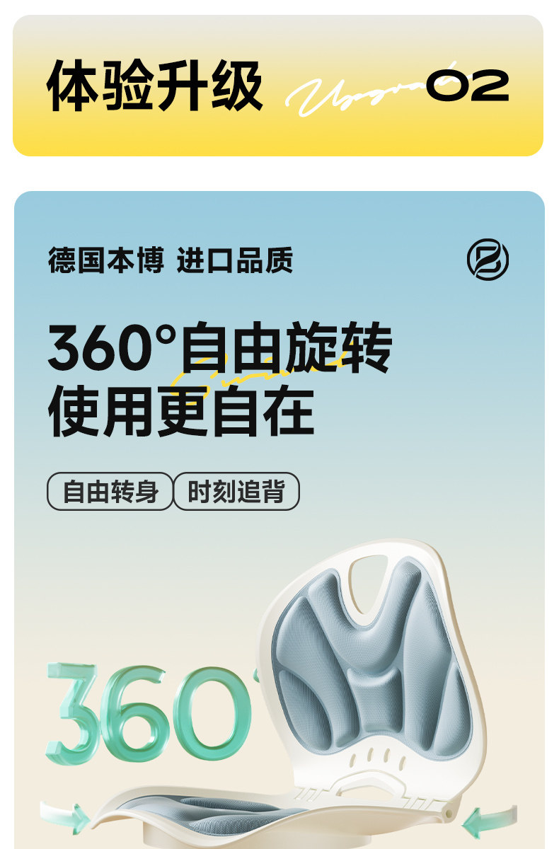 German Benbo Ergonomic Chair Lumbar Support Cushion Office Long Sitting Cushion 360 ° Rotating Folding Chair