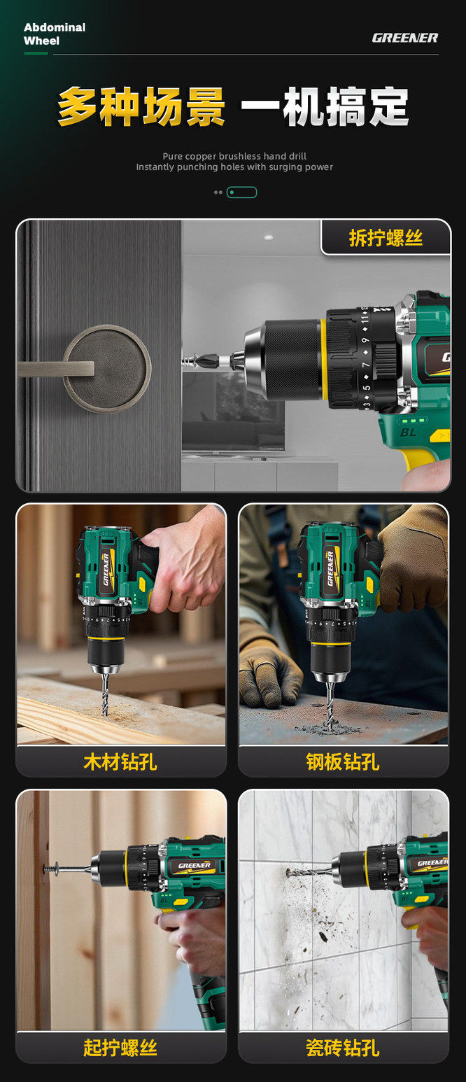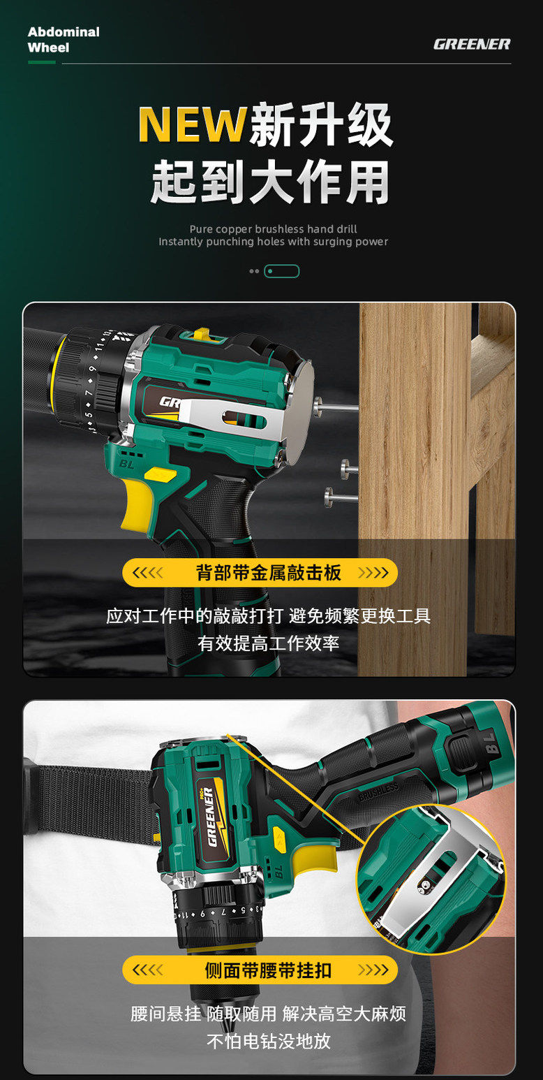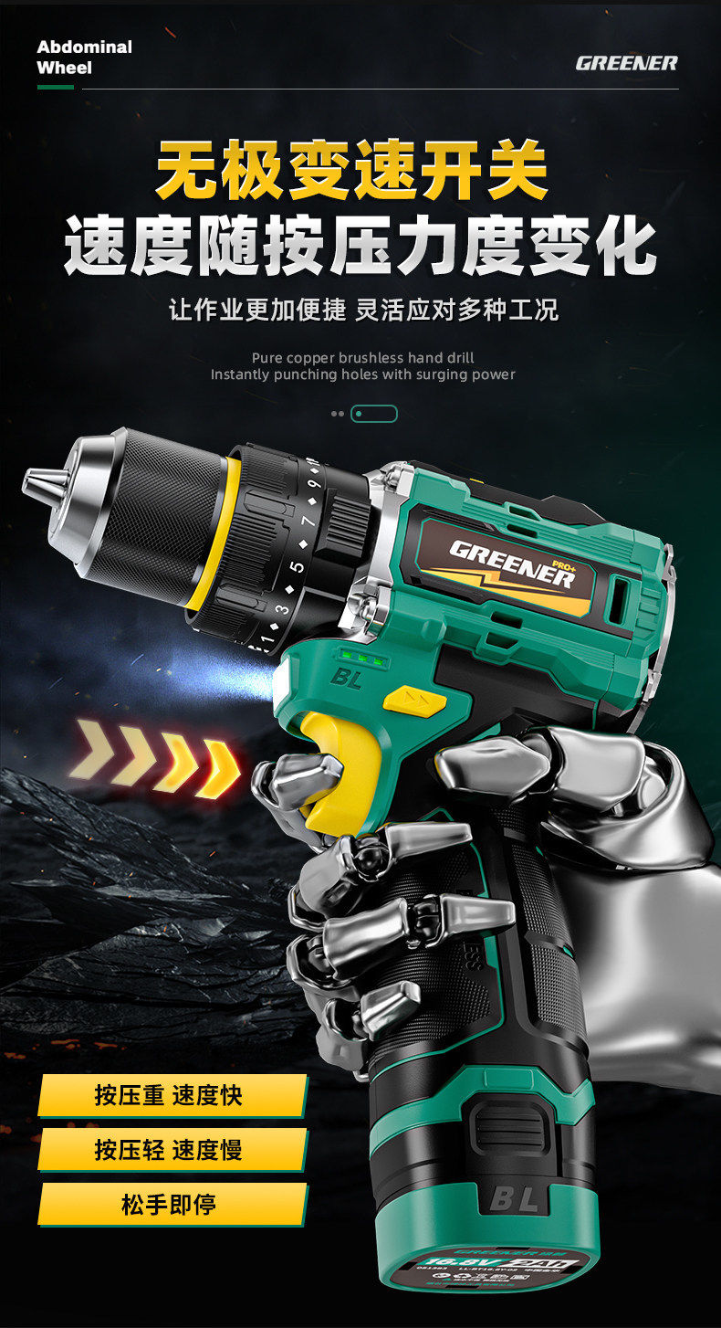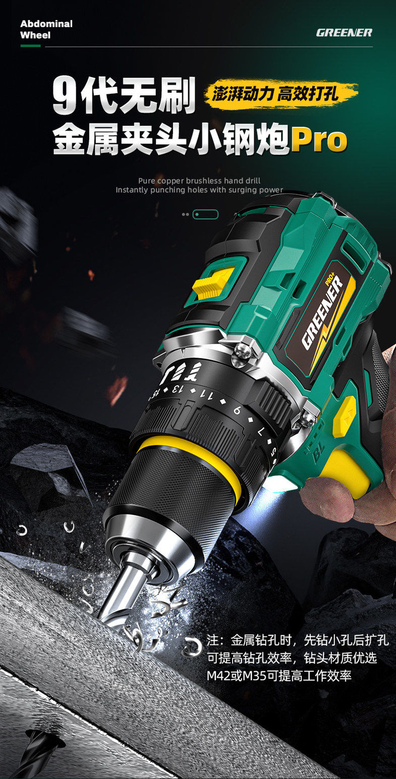 Green Forest Big Gun Electric Drill Brushless Impact Hand Drill for Wall Drilling Household Small Lithium Electric Tool Little Big Gun Pro