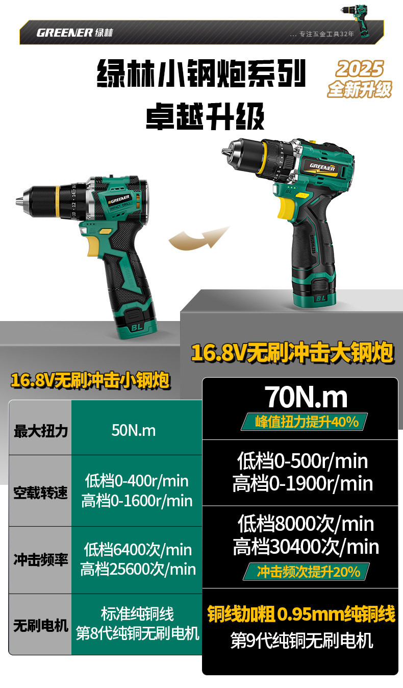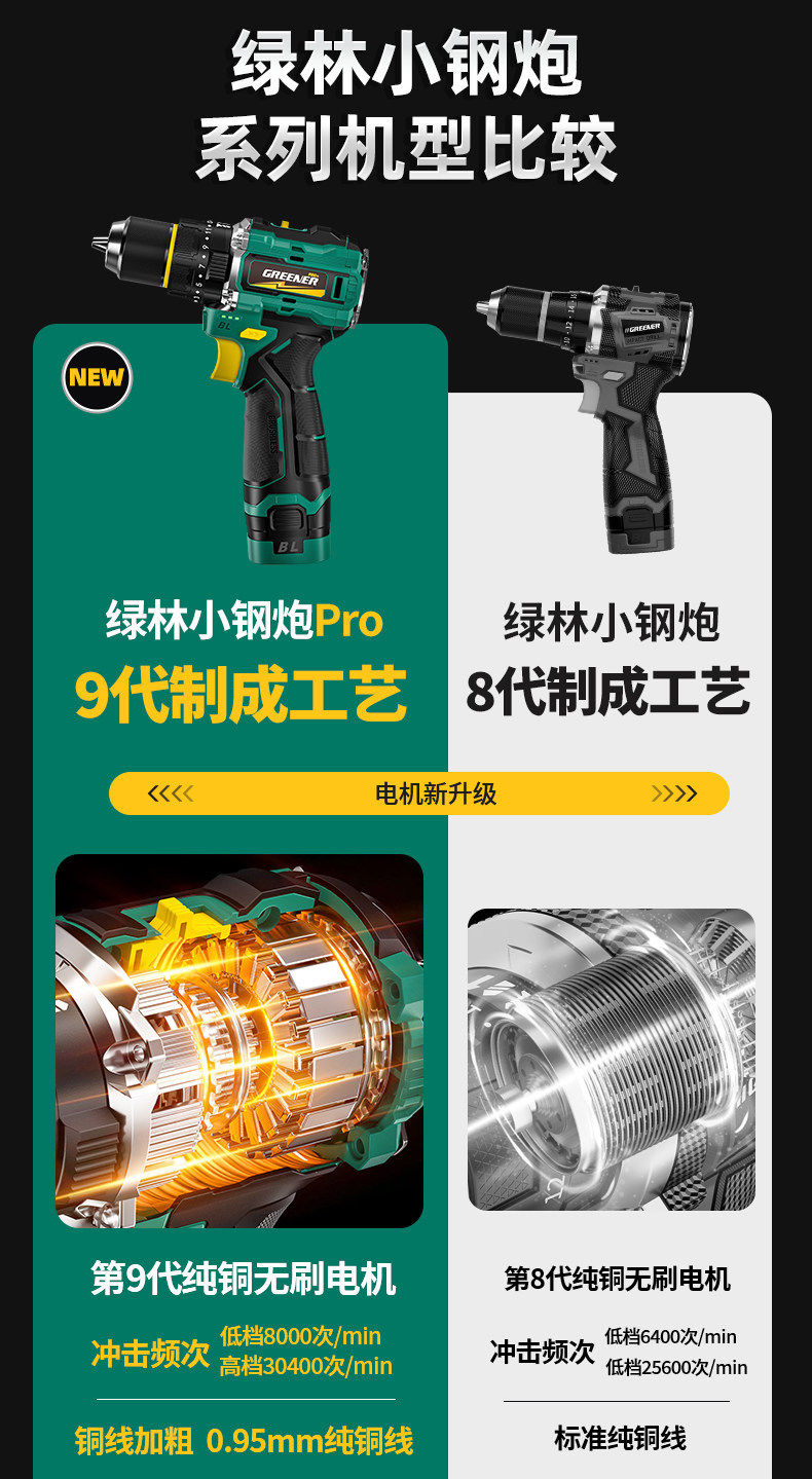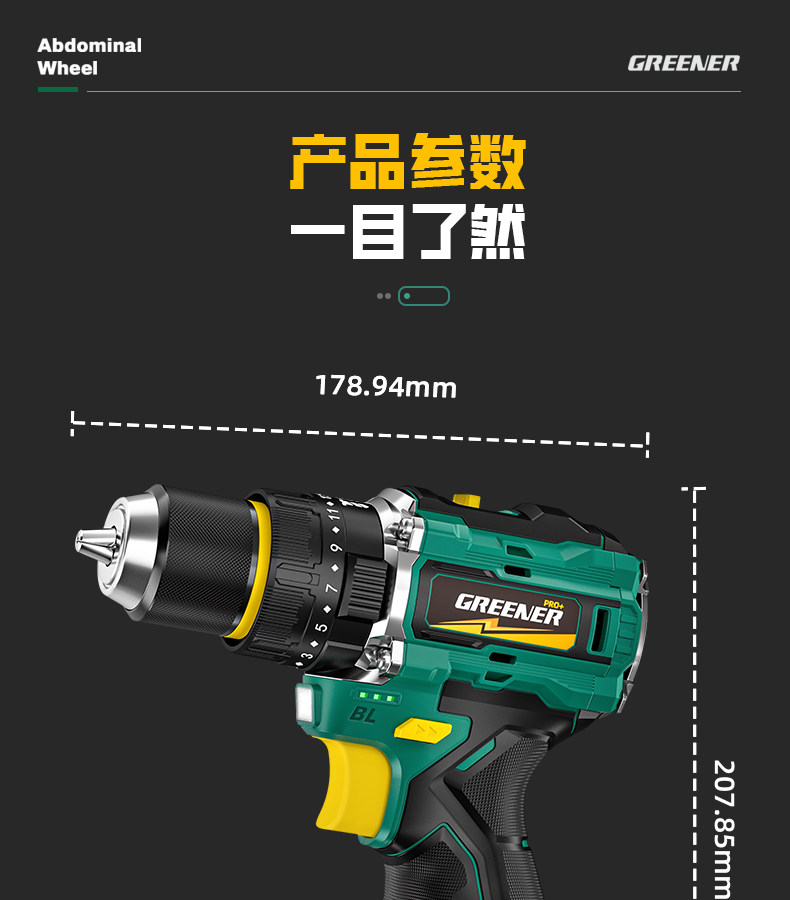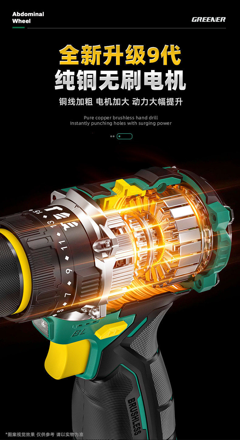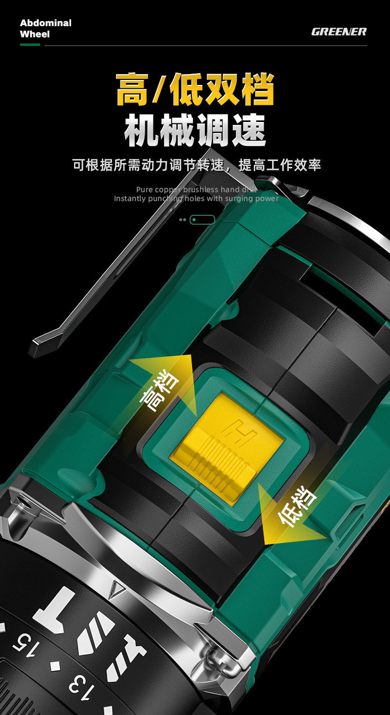 Green Forest Big Gun Electric Drill Brushless Impact Hand Drill for Wall Drilling Household Small Lithium Electric Tool Little Big Gun Pro