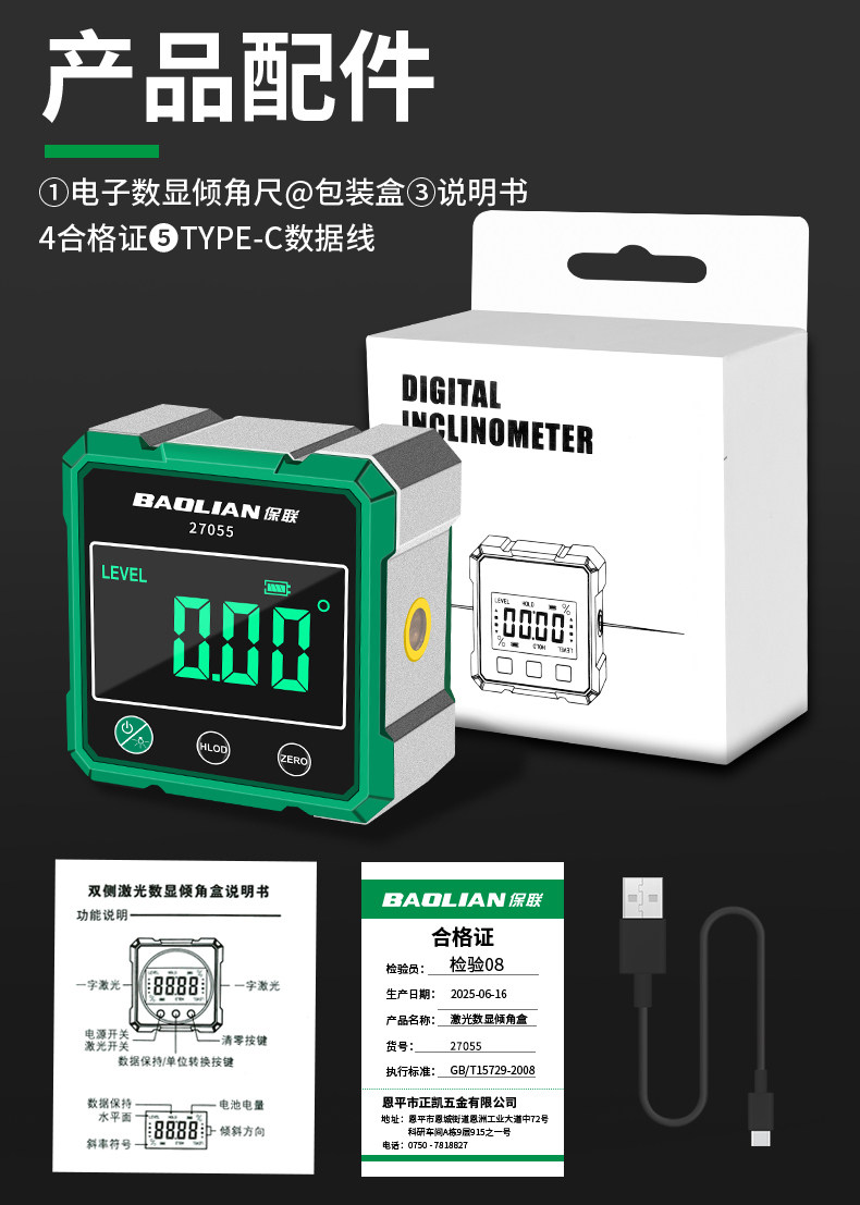 Baolian Inclinometer Level Balance Measurement Digital Level Magnetic Laser Slope Angle Ruler Tool