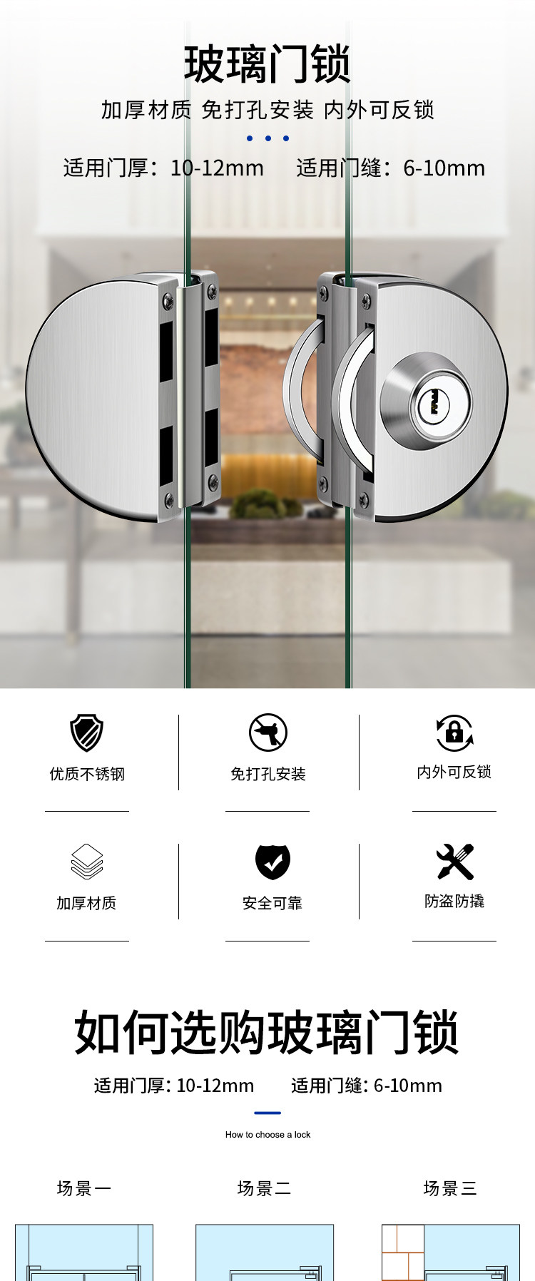 | Color Classification | ✅Only Selling High-Standard Lock Cylinders❤All Damages or Malfunctions Will Be Fully Compensated✅,Double Glass Door❤External Lock and Internal Twist,Double Glass Door❤External Lock and Internal Lock,Double Glass Door❤No External Lock Inside,Single Glass Door⭐External Lock and Internal Twist,Single Glass Door⭐External Lock and Internal Lock,Single Glass Door⭐No External Lock Inside,Floor Lock (Knob Type),Floor Lock (Key Type) |