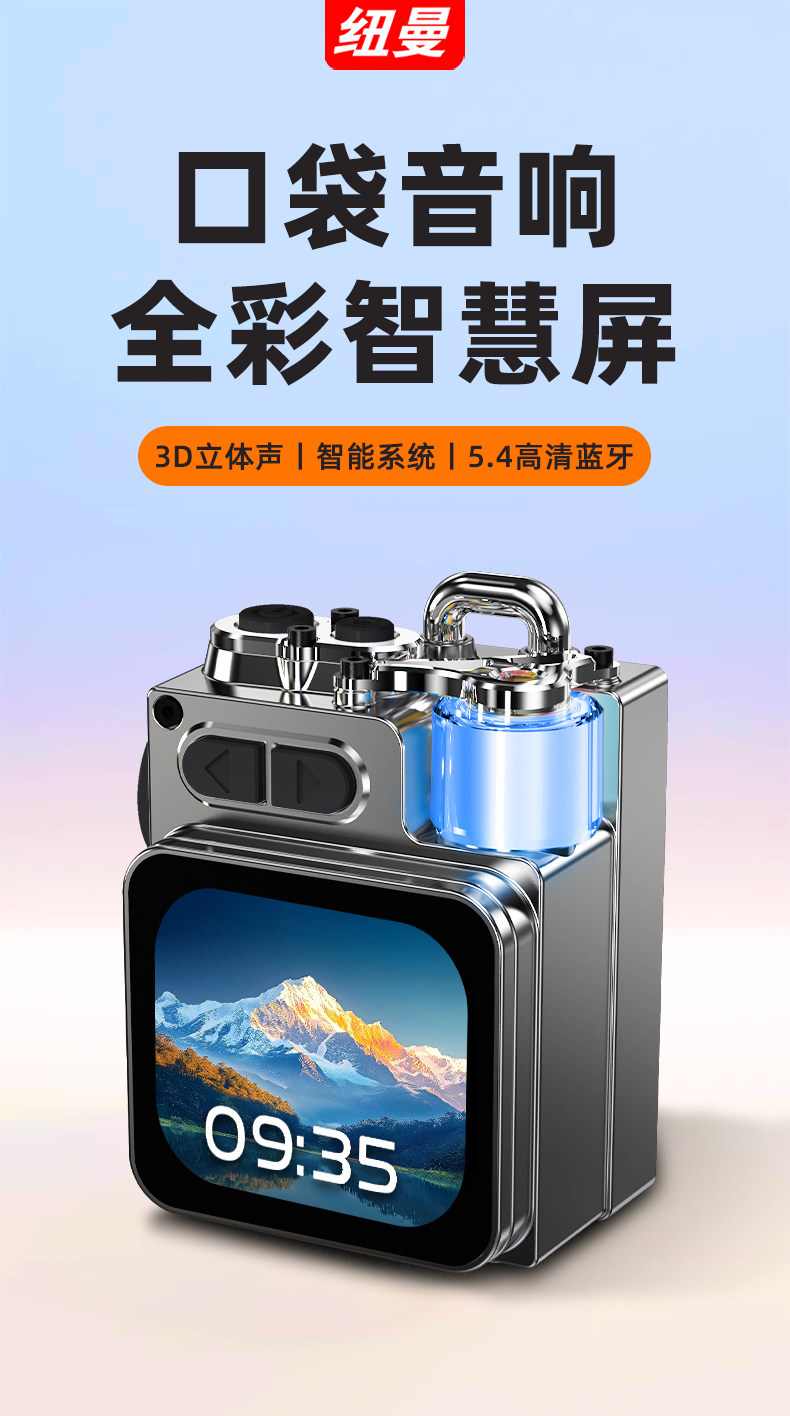 Newman Mini Portable Audio Portable Desktop Wireless Bluetooth Speaker Small with Display Screen Gift for Boys