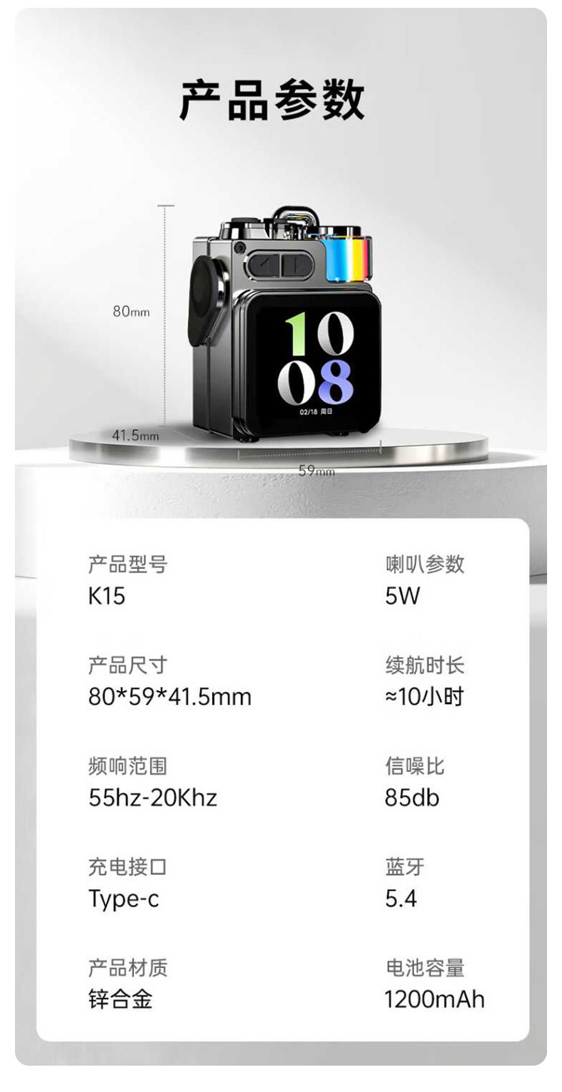| Color Classification | ãHd Smart DisplayãMultiple Touchscreen Functions / DIY Wallpaper / Bluetooth 5.3 / Rgb Lighting Effects / Zinc Alloy Casing / Keychain / Desk Accessory / Trendy Toy,ãOutdoor Portable Speakerã5.3 Bluetooth / Rgb Lighting Effects / Zinc Alloy Housing / Charm Accessory / Desk Companion / Trendy Toy,[New Products] Contact Customer Service to Get Discounts,ãAuthenticity GuaranteedãWorry-Free After-Sales Service,k15. |