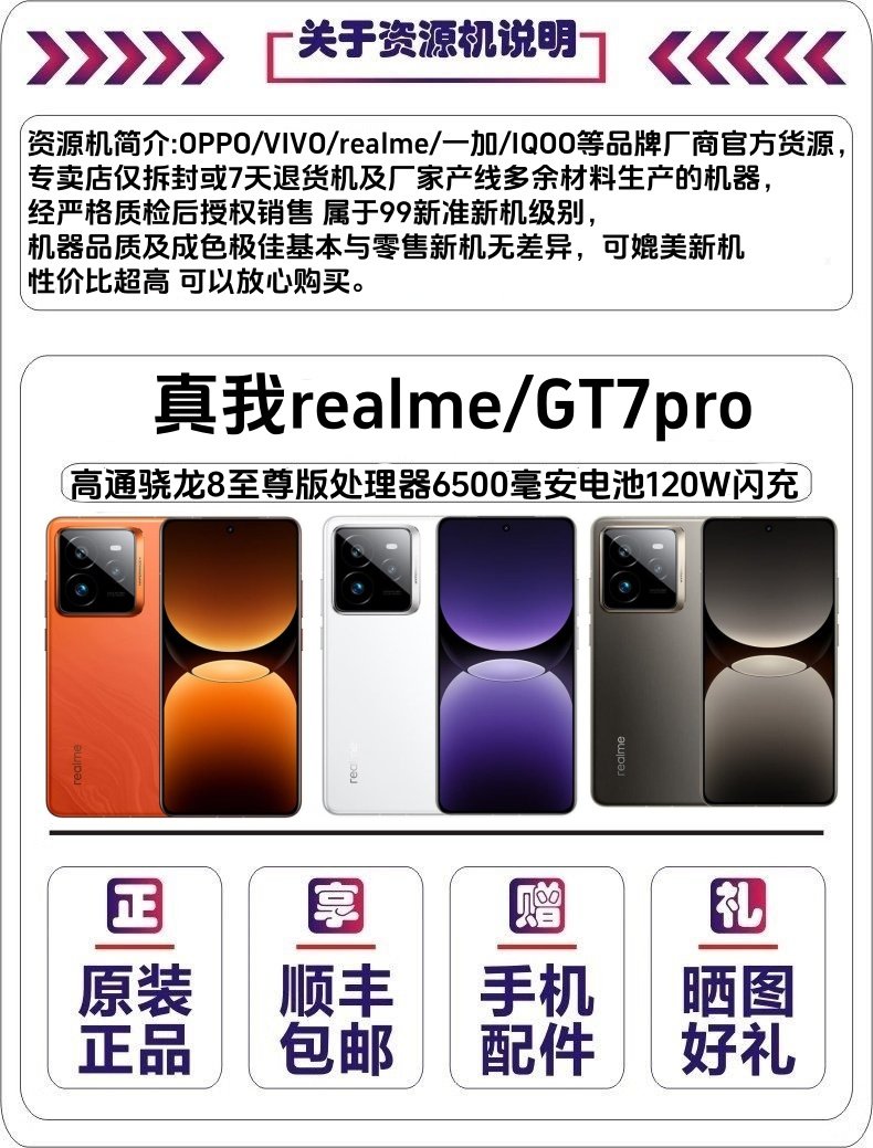 Realme/True Me Gt7 Pro Snapdragon 8 Extreme Edition Android 5g Smartphone Gt7Pro Genuine Product