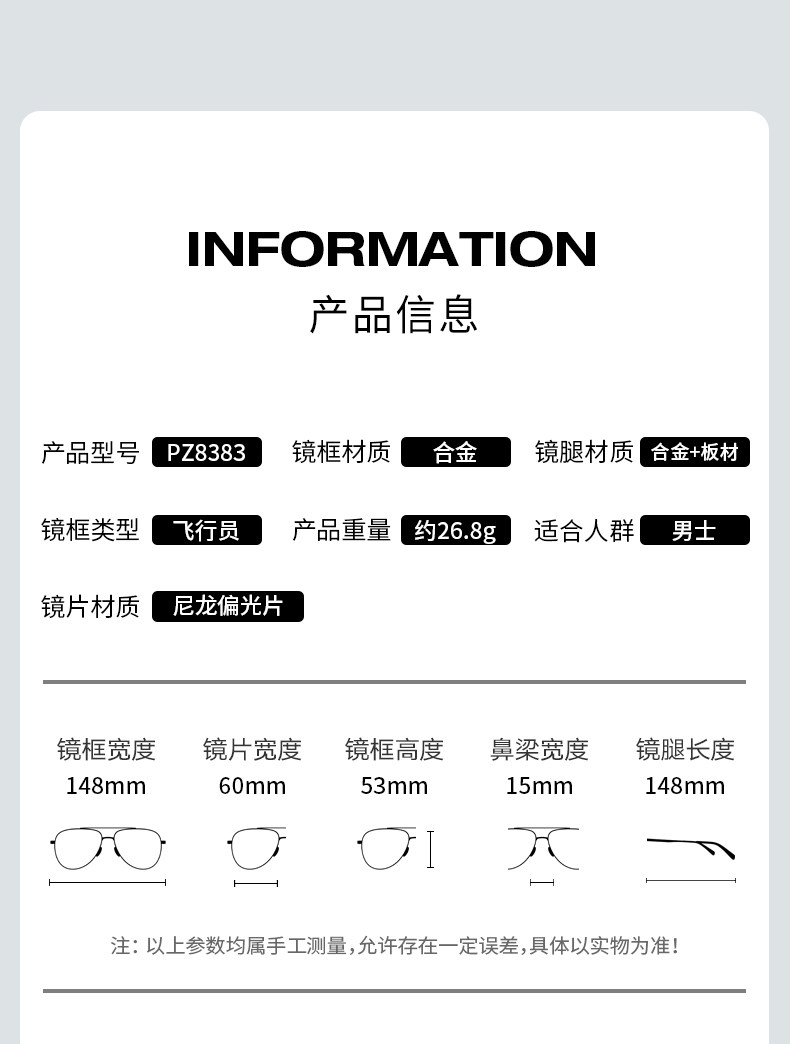 | Color Classification | Matt Black Frame Black and Gray Film,Silver Frame Gray Blue Film,Gold Frame Dark Green Film |