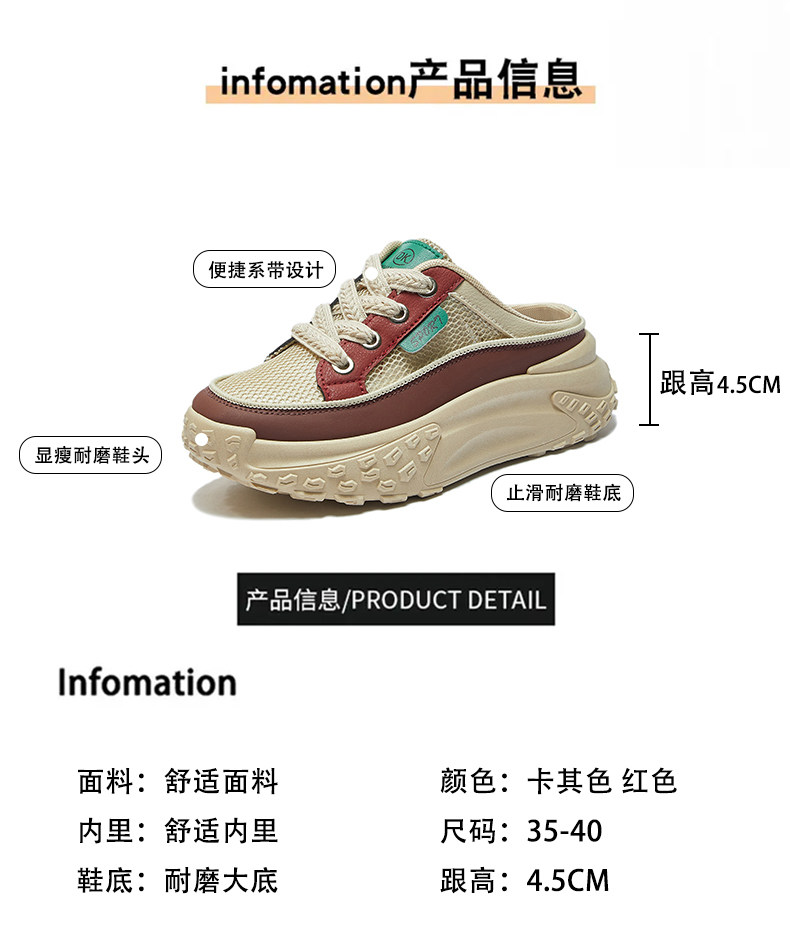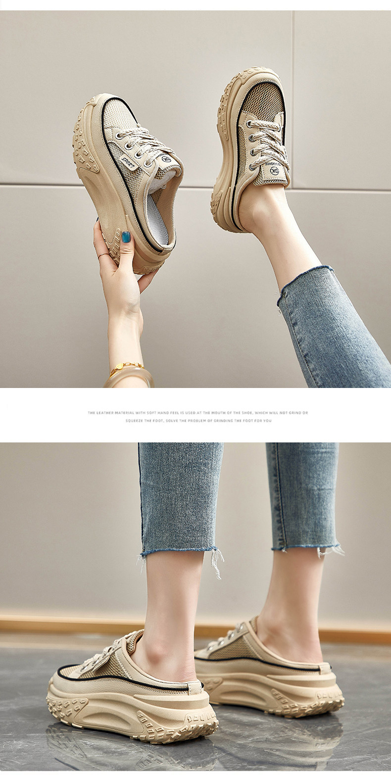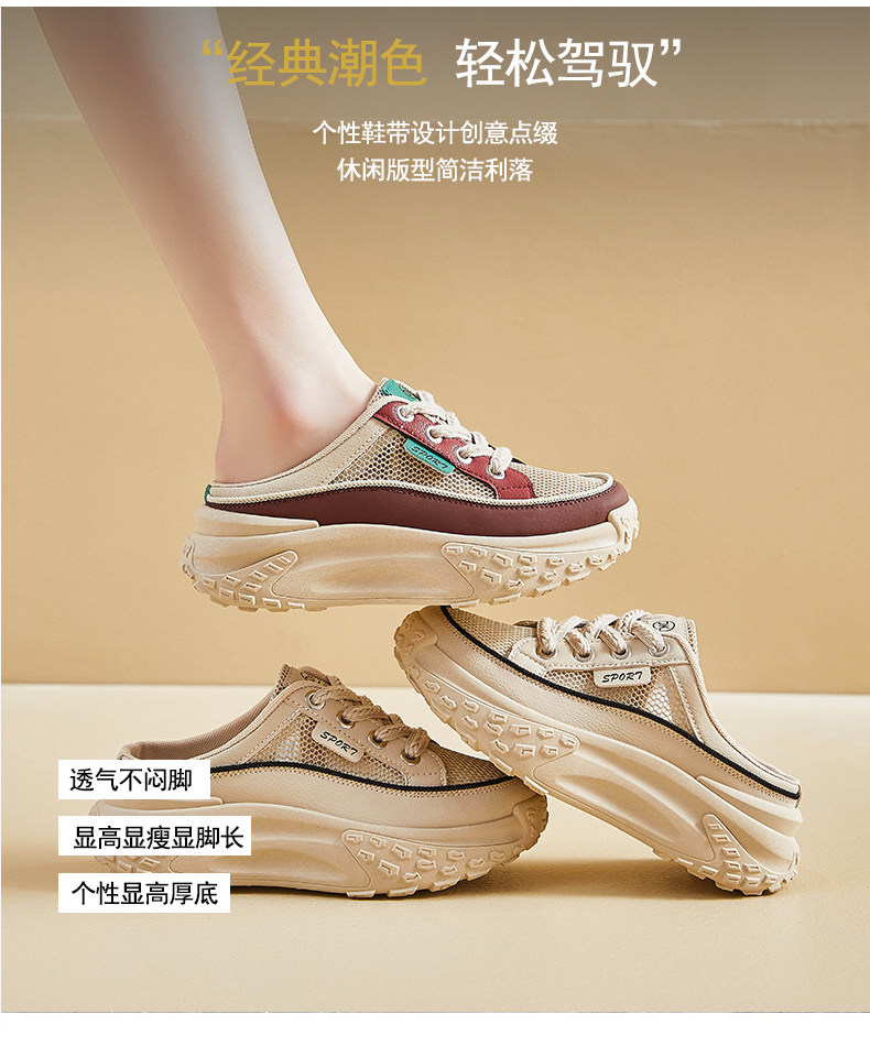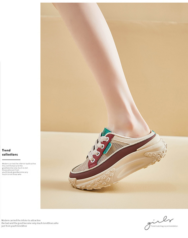 2025 Summer New Style Closed-Toe Half Slippers for Women, Thick-Soled Casual Mesh Breathable Outdoor Wear soft sole Women's Sandals