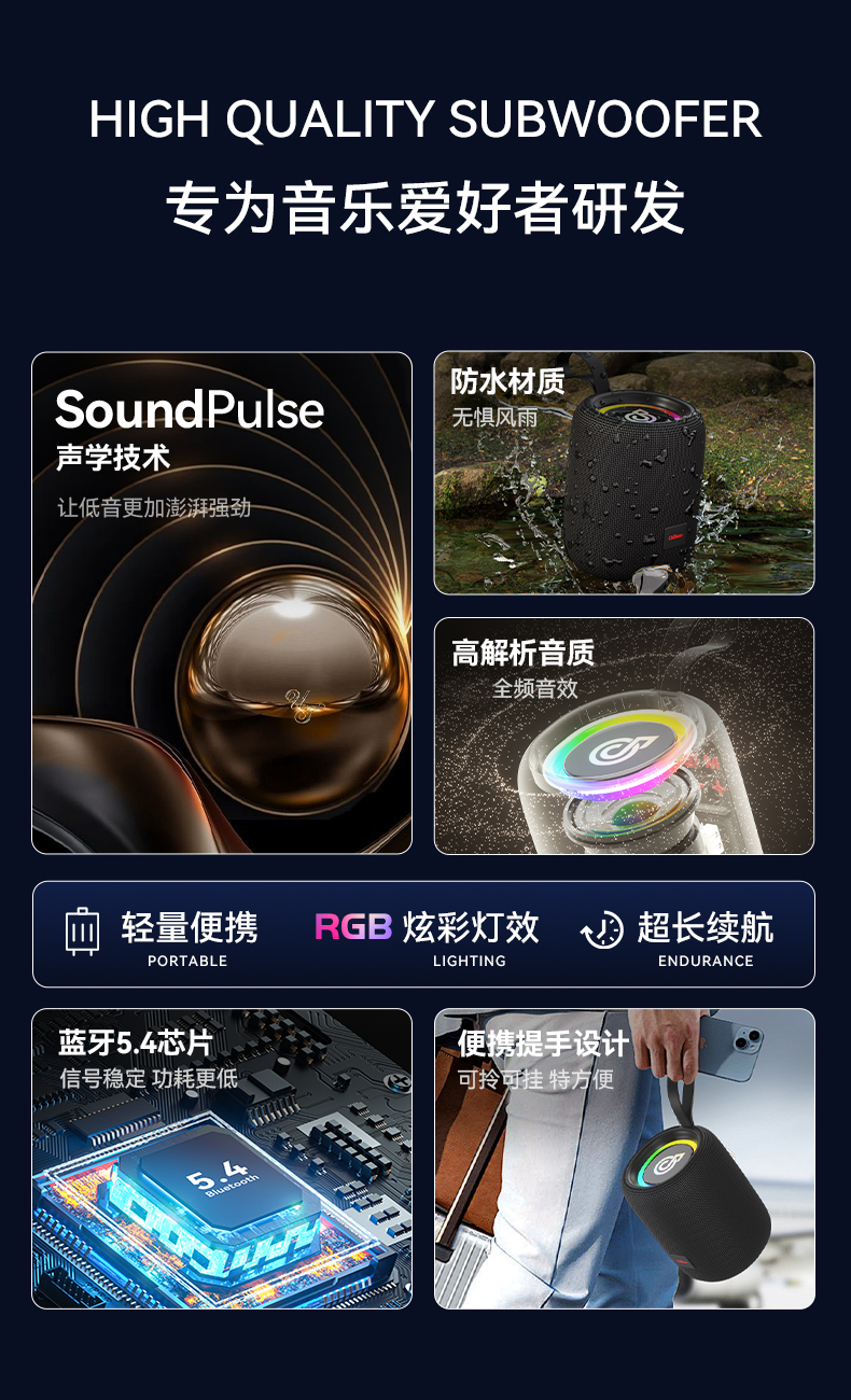 | Color Classification | Upgrade to the Premium Version[60W Power + Dual Speakers and Dual Diaphragms + Enhanced Battery Life],Ultimate Edition[40W Power + Dolby Surround Sound + Long Battery Life],Medium Version[20W Power + Dustproof and Waterproof + Shocking Bass],Standard Version[10W Power + Clear Sound Quality + Average Battery Life] |