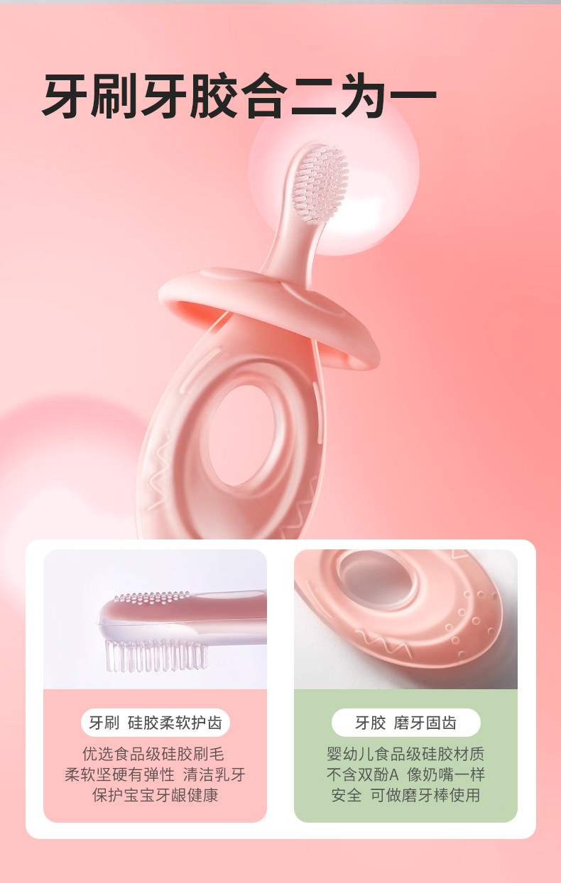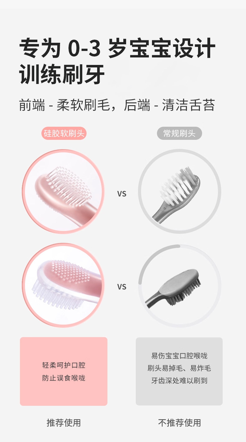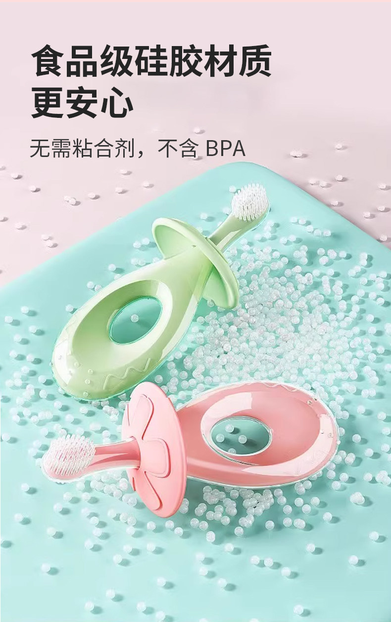 Baby Training Toothbrush with Silicone Soft Bristles for 0-1-2-3 Year Old Infants, Baby Teeth Oral Cleaning, Teething Learning Training Brush
