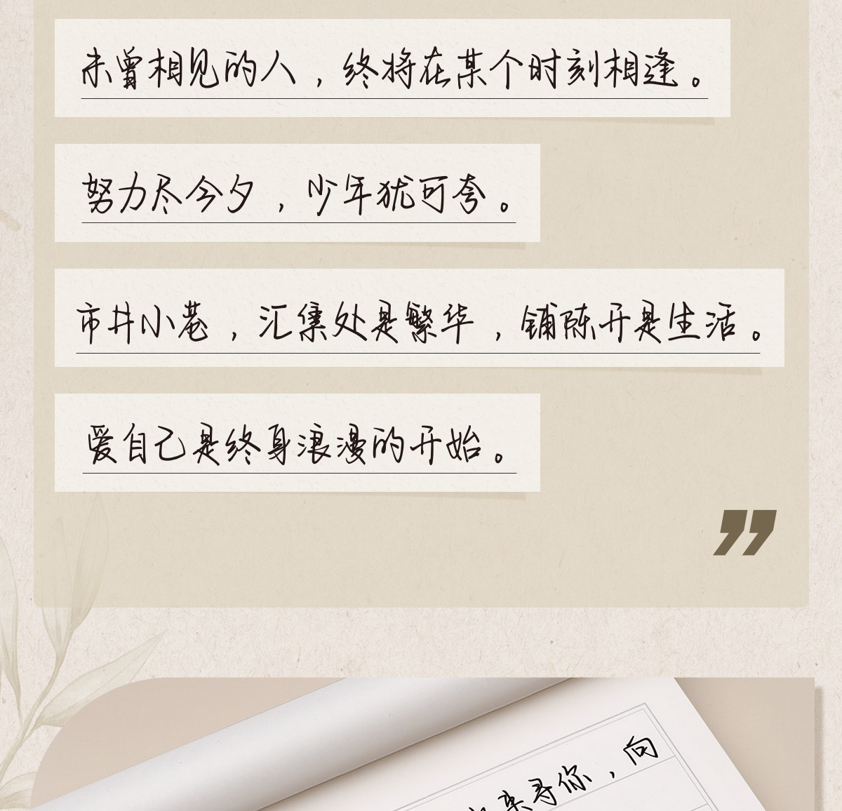 | Color Classification | Beautiful Essays (Free 1 Pen + 6 Ink Sacs),Healing Quotes (Free 1 Pen + 6 Ink Cartridges),[2 Books] Beautiful Essays + Healing Quotes (Free 1 Pen + 6 Ink Bags),[2 Books] Beautiful Essays + 7,000 Commonly Used Words (1 Free Pen + 6 Ink Sacs),[2 Books] Healing Quotes + 7,000 Commonly Used Words (Free 1 Pen + 6 Ink Bags),[3 Books] 7,000 Commonly Used Words + Beautiful Essays + Healing Quotes (Free 1 Pen + 6 Ink Bags),[Complete Set of 7 Books in Regular Script] 5 Basic Books + Beautiful Essays + Healing Quotes (Free 1 Pen + 6 Ink Bags) |
