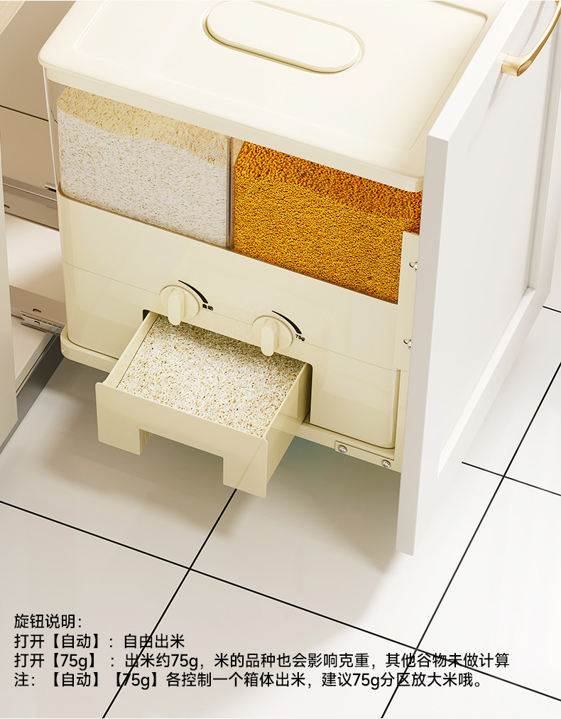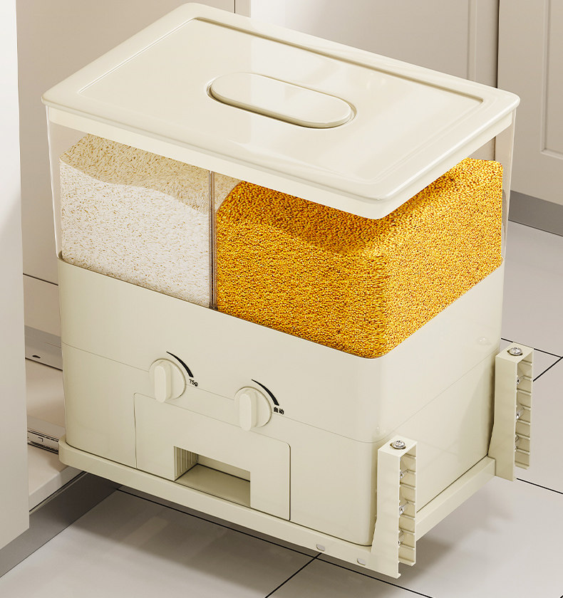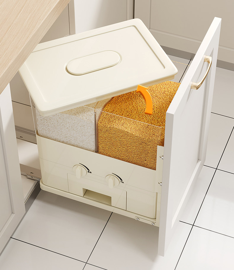 Dimini Rice Box Pull Basket Kitchen Cabinet Pull-Out Embedded Household Insect-Proof and Moisture-Proof Sealed Automatic Rice Bucket