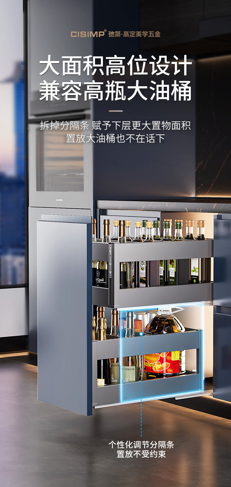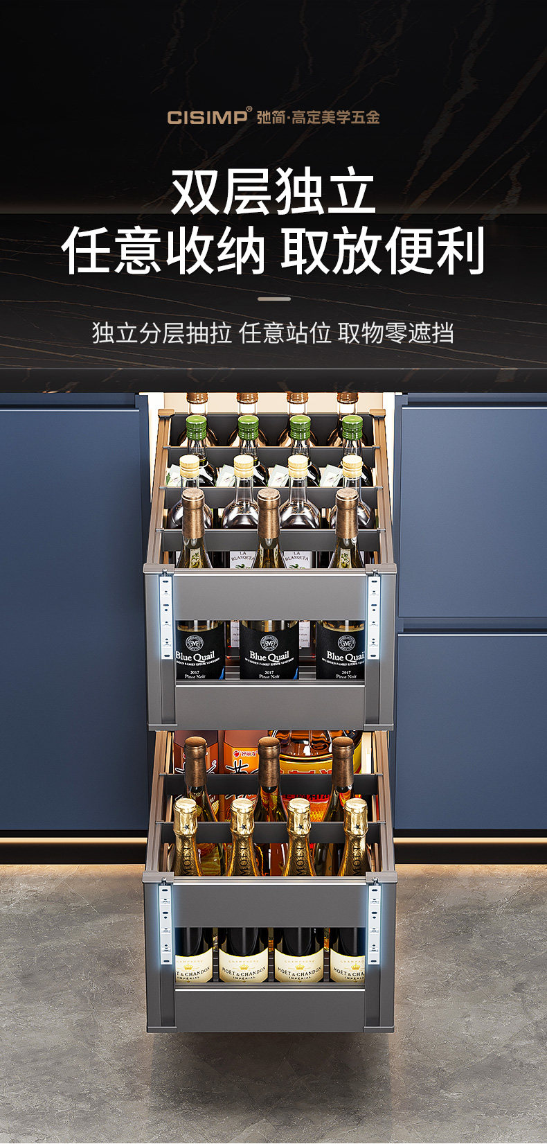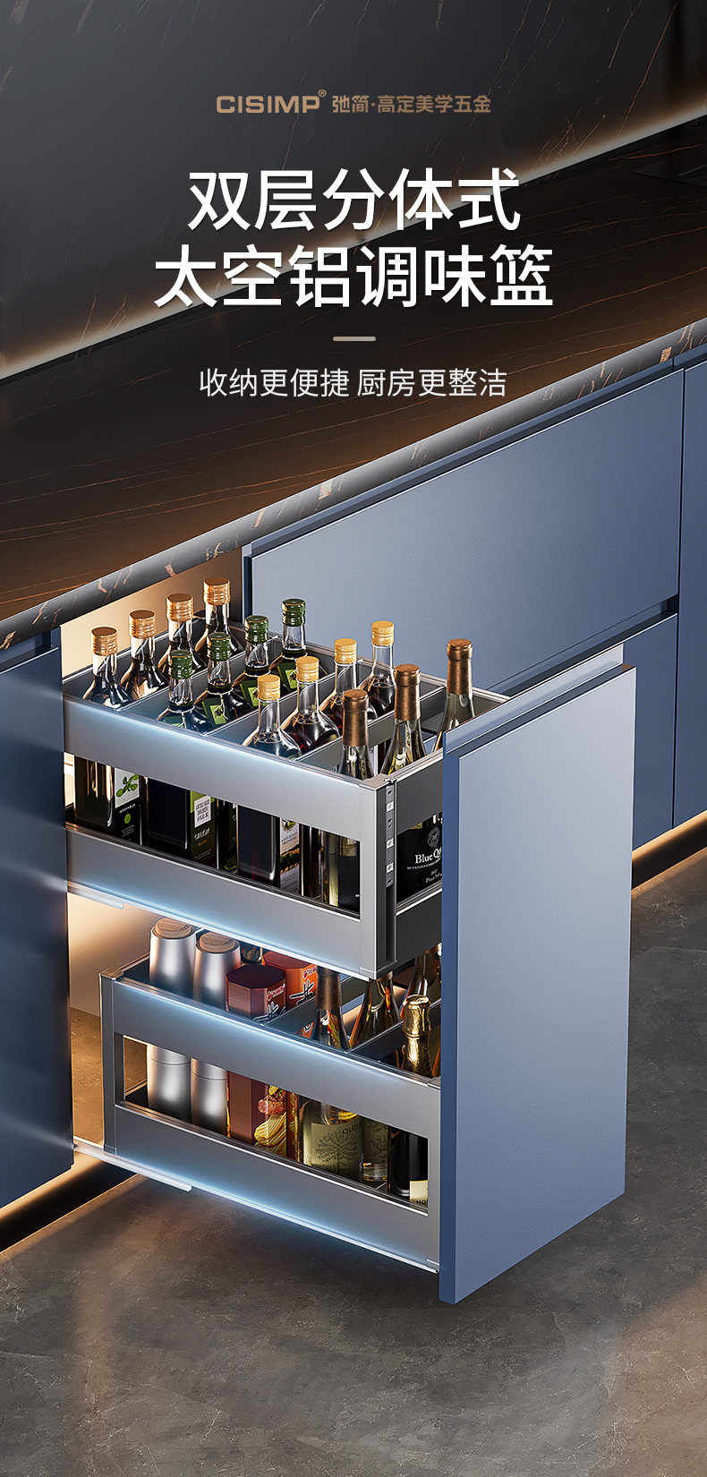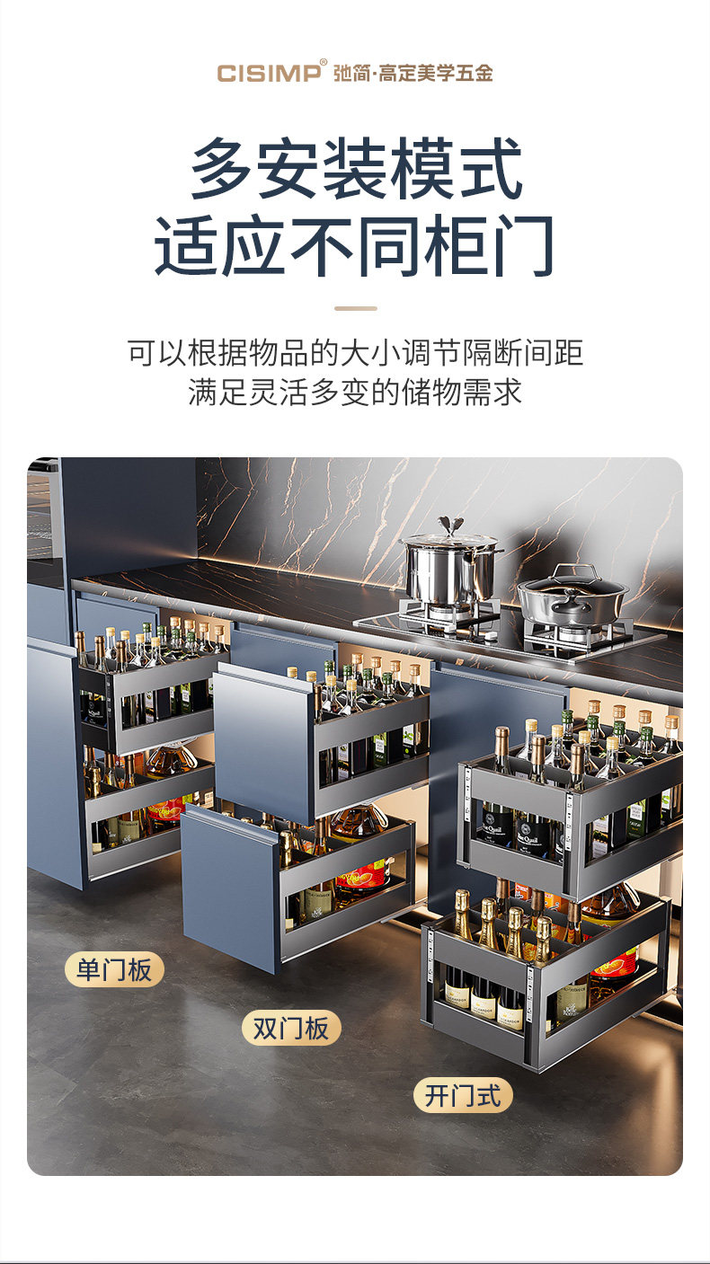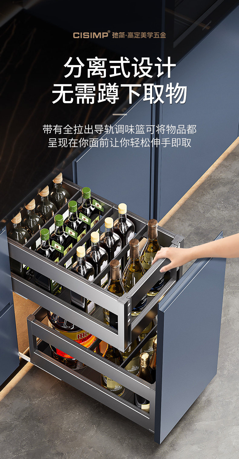 2025 New Model Seasoning Basket 304 Stainless Steel Kitchen Cabinet Spice Basket Double-Layer with Buffer Damping