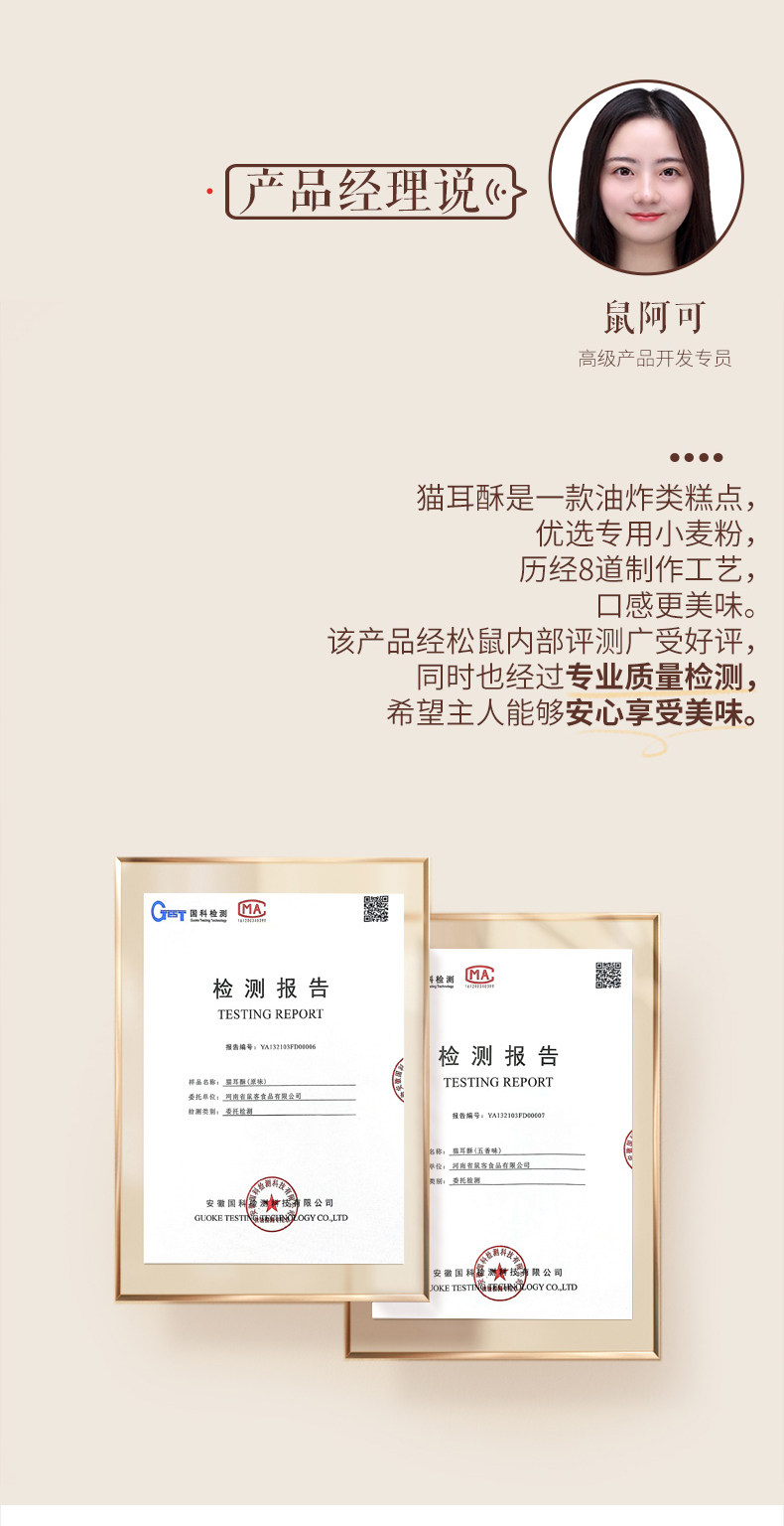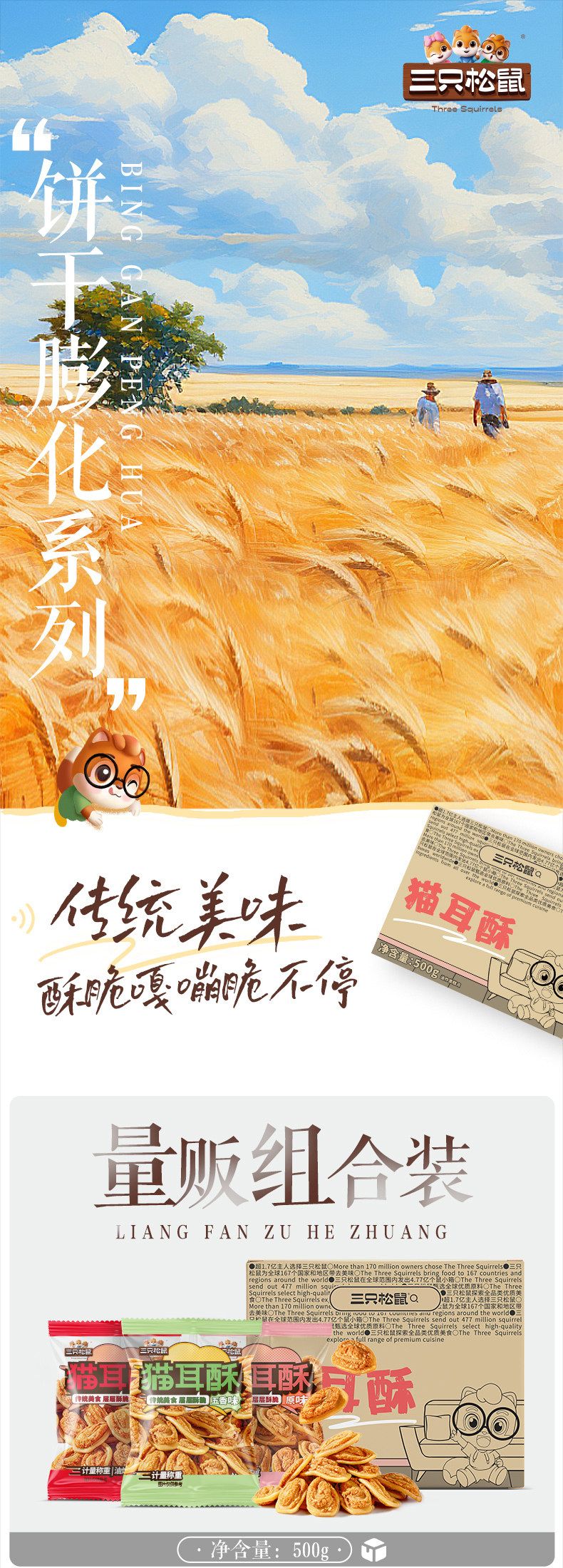 [12.8 Store Flash Sale] Three Squirrels Cat Ears 500g Mixed Flavors Childhood Crispy Nostalgic Snack