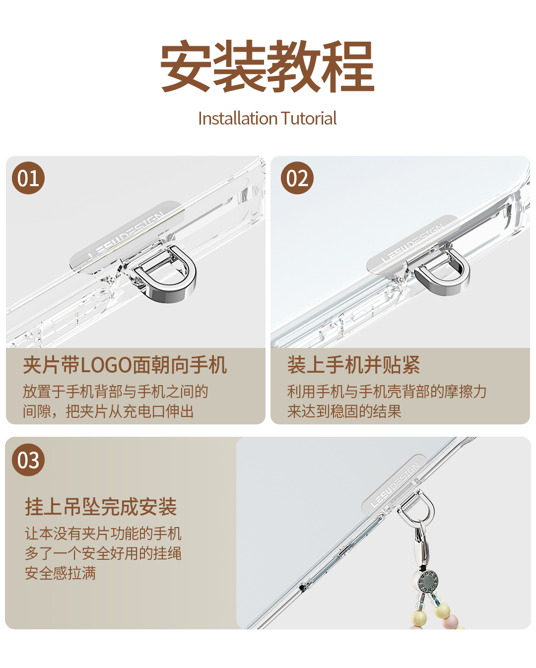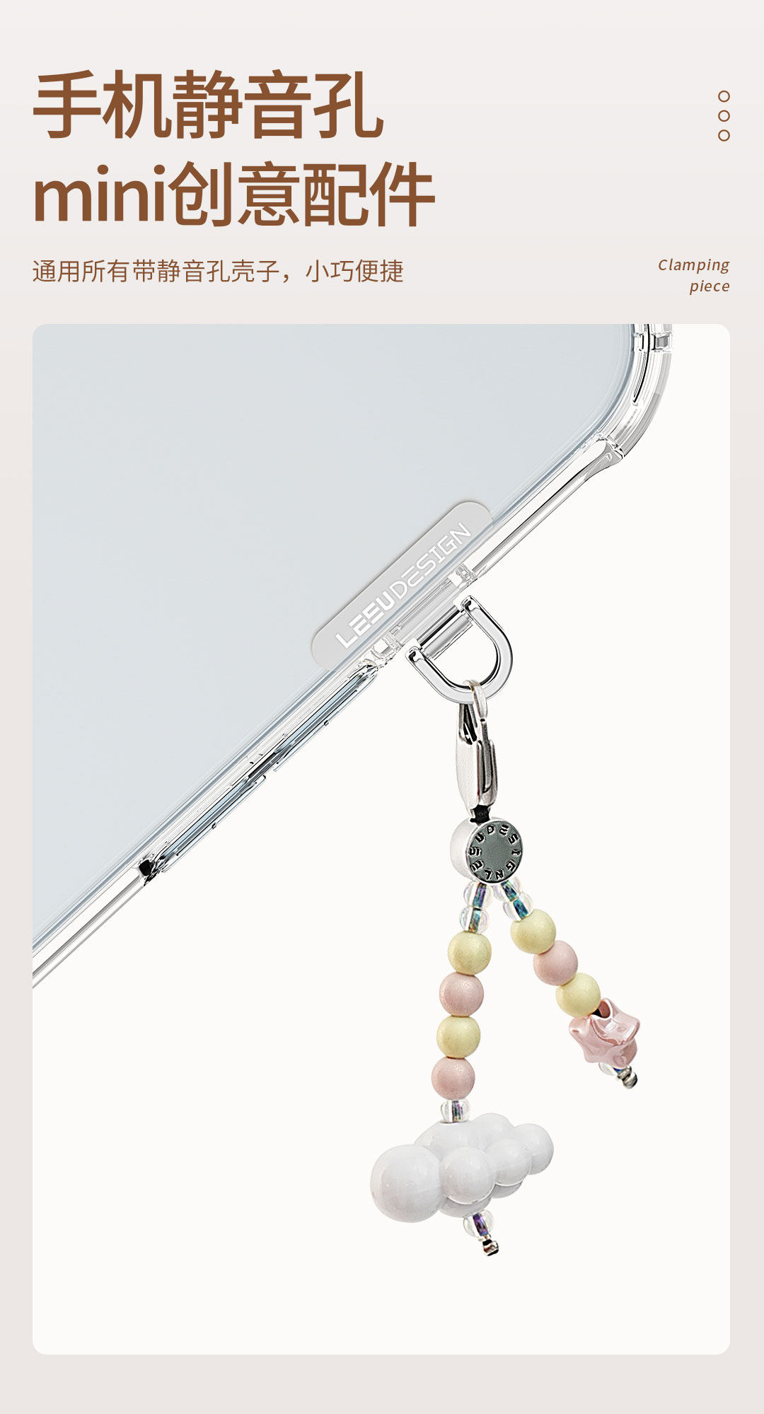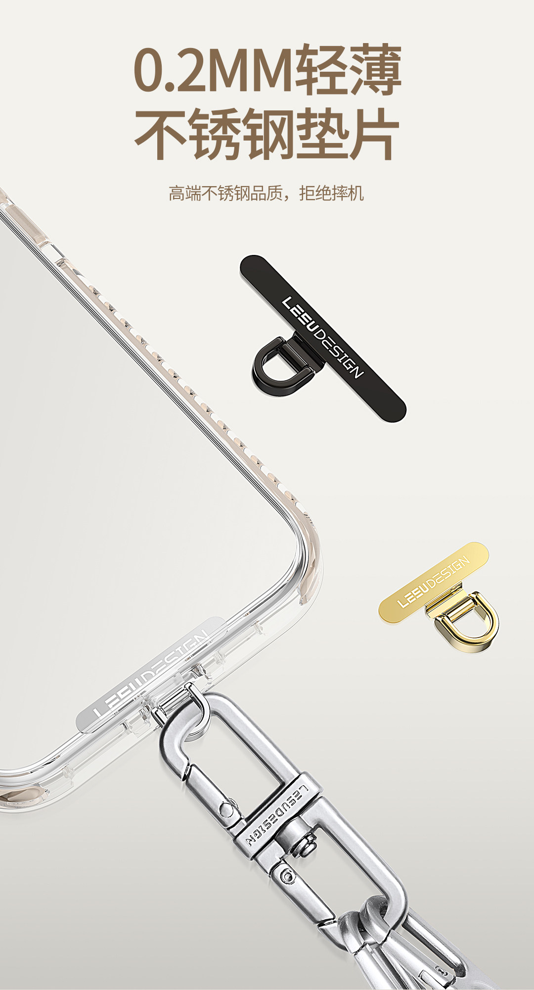Leeudesign Mini Phone Spacer 0.2mm Ultra-Thin Metal Silent Hole Charging Port Universal Phone Lanyard Clip Sturdy Phone Chain Side Accessory Phone Case Connector