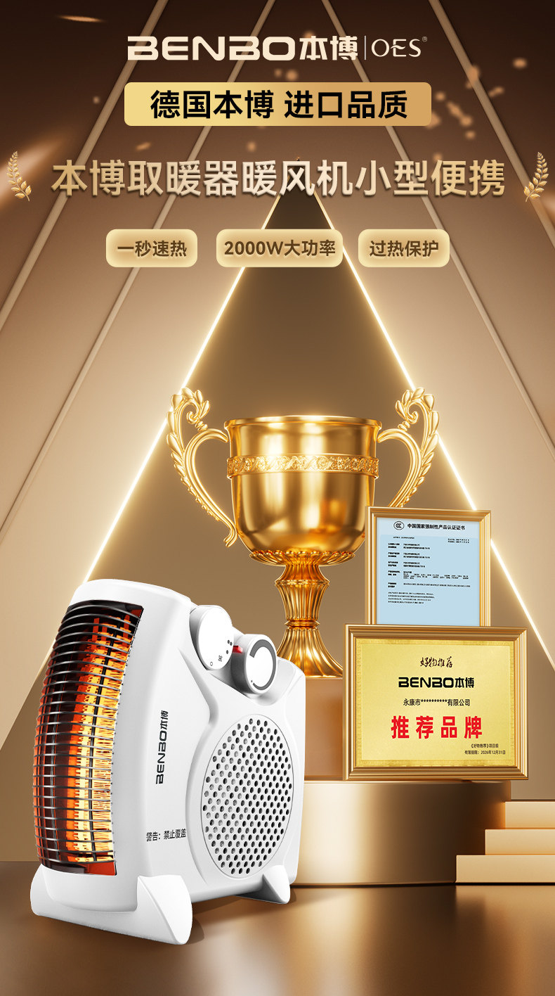 Co-Branded German Benbo Heater Fan, Household Electric Heater, Small Sun Heater, 2025 New Model Hot Air Blower