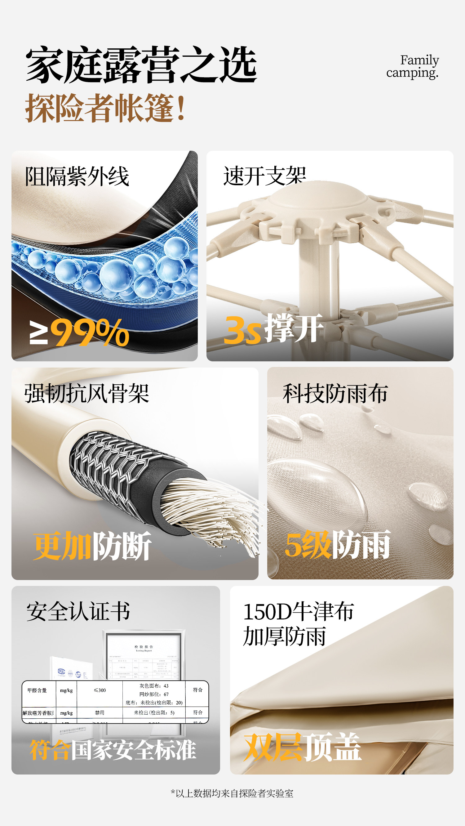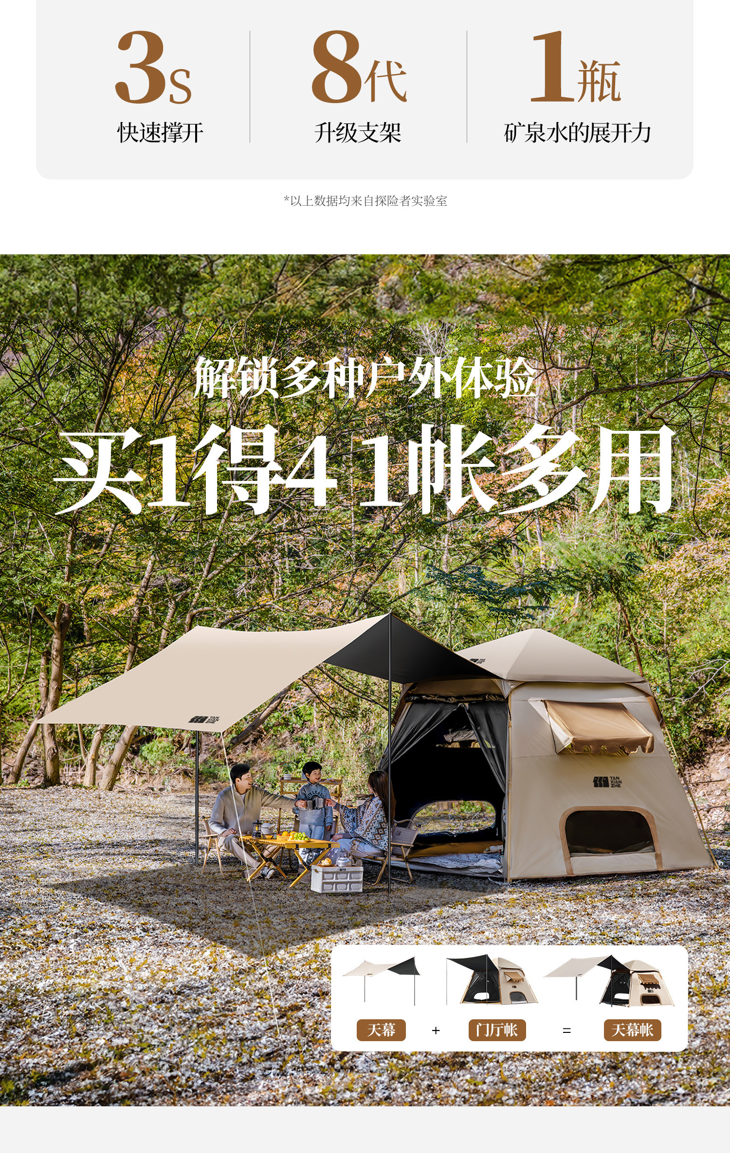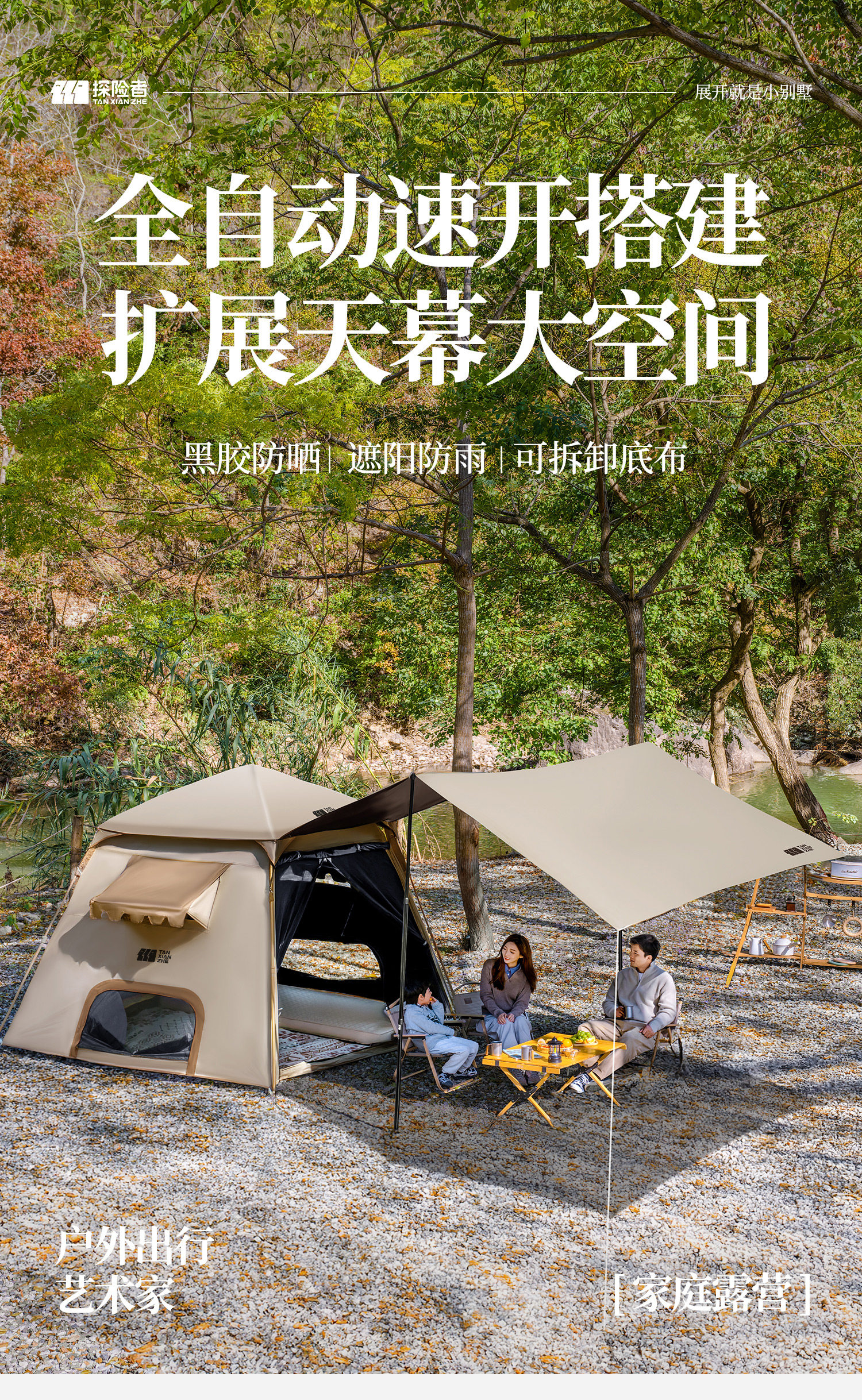 Explorer Tent Outdoor Portable Folding Canopy Camping Equipment Full Set Automatic Camping Overnight Thickened Rainproof