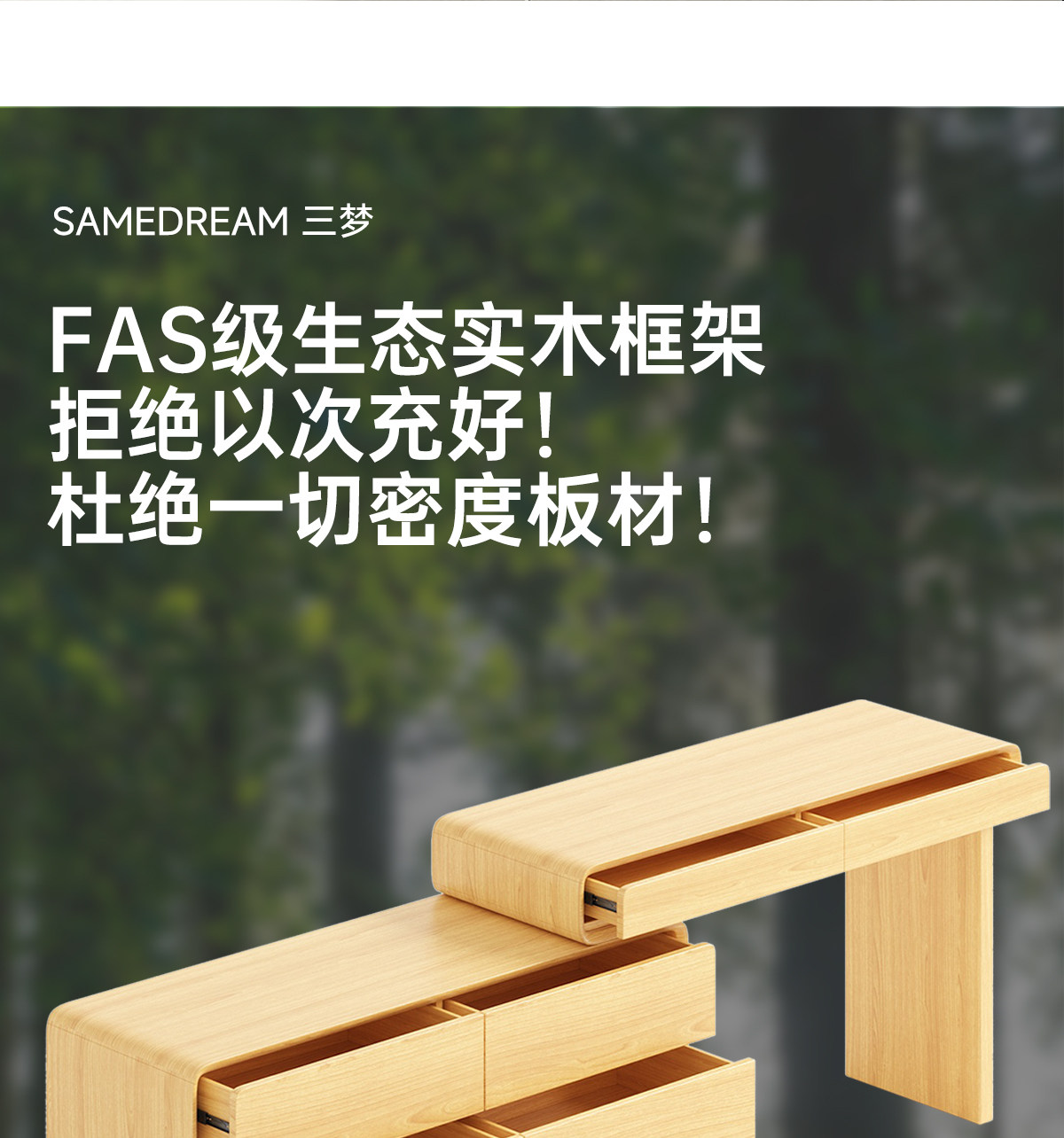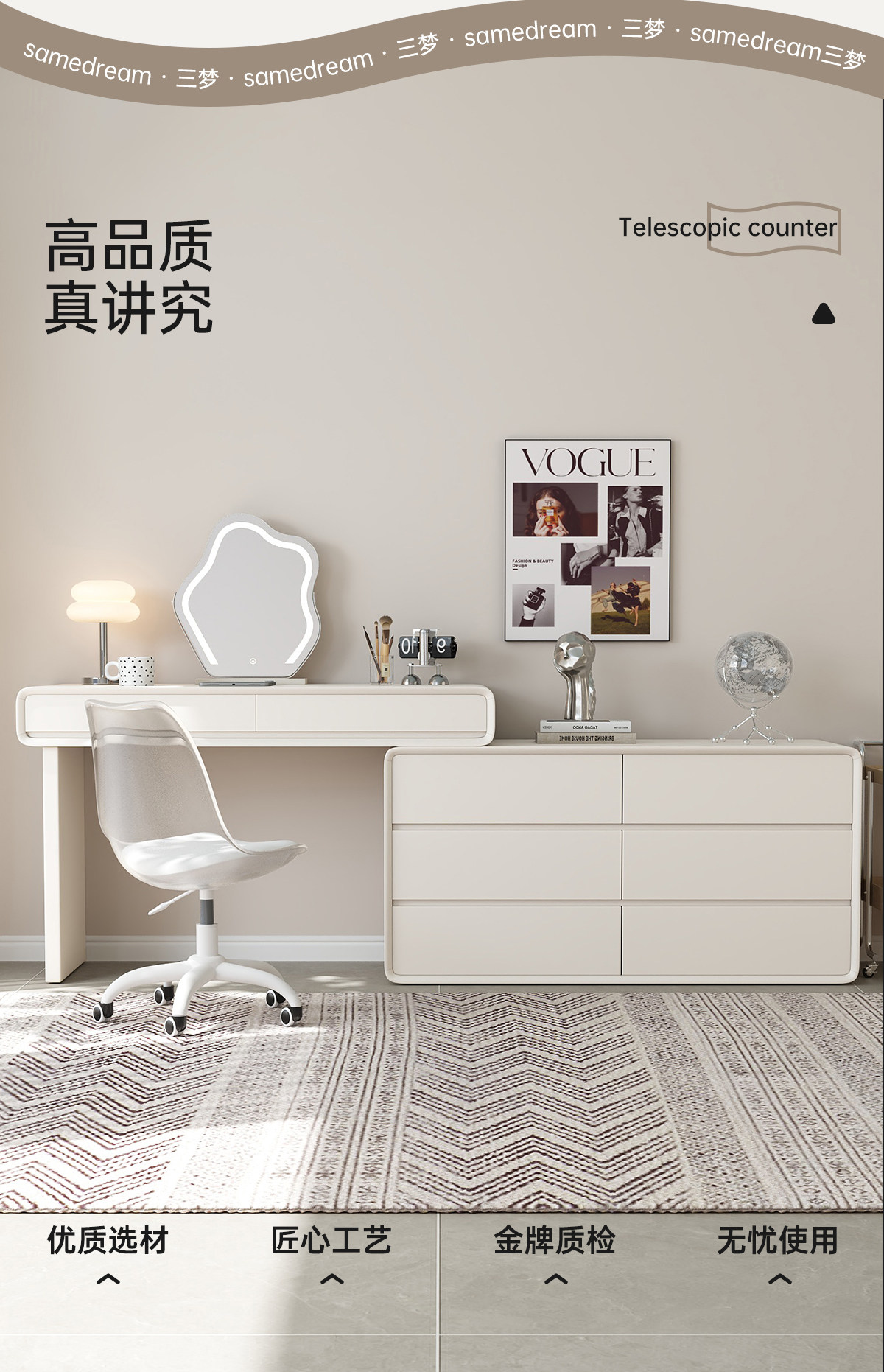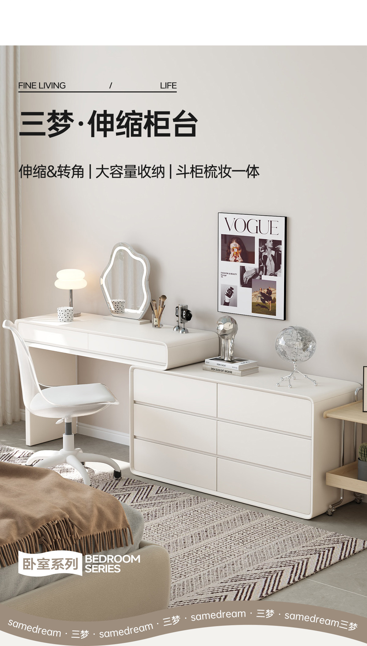 Sanmeng Cream Style Drawer Cabinet for Master Bedroom, Solid Wood Storage Cabinet, Bedside Extendable Drawer Cabinet, Dressing Table Integrated Simple Drawer Cabinet