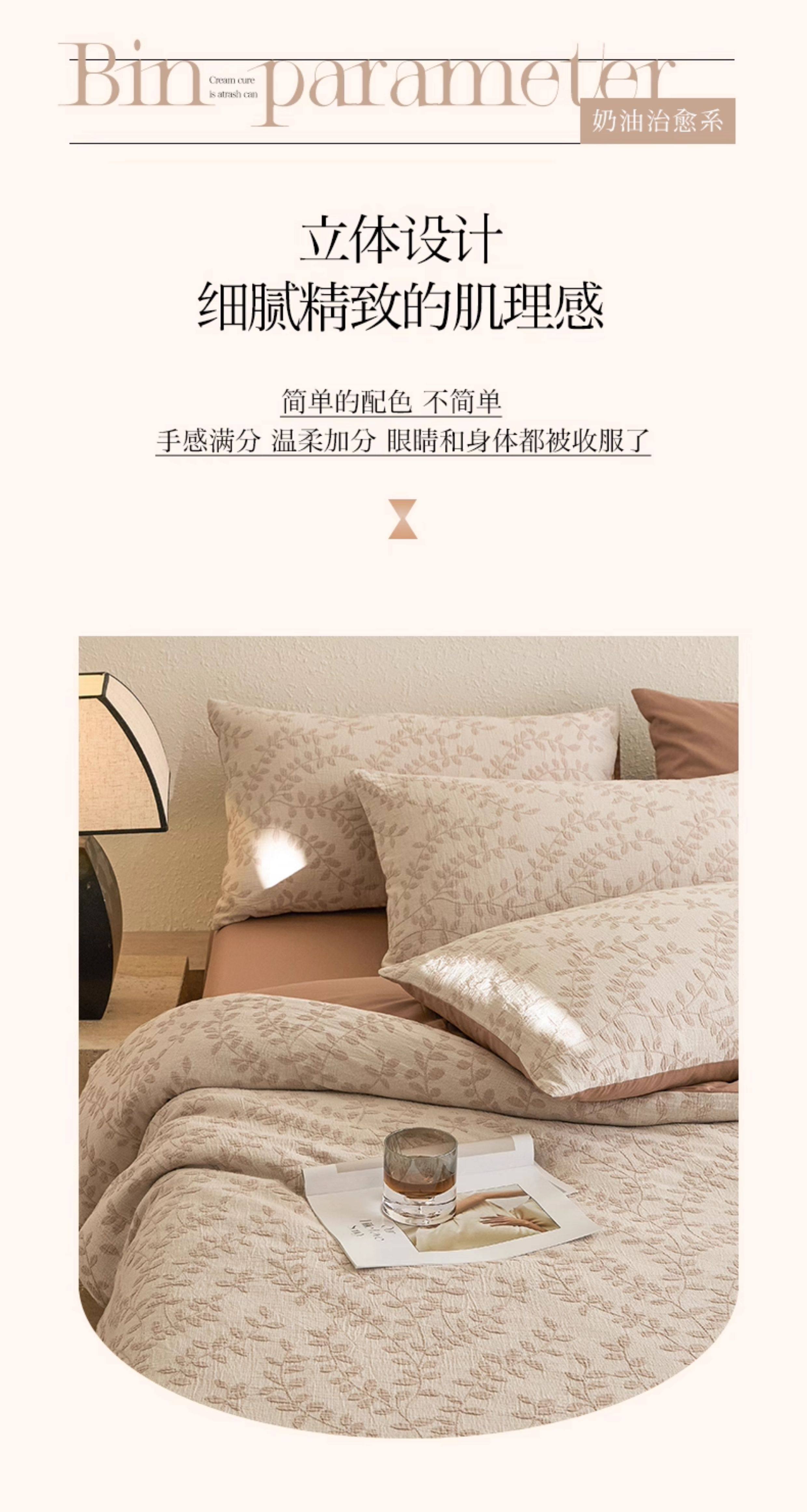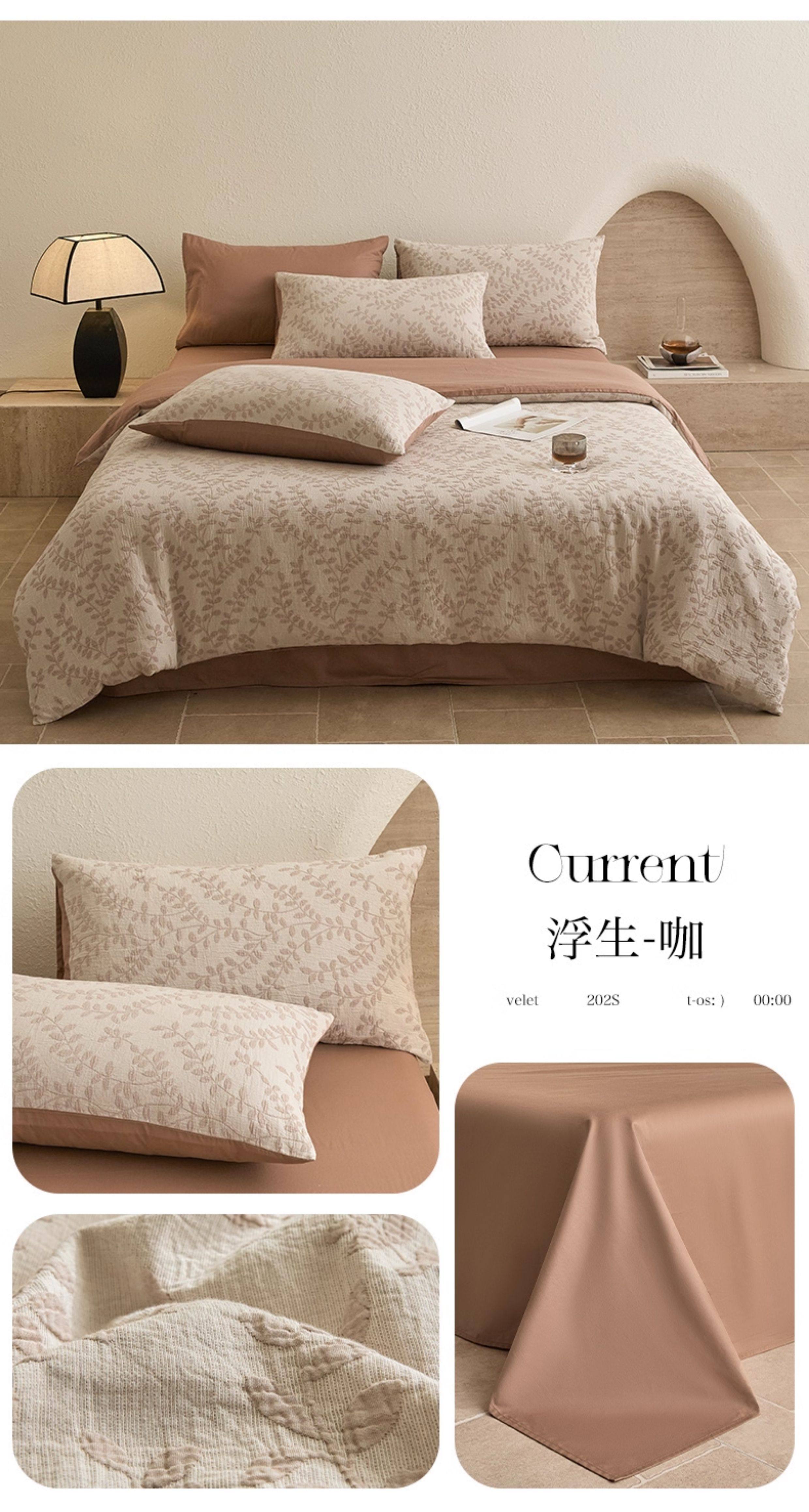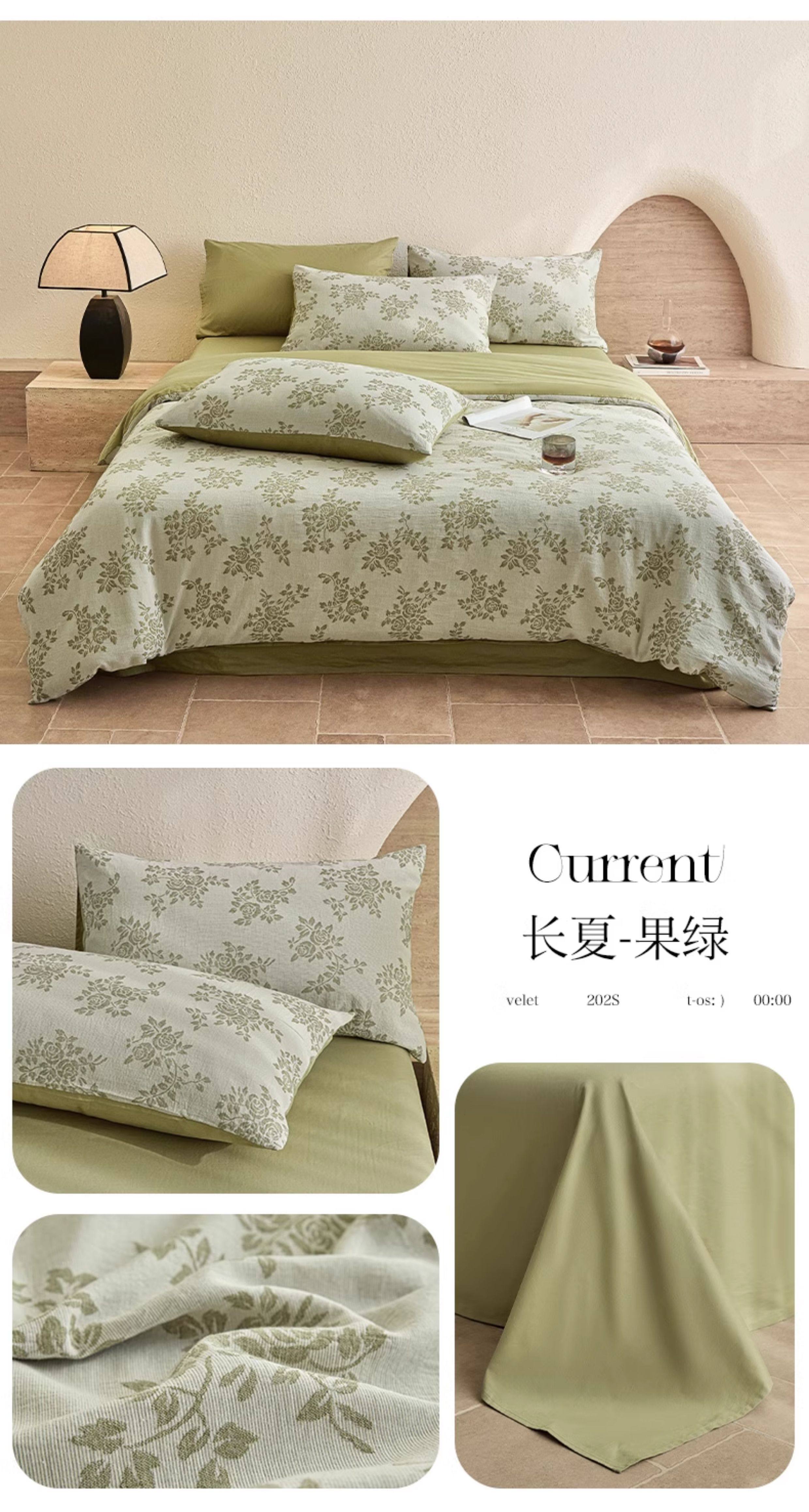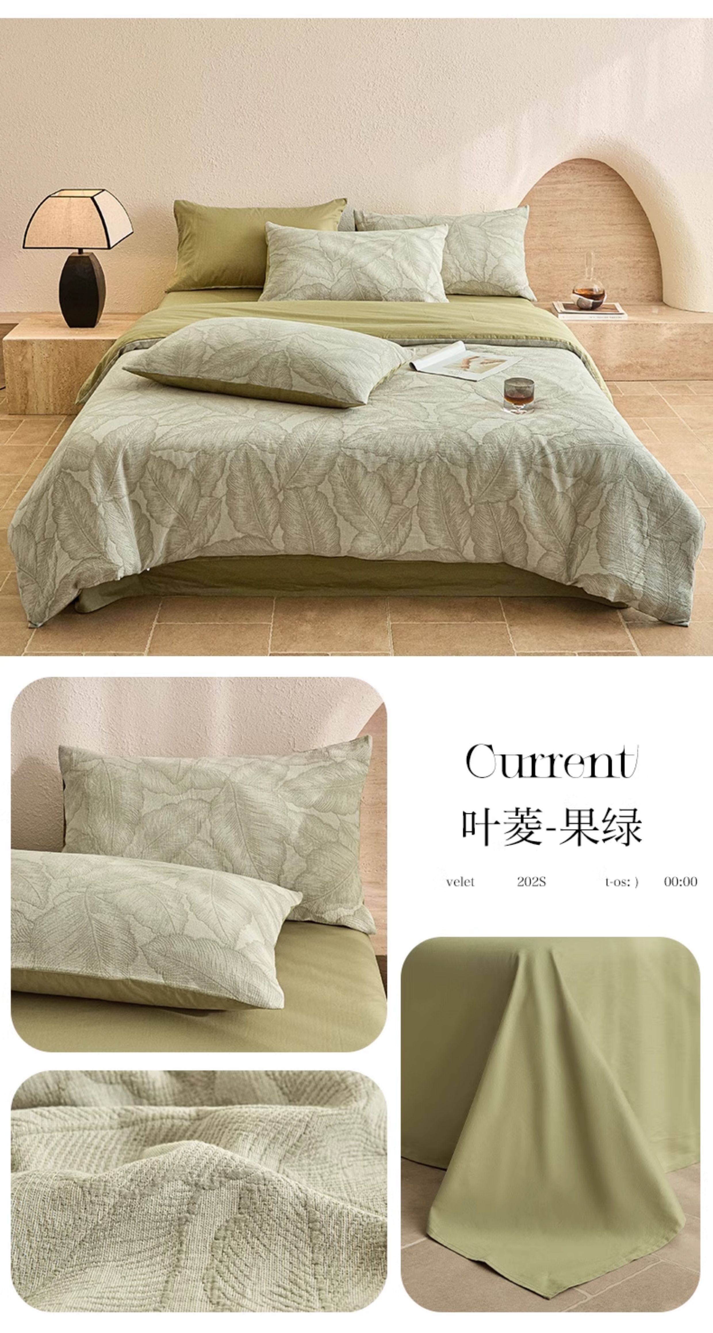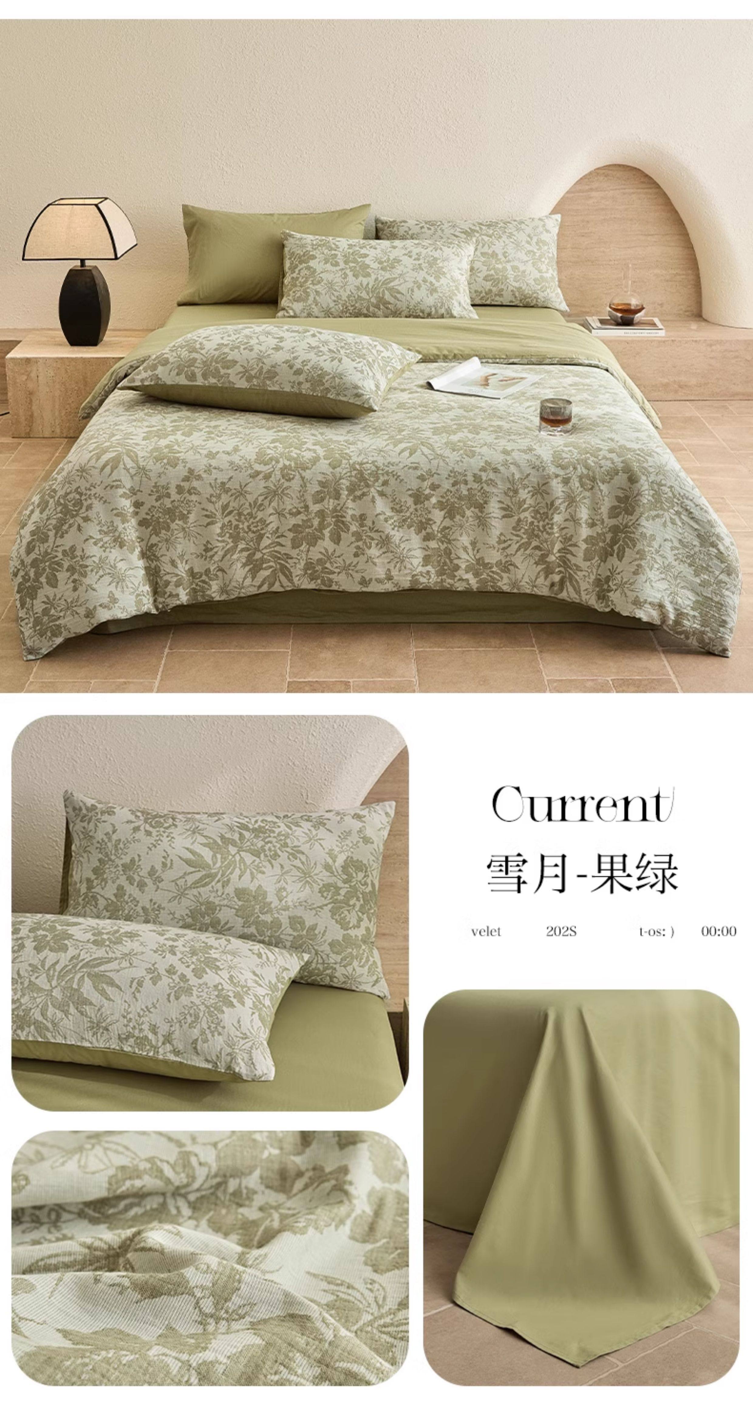 | Applicable Bed Size | 0.9m/1.2m Bed-Three-Piece Bed Sheet Set [Sheet*1+Quilt Cover*1+Pillowcase*1],1.5m/1.8m Bed - Four-Piece Bed Sheet Set [Sheet*1+Quilt Cover*1+Pillowcase*2],2.0m Bed - Four-Piece Bed Sheet Set [Sheet*1+Quilt Cover*1+Pillowcase*2],1.5m Fitted Sheet Set of Four [Fitted Sheet*1+Quilt Cover*1+Pillowcase*2],1.8m Fitted Sheet Set of Four [Fitted Sheet*1+Quilt Cover*1+Pillowcase*2] |