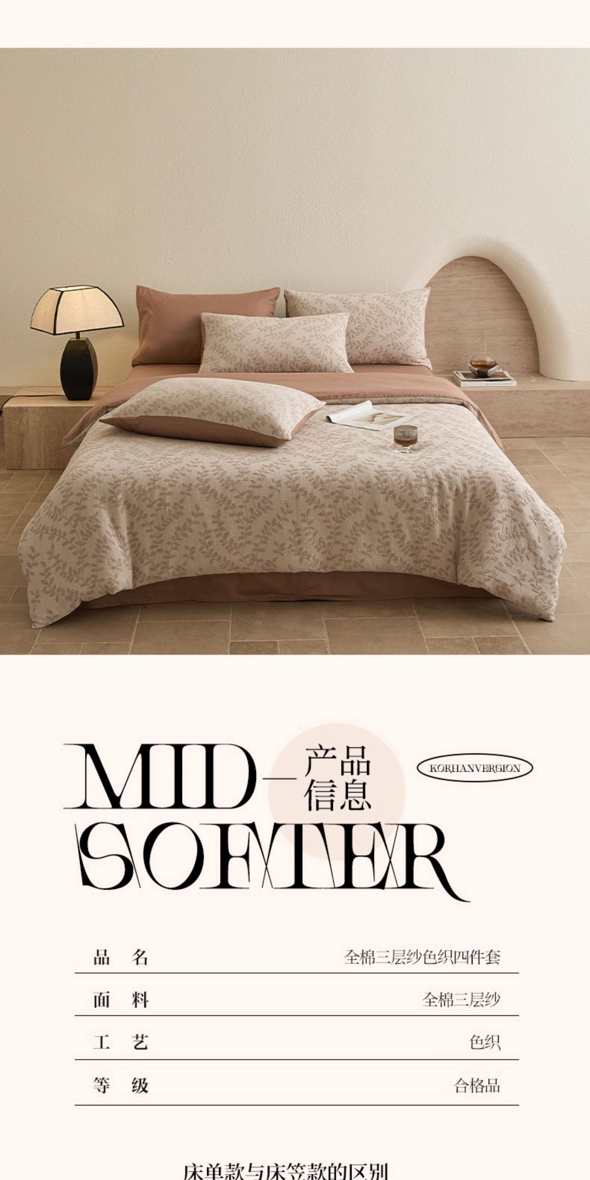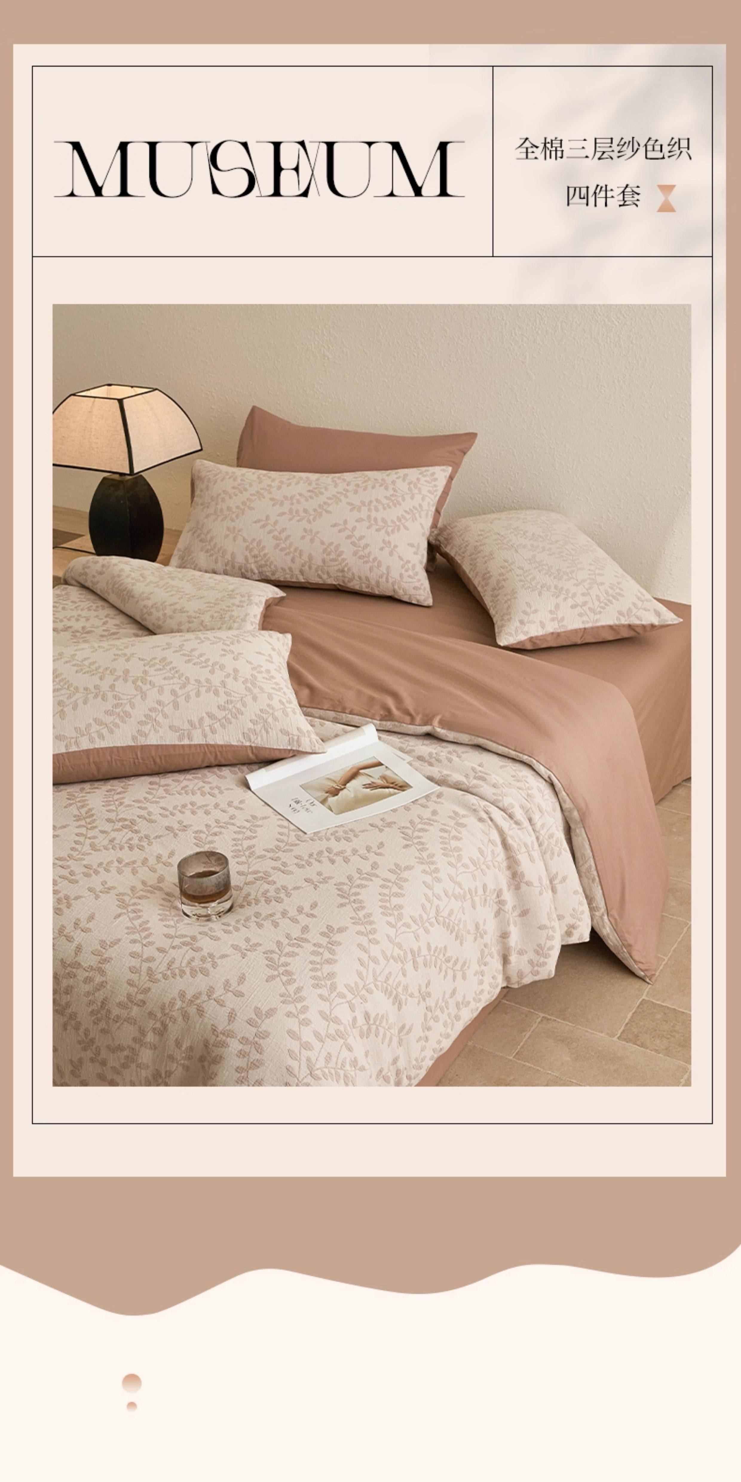 Muji Light Luxury High-End Three-Layer Gauze All-Cotton Four-Piece Set Pure Cotton 2025 New Duvet Cover Bed Sheet Bedding Set