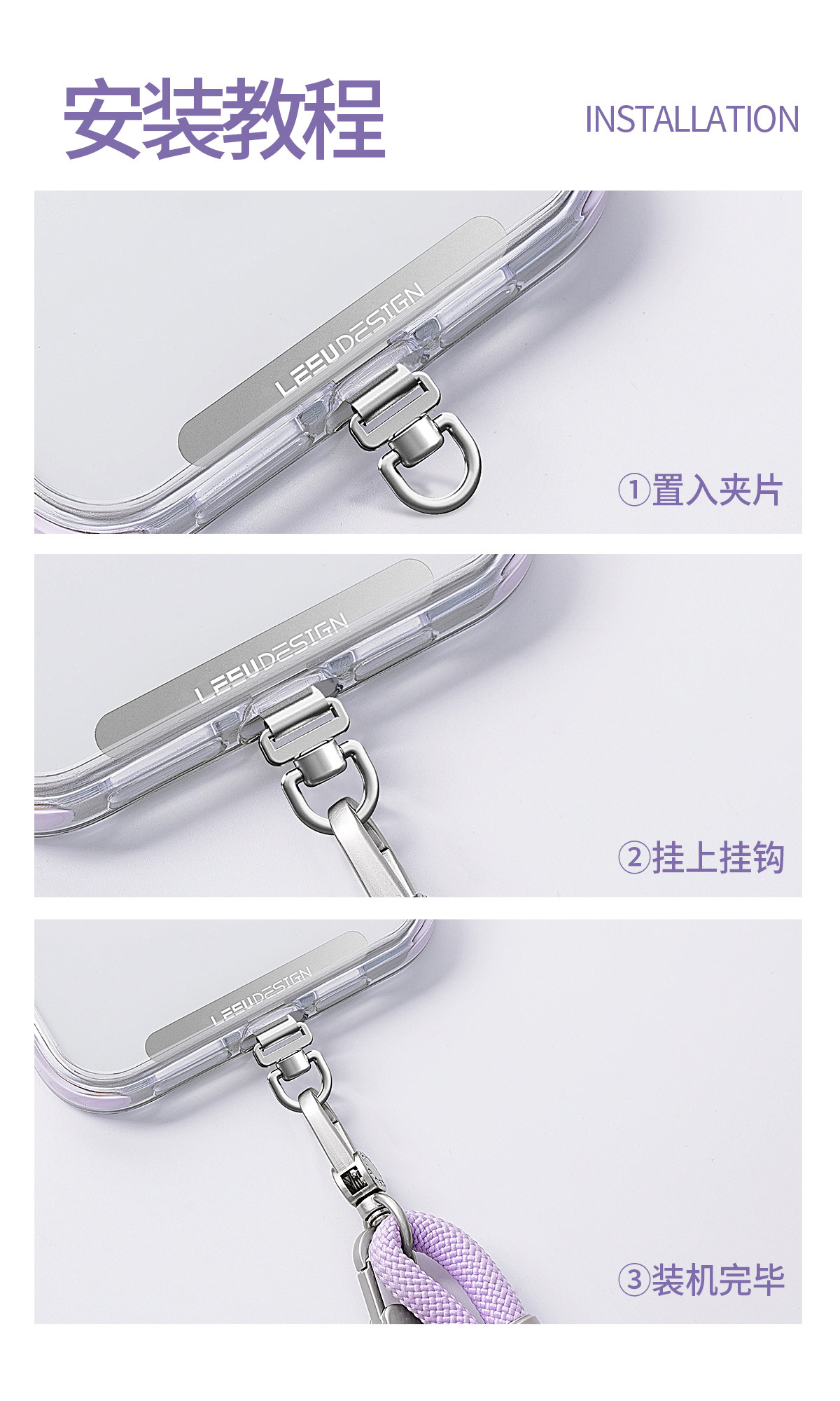 Leeu Design Phone Lanyard Clip Rotating Metal Phone Spacer Ultra-Thin Phone Chain Pendant Accessory Patch Stainless Steel Buckle Connector Card Sturdy